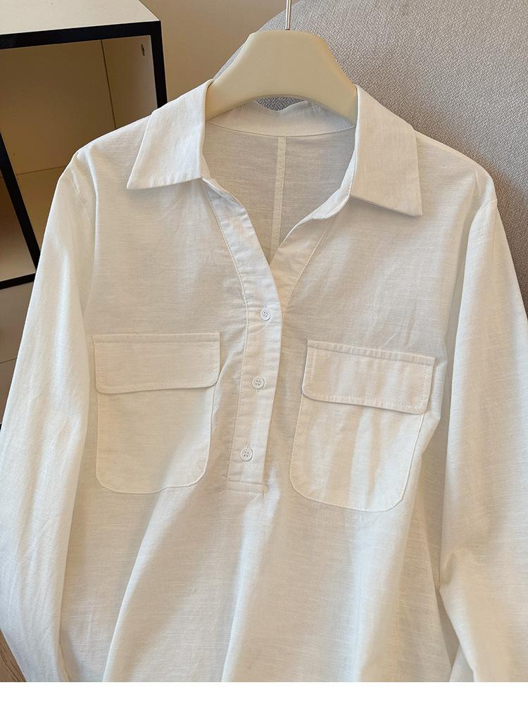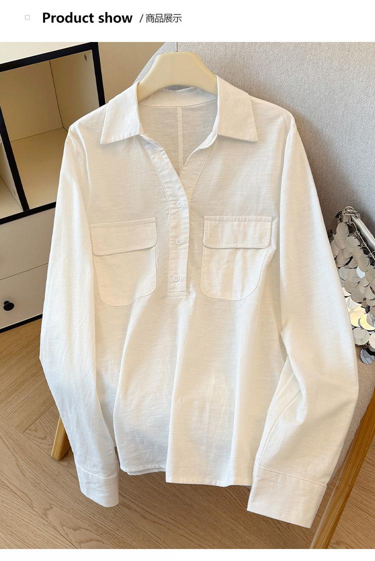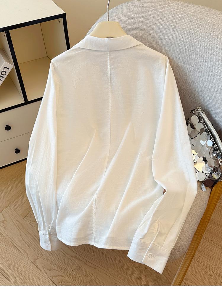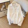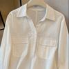 Otoño 2025 Nuevo Beige Claro Moda Coreana Diseño Holgado Estilo Old Money Camisa de Manga Larga Top para Mujer
