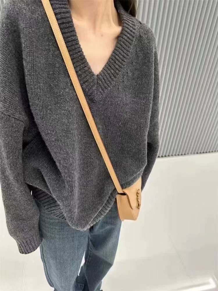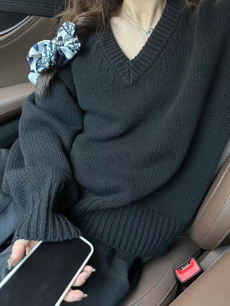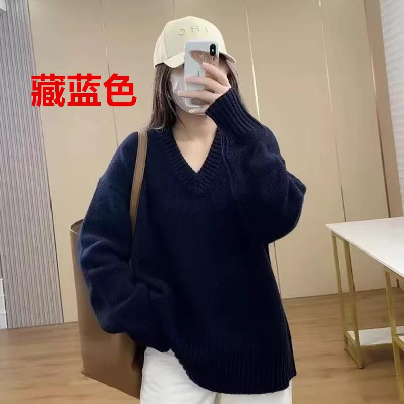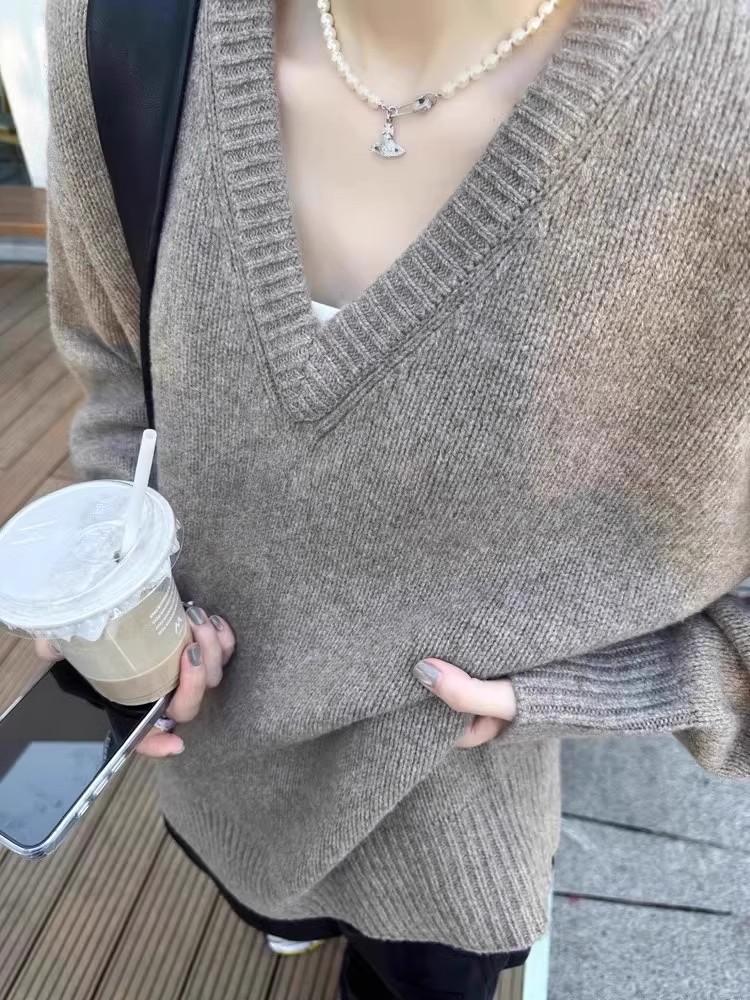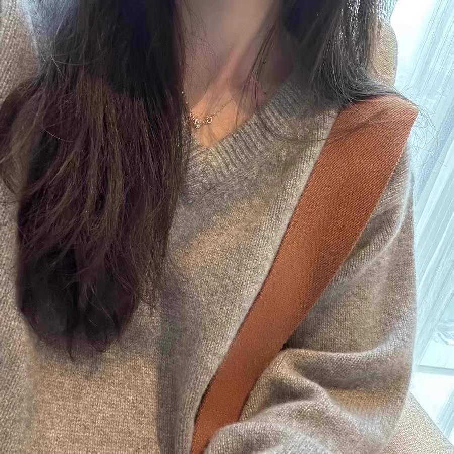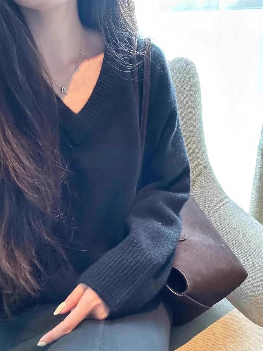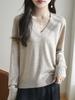 Suéter de Punto de Lana 100% Pura para Mujer, Jersey de Cuello en V, Camiseta Base, Otoño e Invierno, Nuevo Estilo Holgado y Relajado, Tendencia Ropa Interior