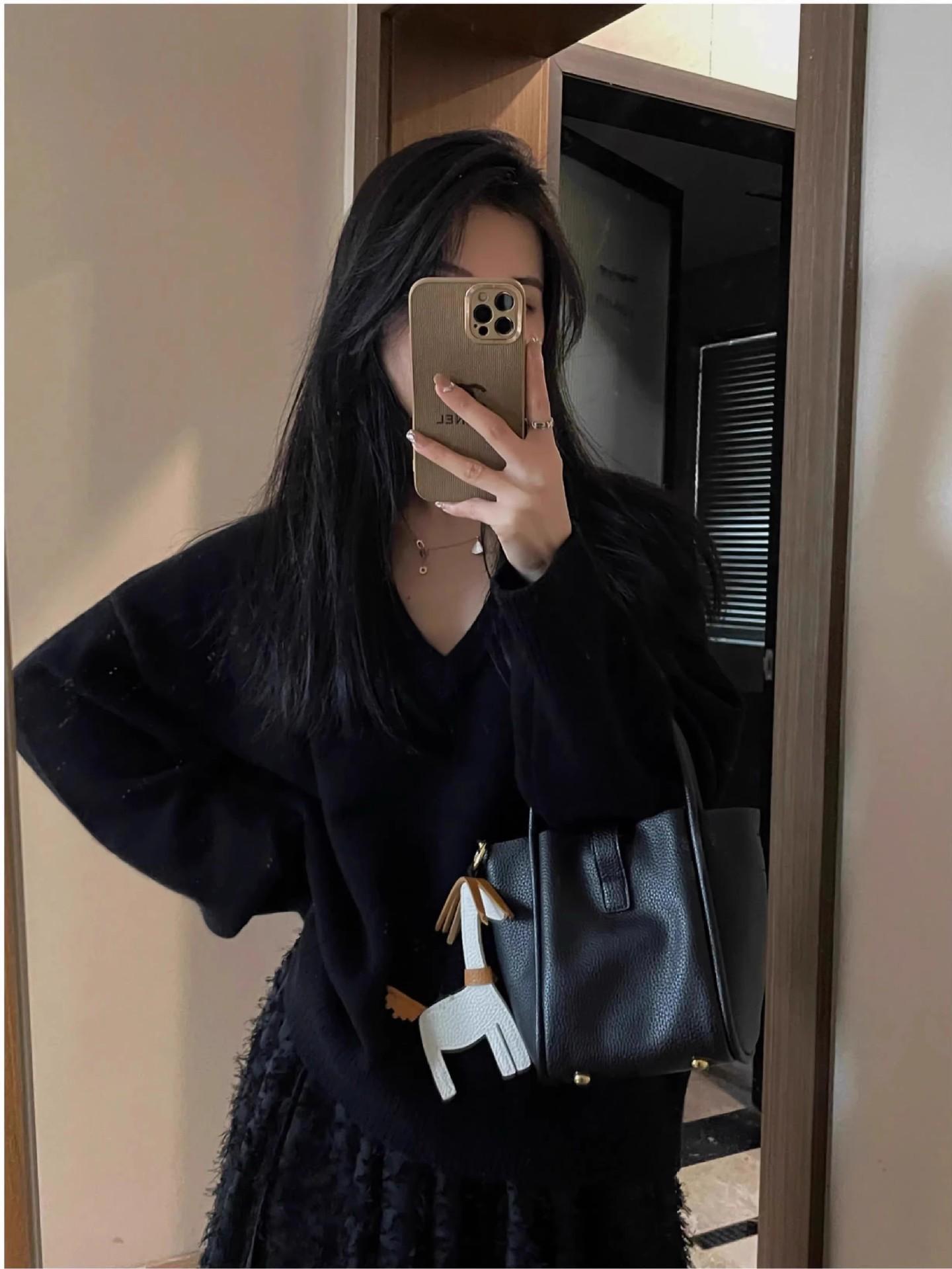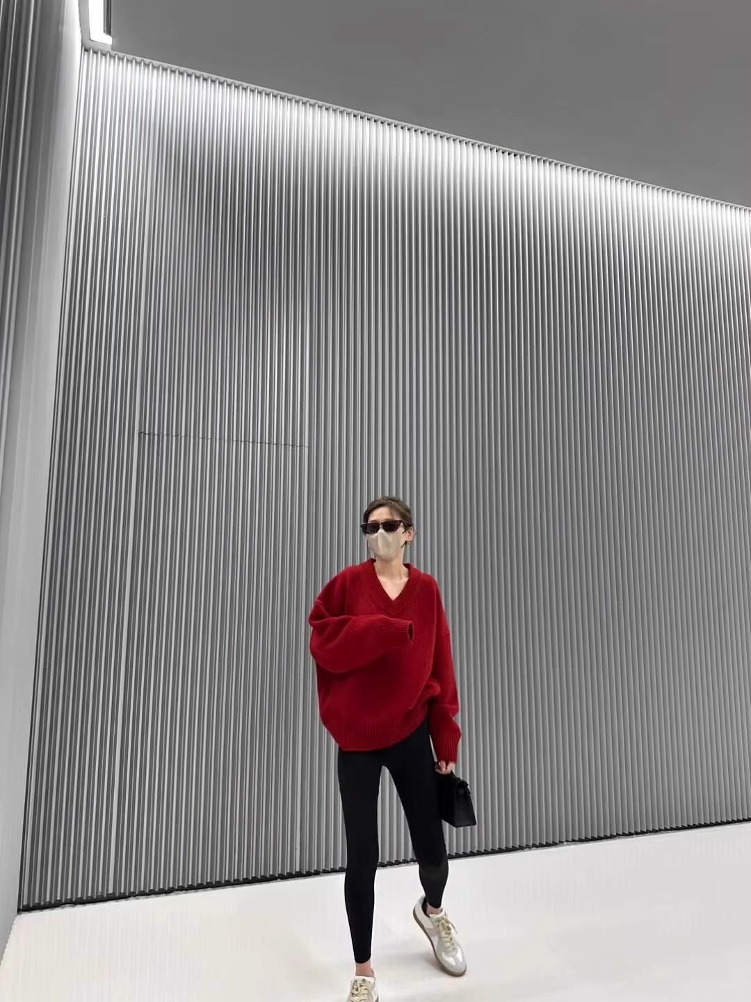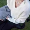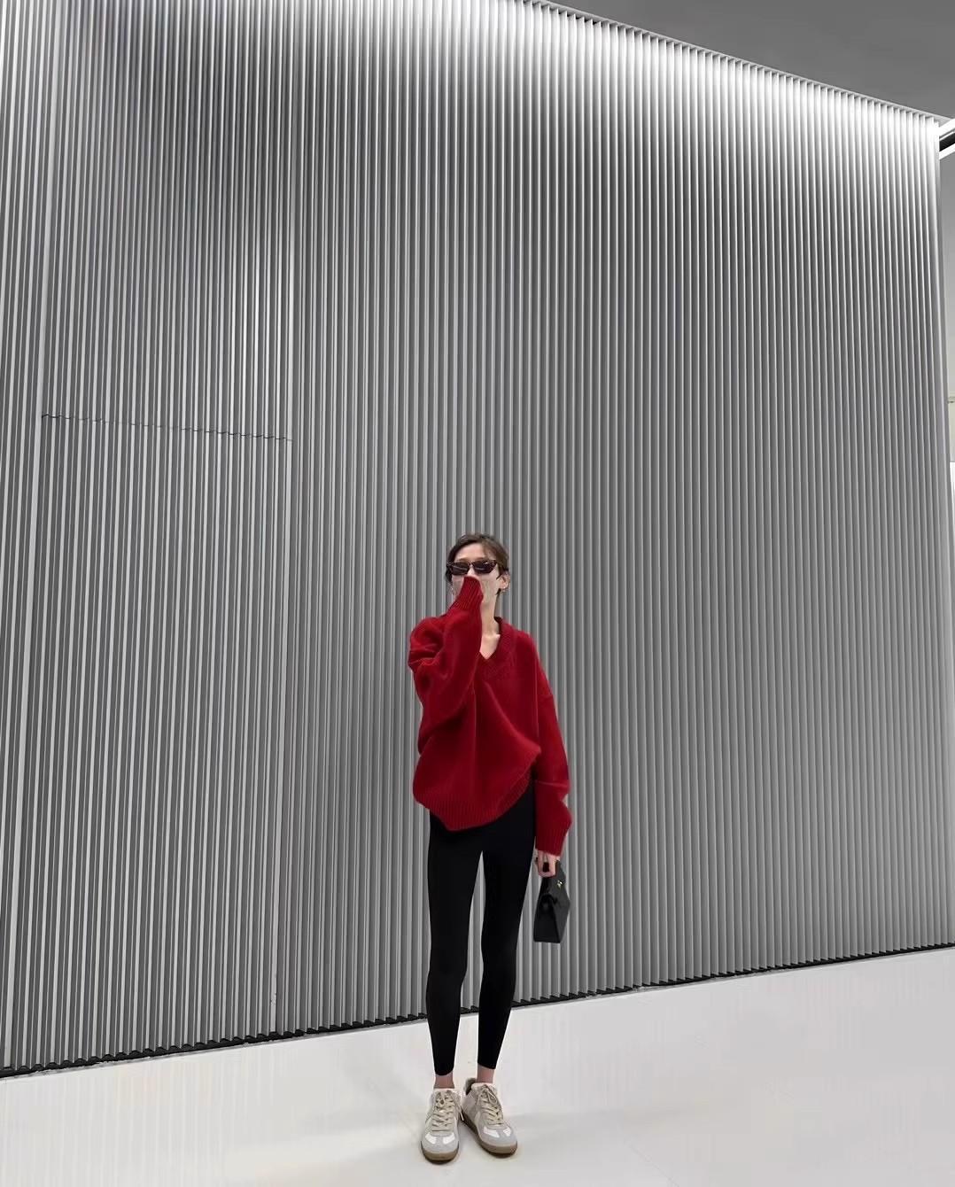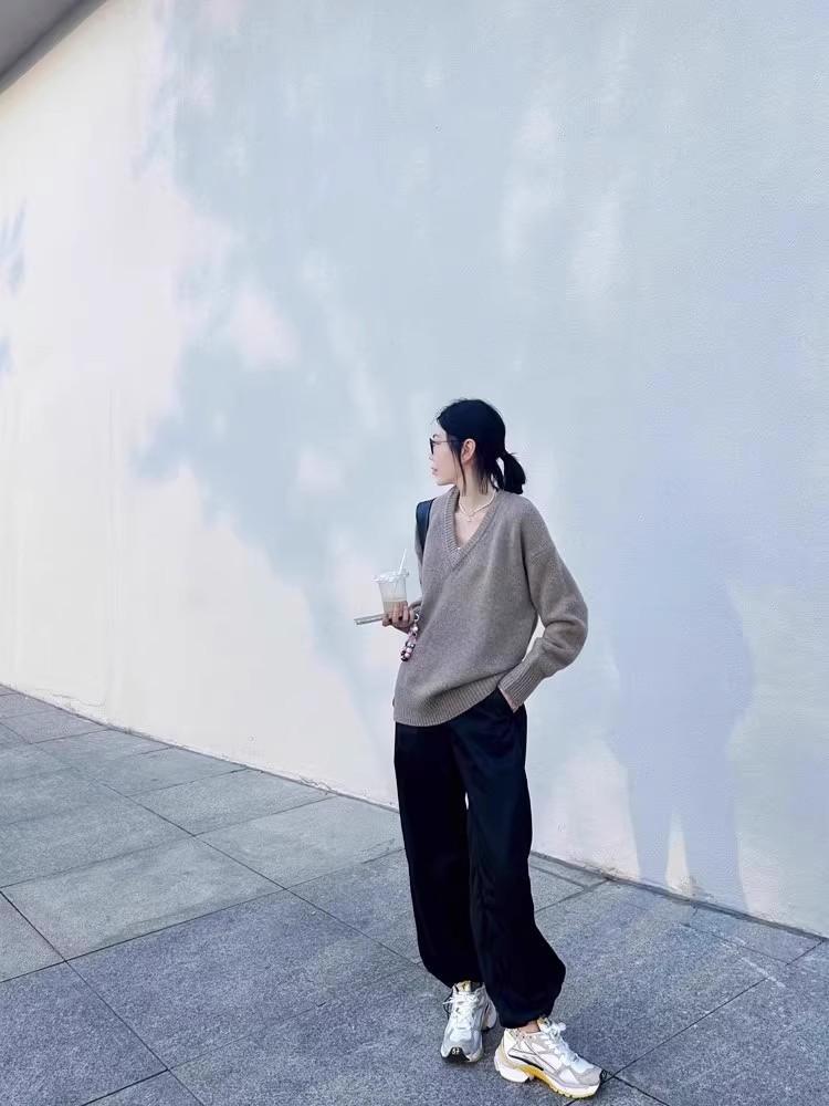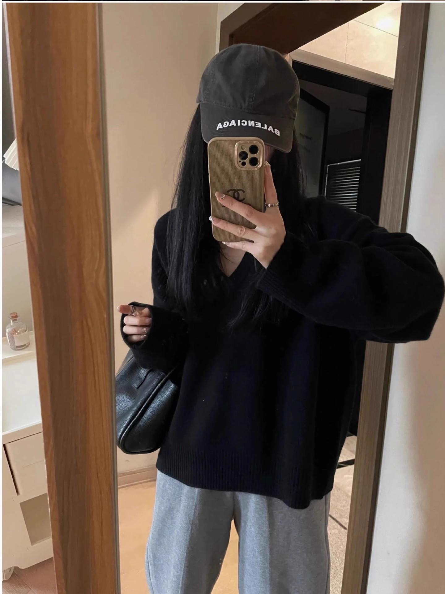 Suéter de Punto de Lana 100% Pura para Mujer, Jersey de Cuello en V, Camiseta Base, Otoño e Invierno, Nuevo Estilo Holgado y Relajado, Tendencia Ropa Interior