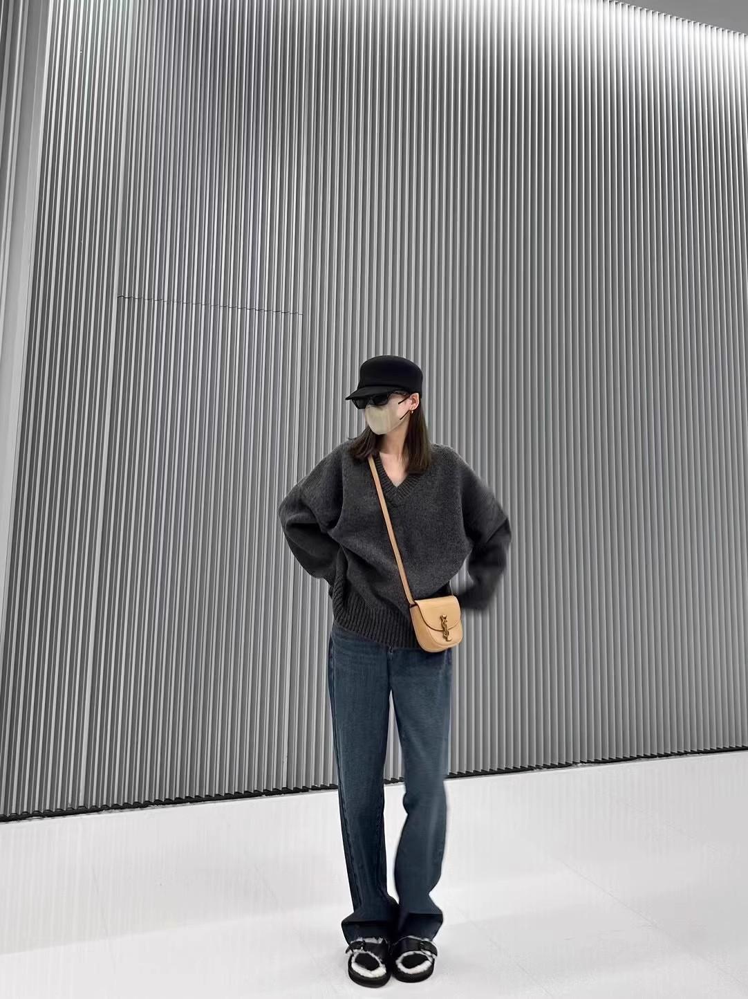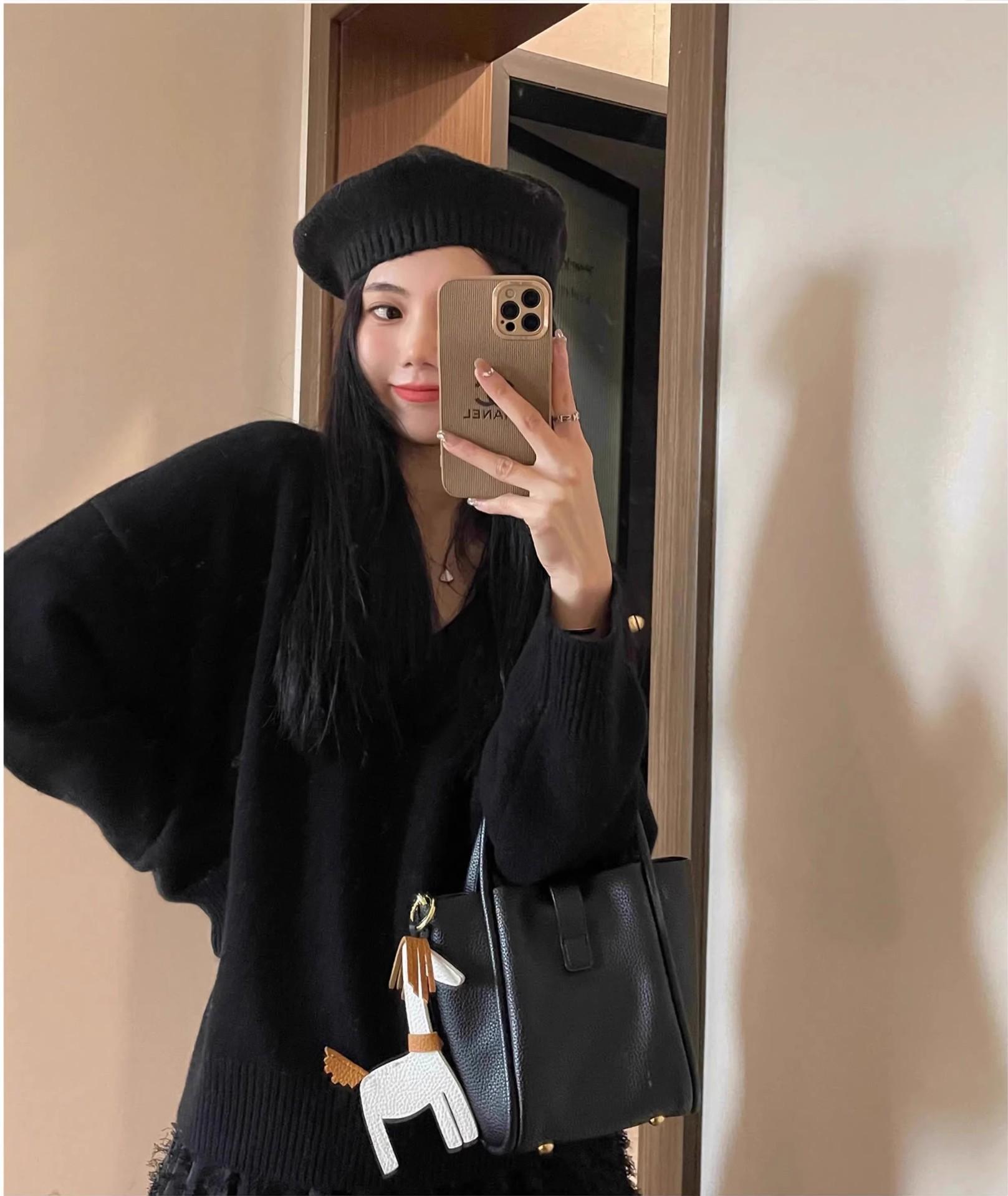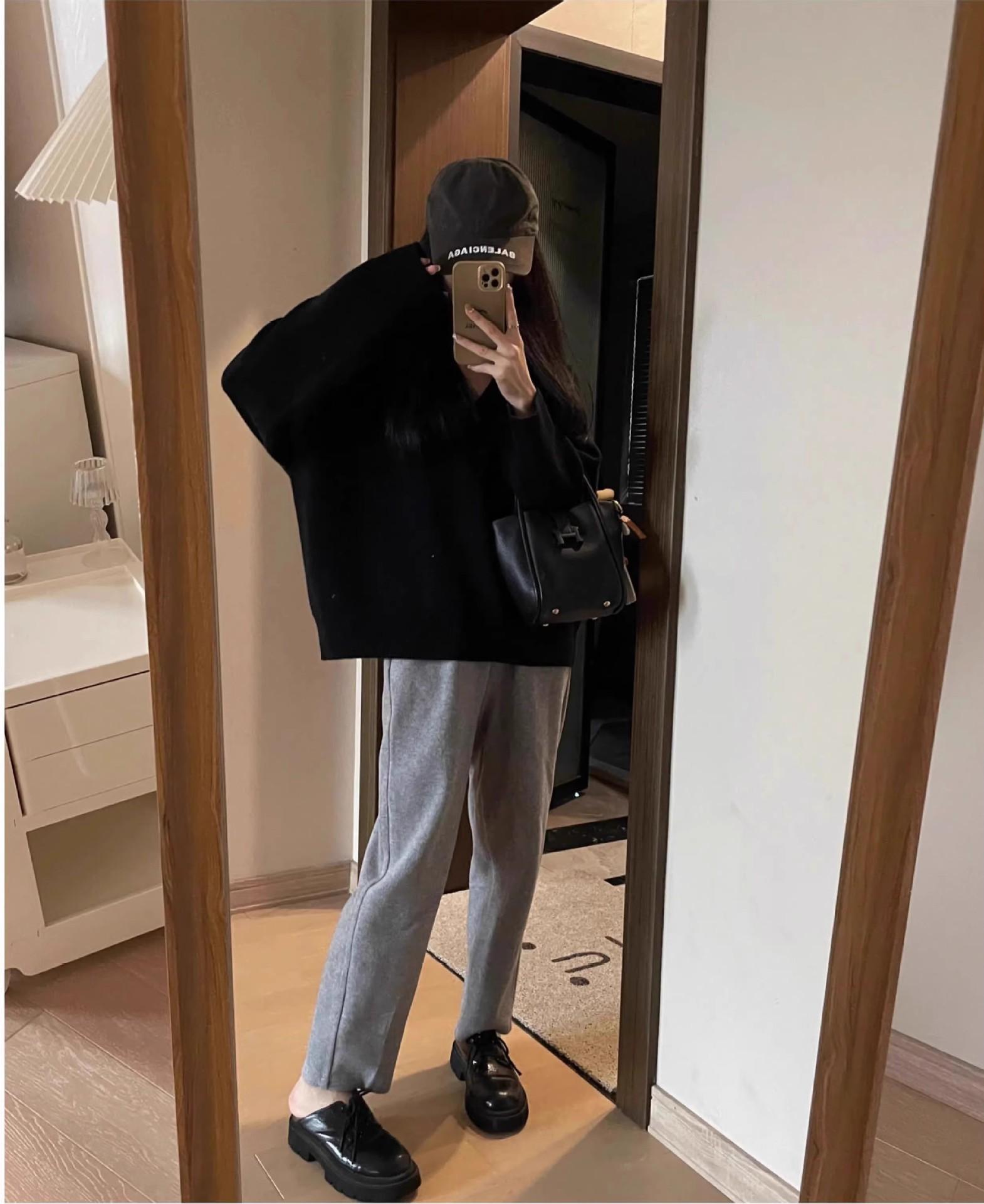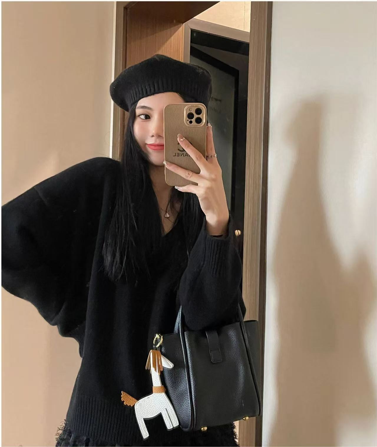 Suéter de Punto de Lana 100% Pura para Mujer, Jersey de Cuello en V, Camiseta Base, Otoño e Invierno, Nuevo Estilo Holgado y Relajado, Tendencia Ropa Interior