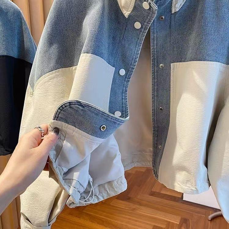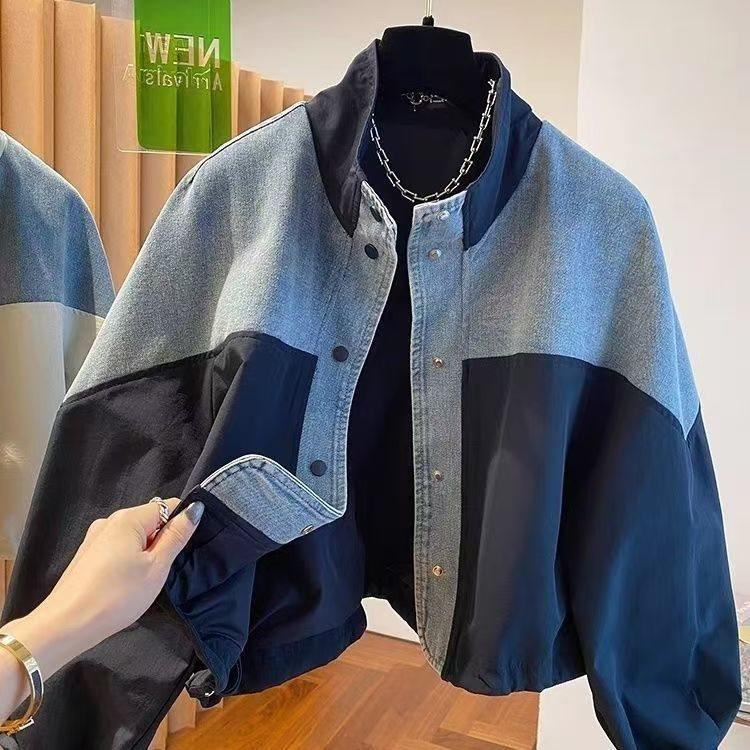 Chaqueta de Mezclilla Patchwork Estilo Europeo Cuello Mao para Mujer Primavera Otoño 2025 Nueva Suelta Casual Corta Talla Pequeña Chaqueta Top