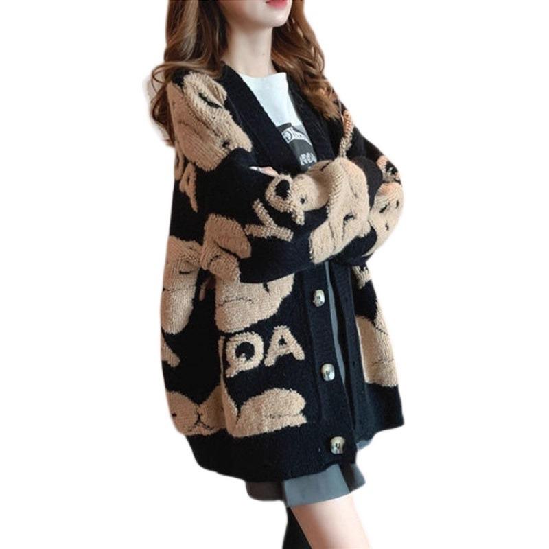 Abrigo Suéter de Primavera y Otoño Ropa de Mujer de Talla Grande de Primavera y Otoño 2025 Nuevo Holgado Estilo Coreano Ins Perezoso Cárdigan de Punto con Cuello en V para Mujer