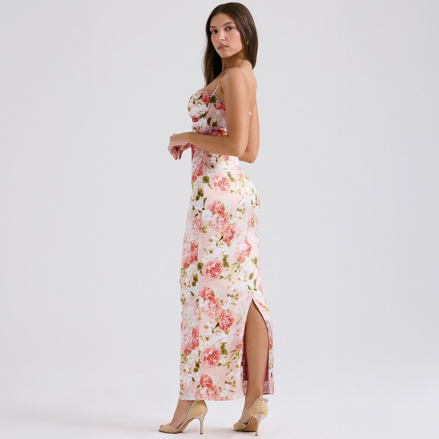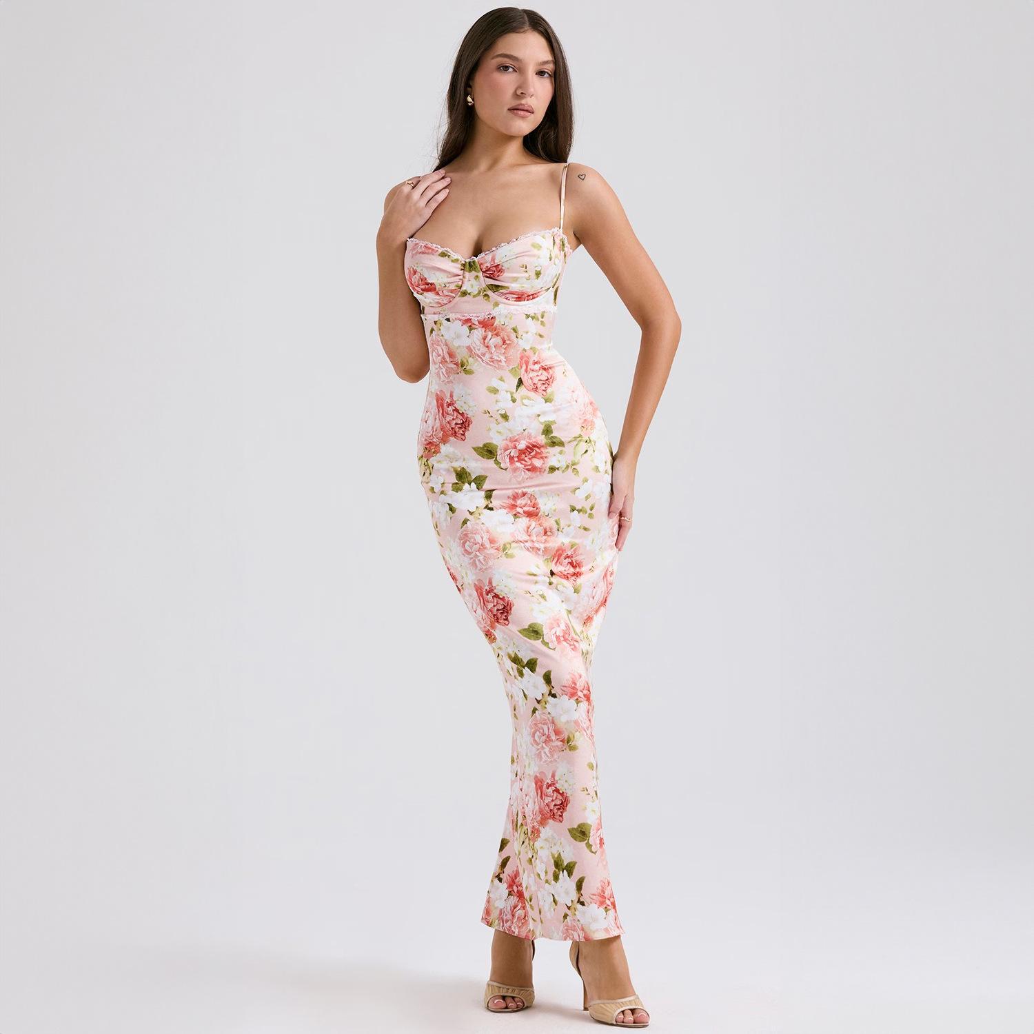 Vestido Europeo y Americano Transfronterizo de Verano Nuevo Delgado Sexy Estampado Abertura Estilo Casual Comercio Exterior Mayoreo Ropa de Mujer