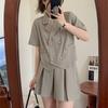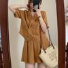 Traje de dos piezas de verano para mujer, de moda, estilo coreano, de manga corta, falda plisada, traje casual