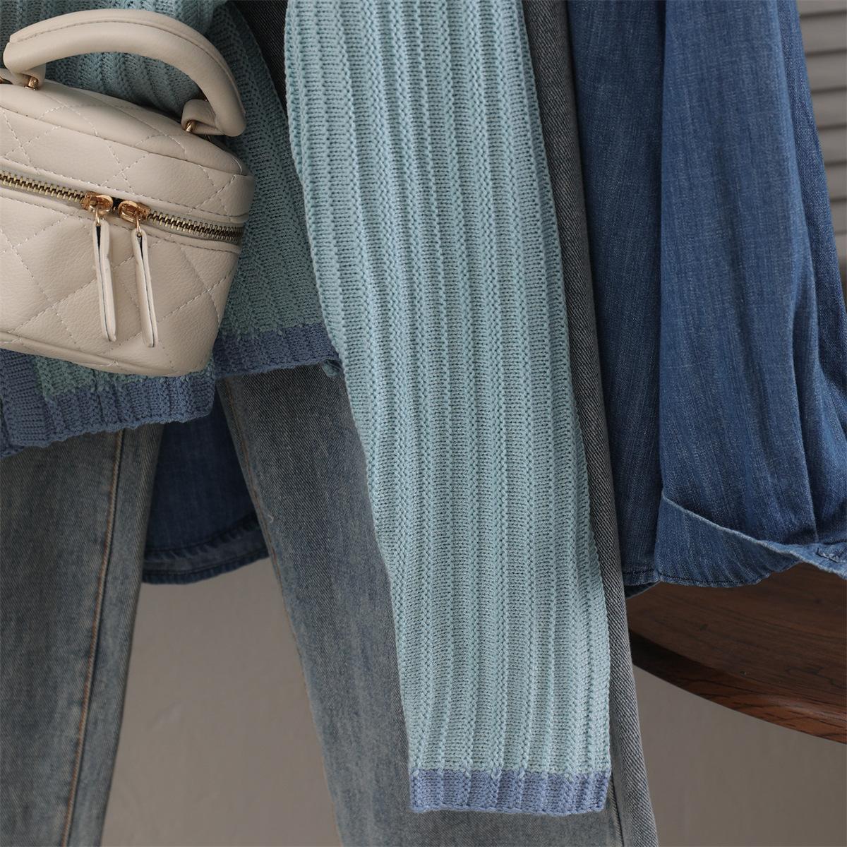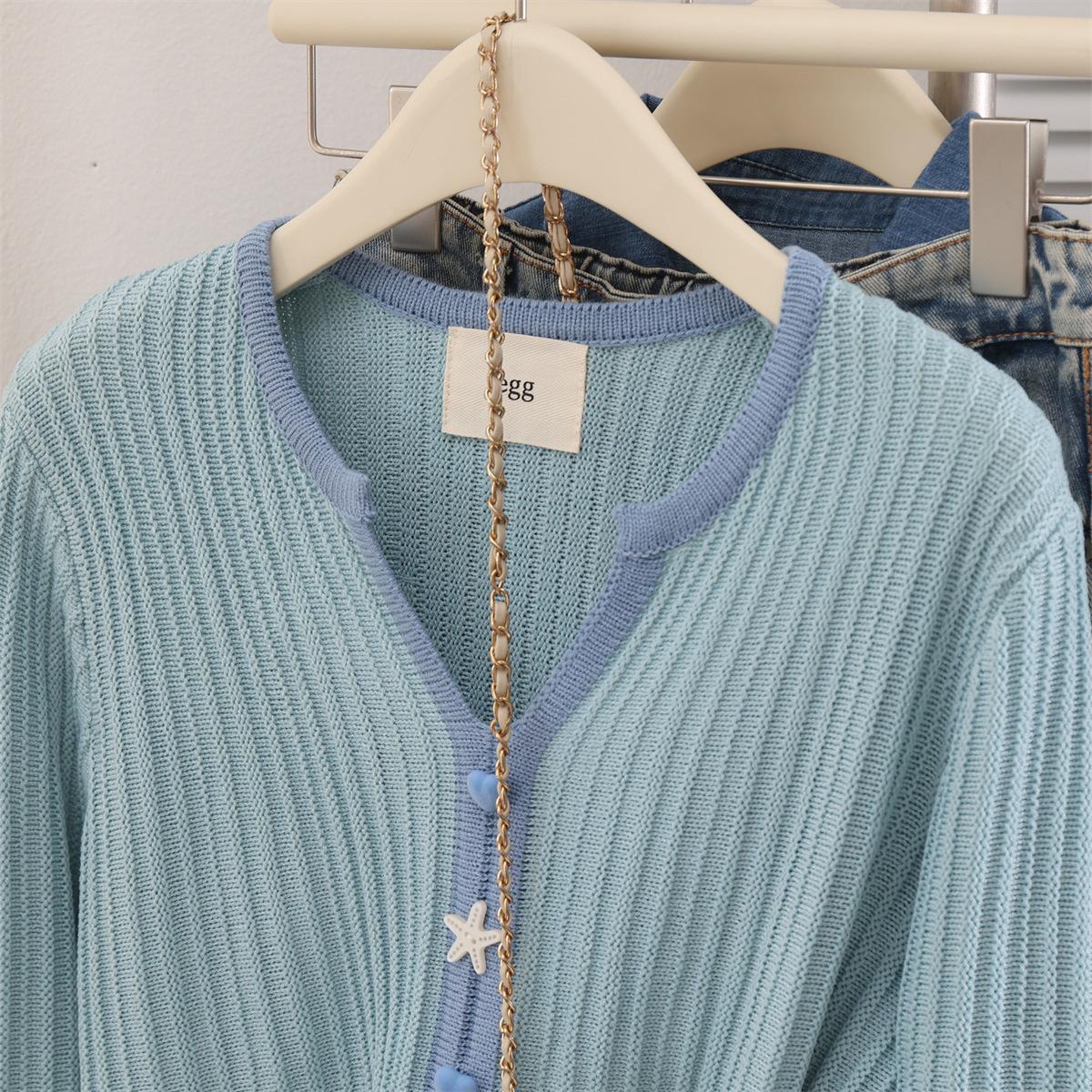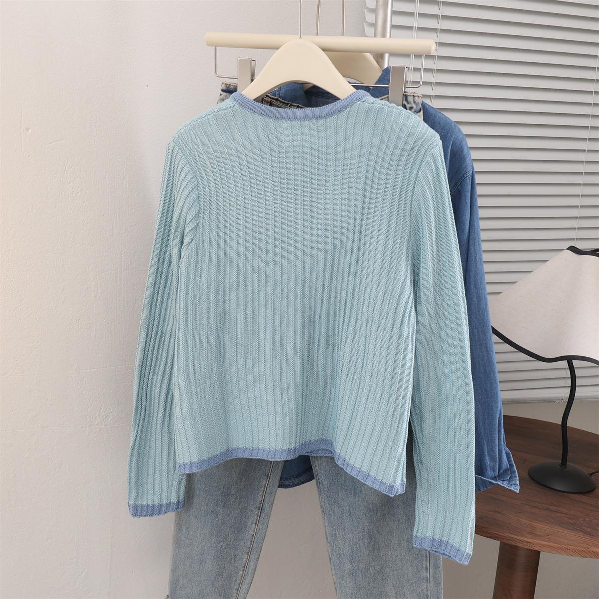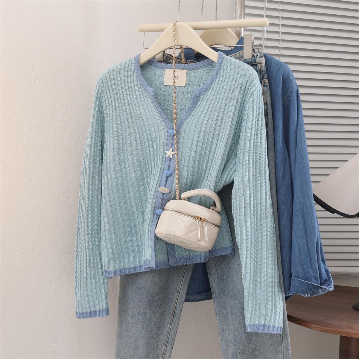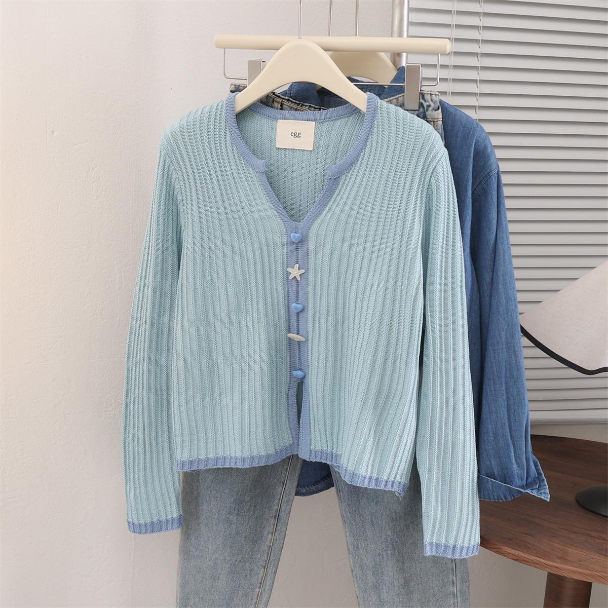 Suéter cárdigan azul super bonito de manga larga primavera nuevo suave ceroso estilo holgazán abrigo suéter top de mujer