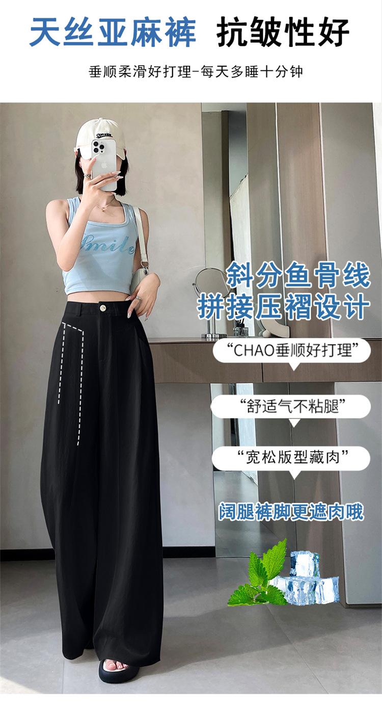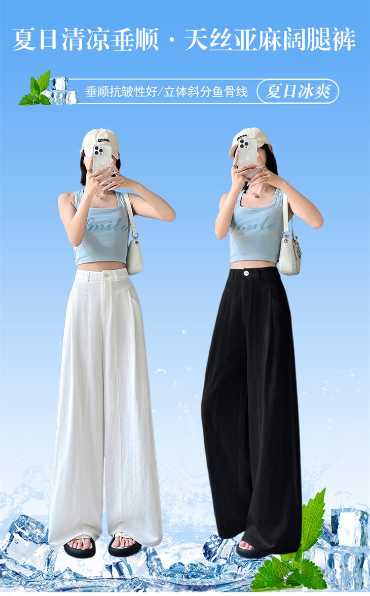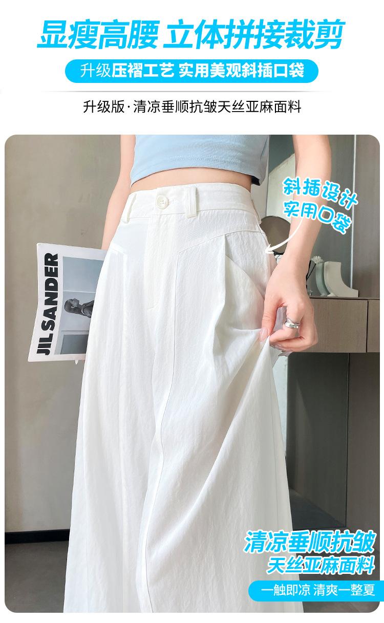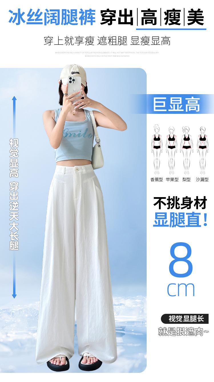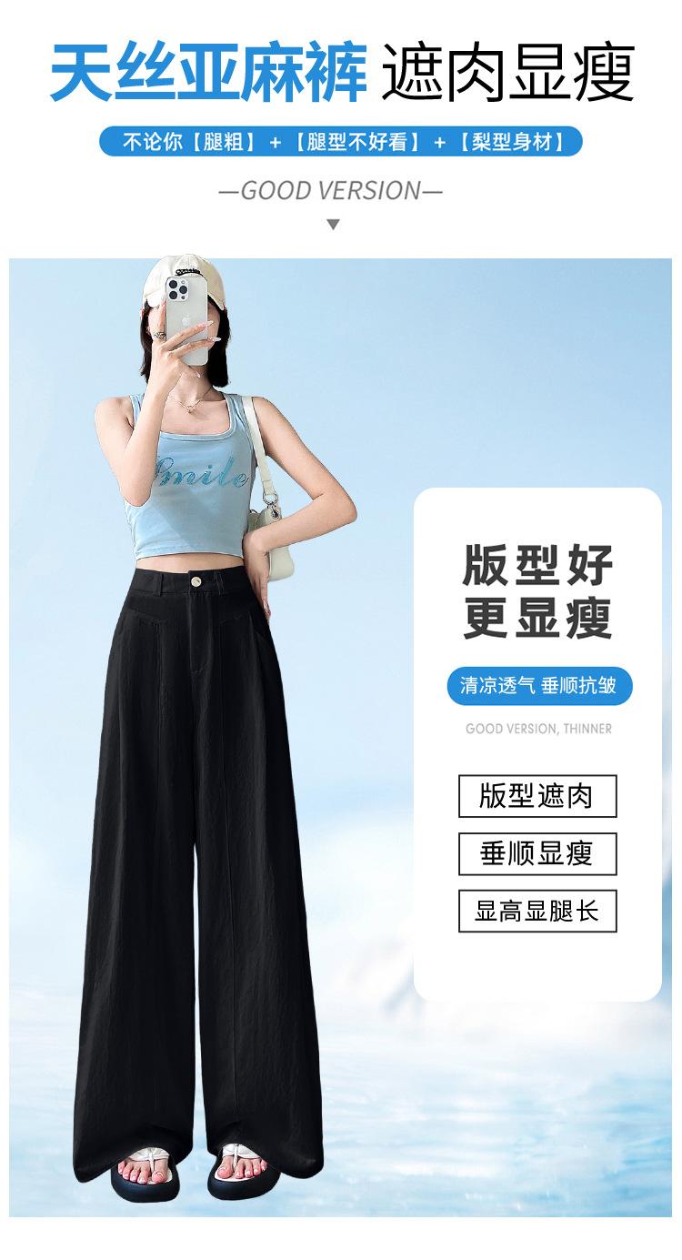 Pantalones de Pierna Ancha de Lino Tencel Verano 2025 Cintura Alta Casual Pantalones de Seda Helada Rectos Pantalones para Barrer el Piso Mujer