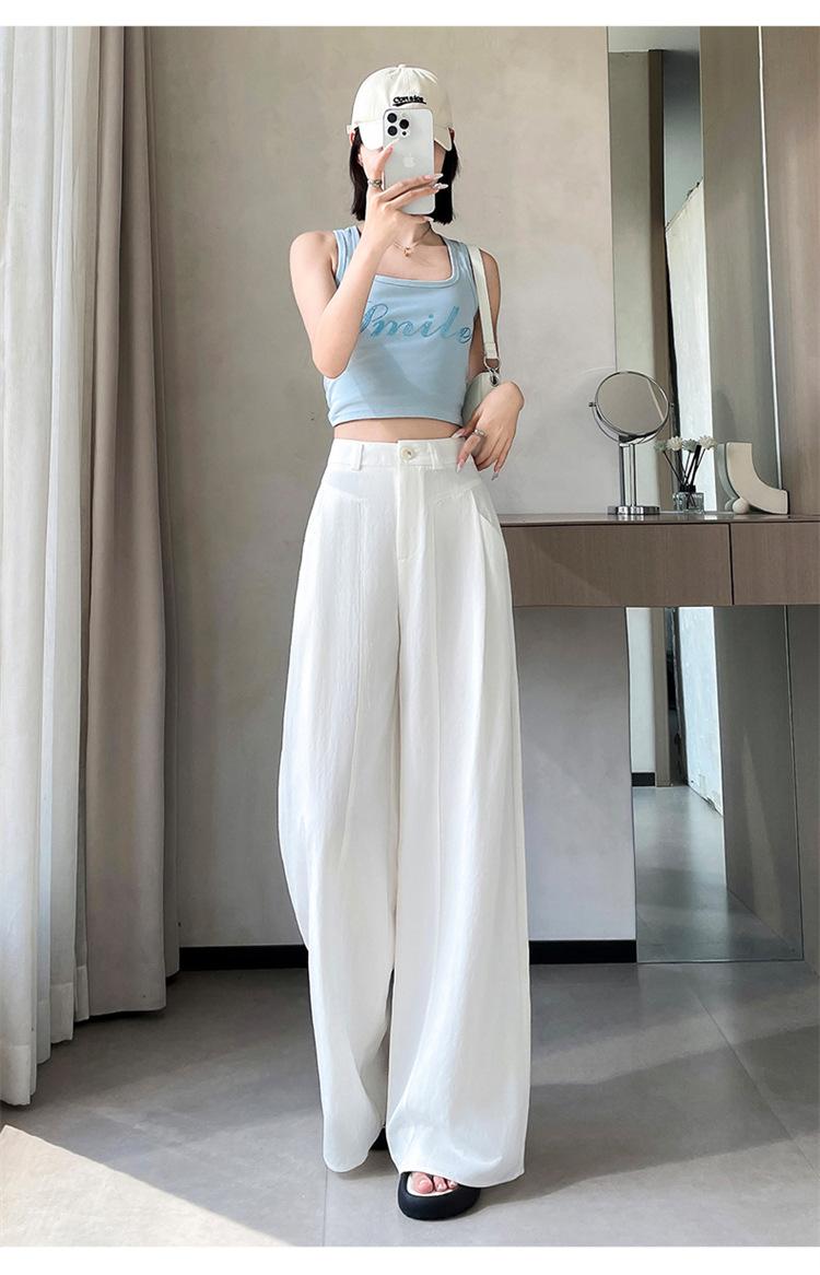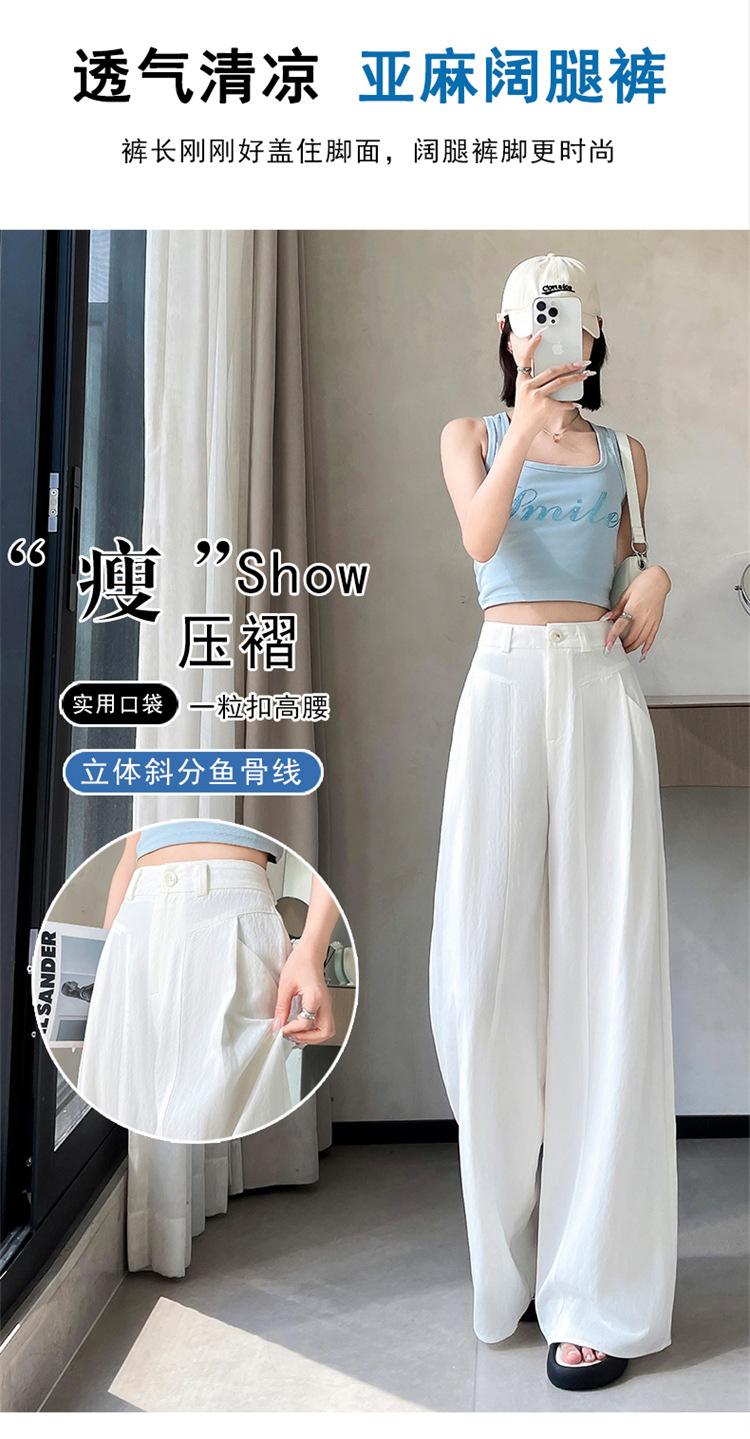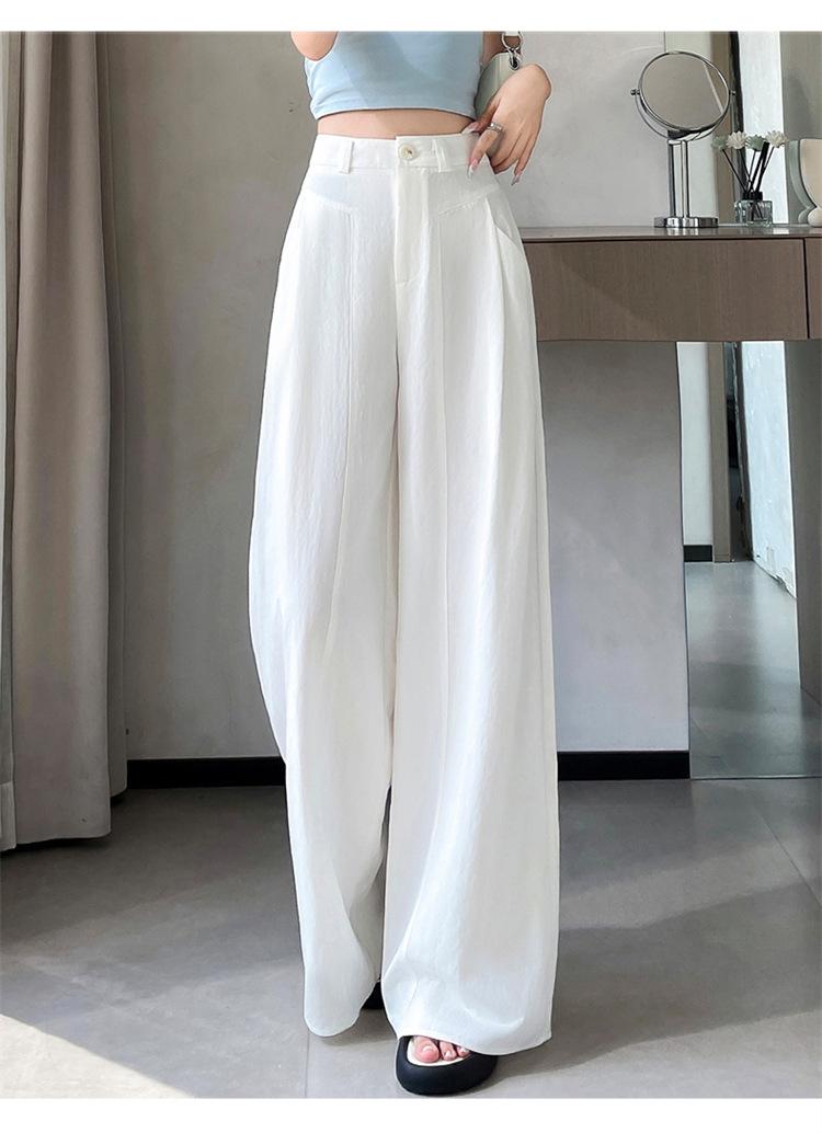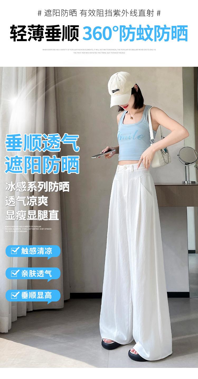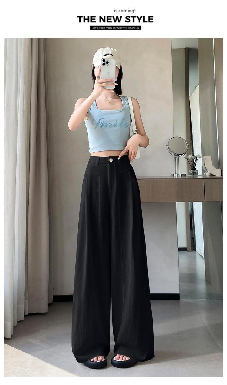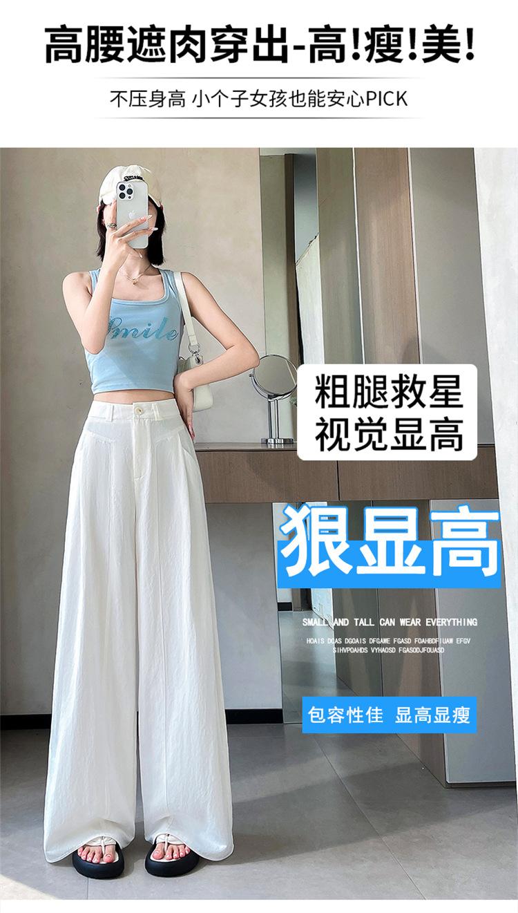 Pantalones de Pierna Ancha de Lino Tencel Verano 2025 Cintura Alta Casual Pantalones de Seda Helada Rectos Pantalones para Barrer el Piso Mujer