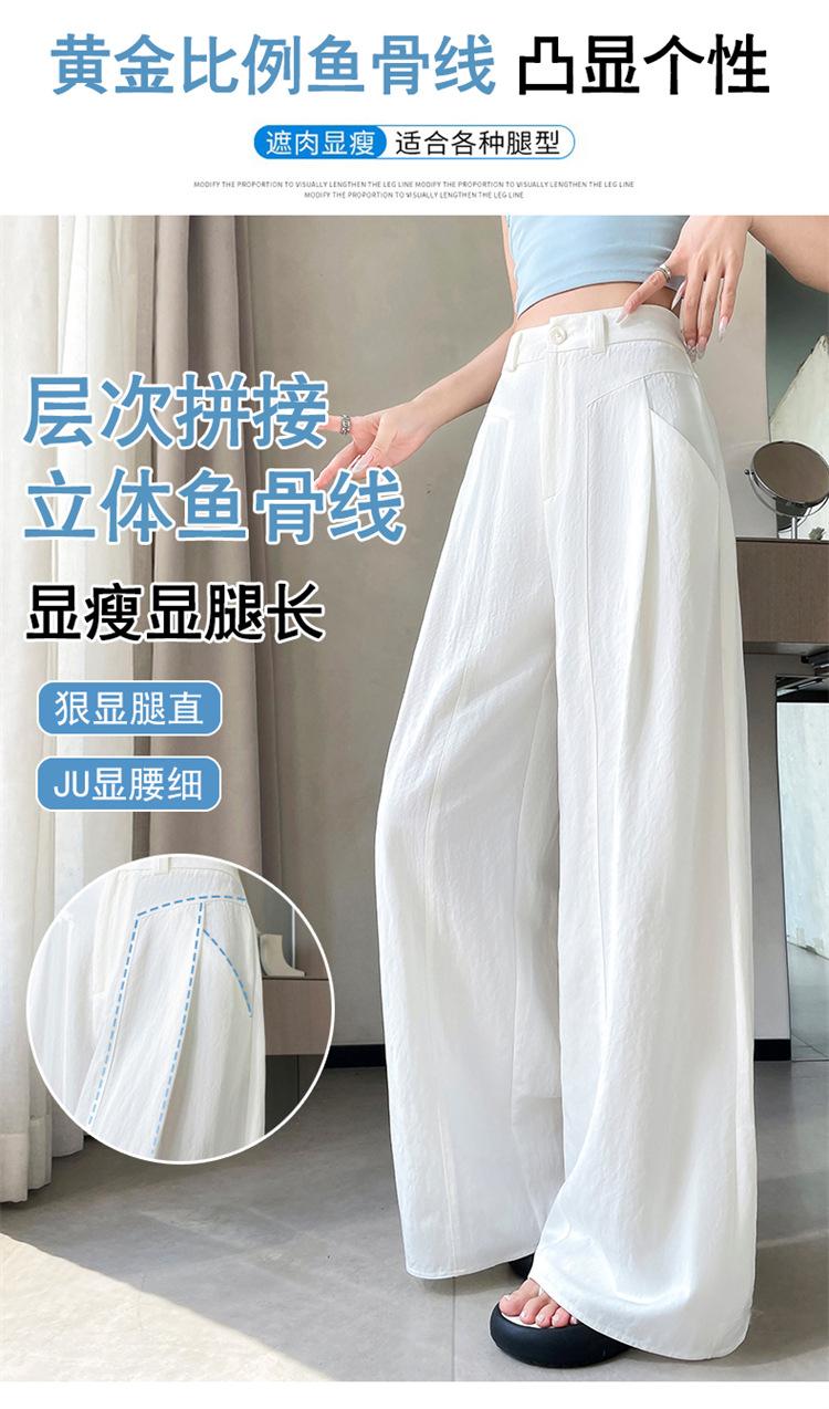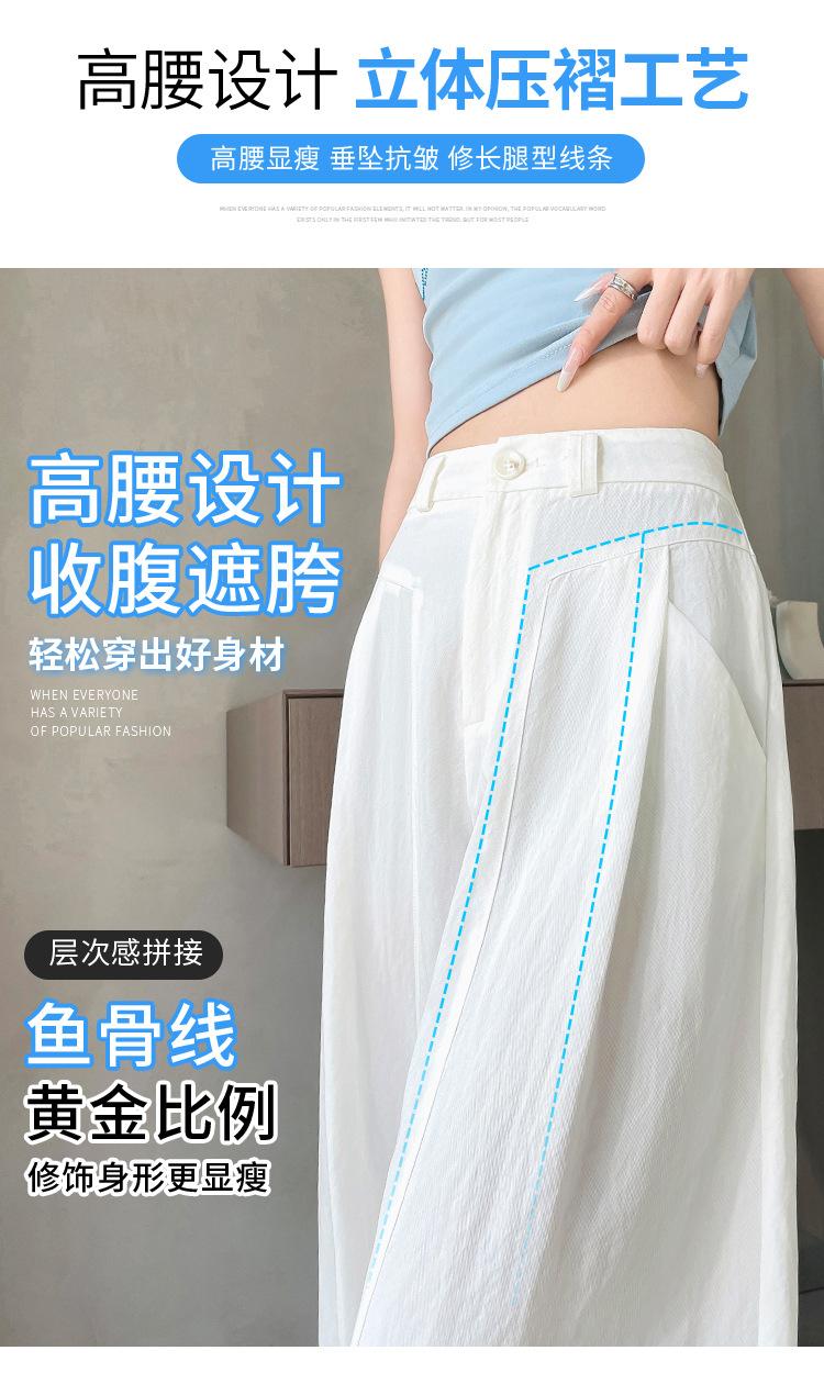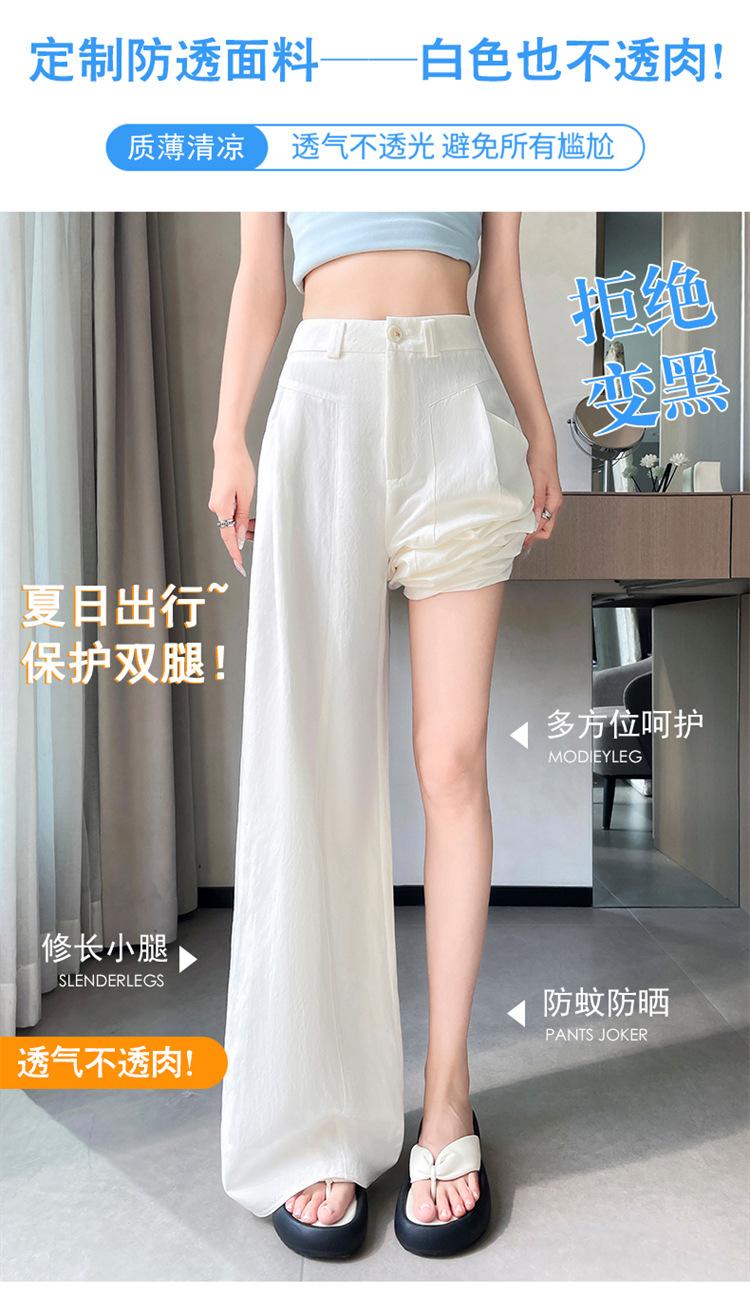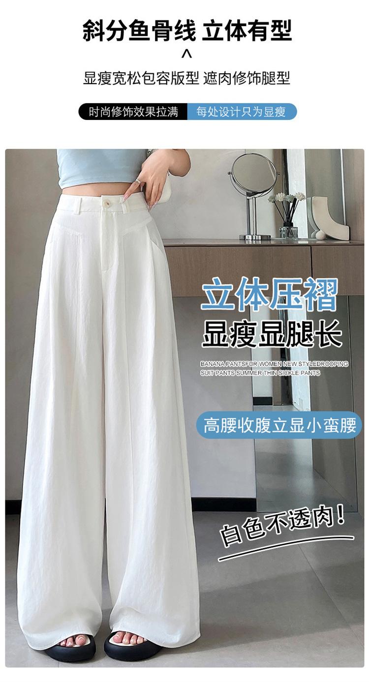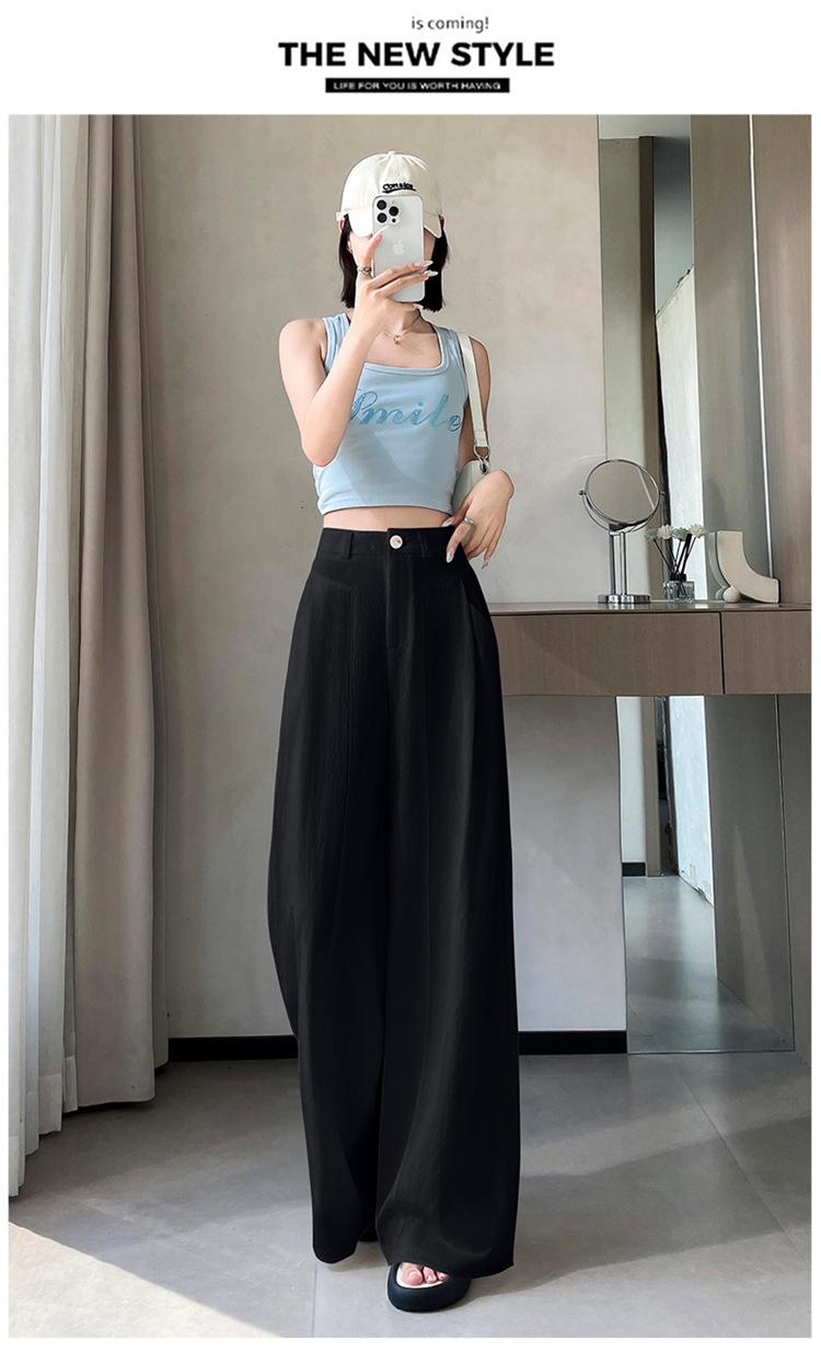 Pantalones de Pierna Ancha de Lino Tencel Verano 2025 Cintura Alta Casual Pantalones de Seda Helada Rectos Pantalones para Barrer el Piso Mujer
