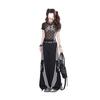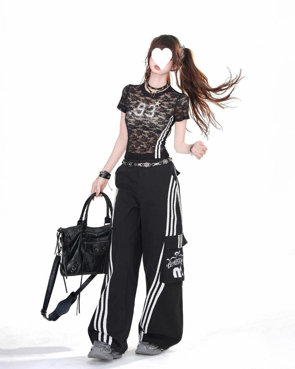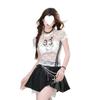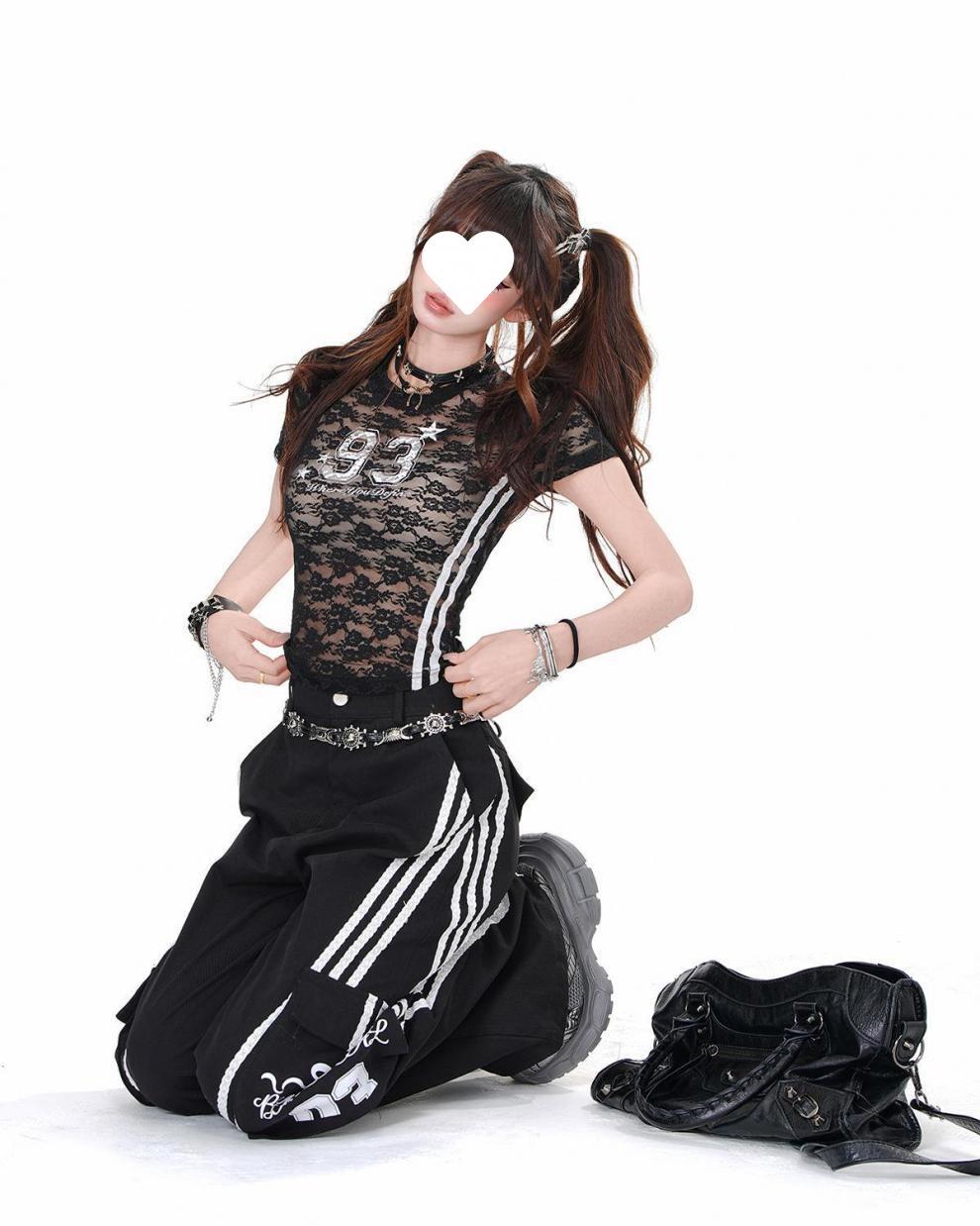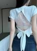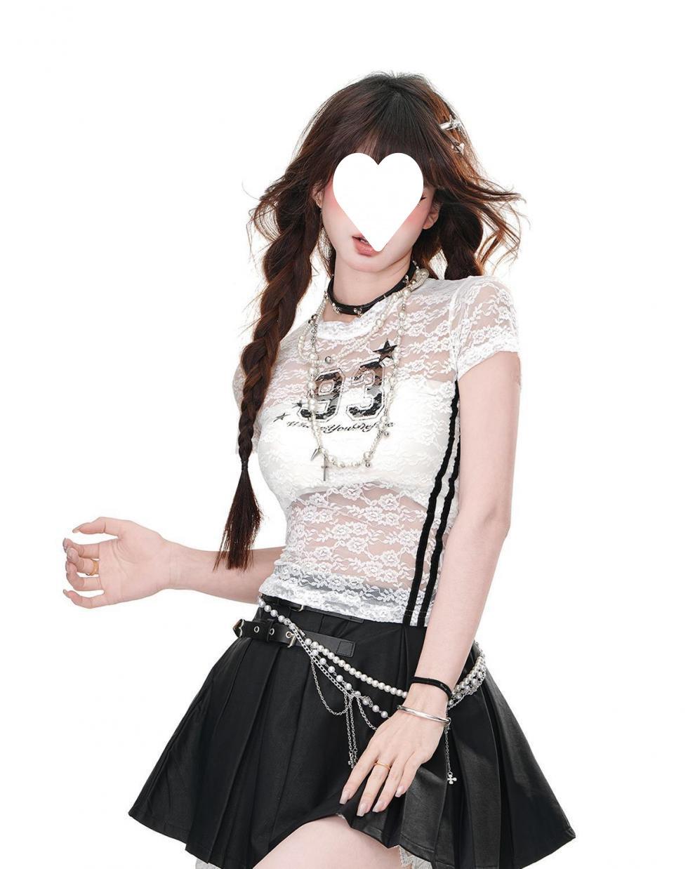 Camiseta Americana Picante Chica Sexy Encaje Manga Corta Mujer Verano Sentido del Diseño Calado Adelgazante Corta Estampado de Letras Top