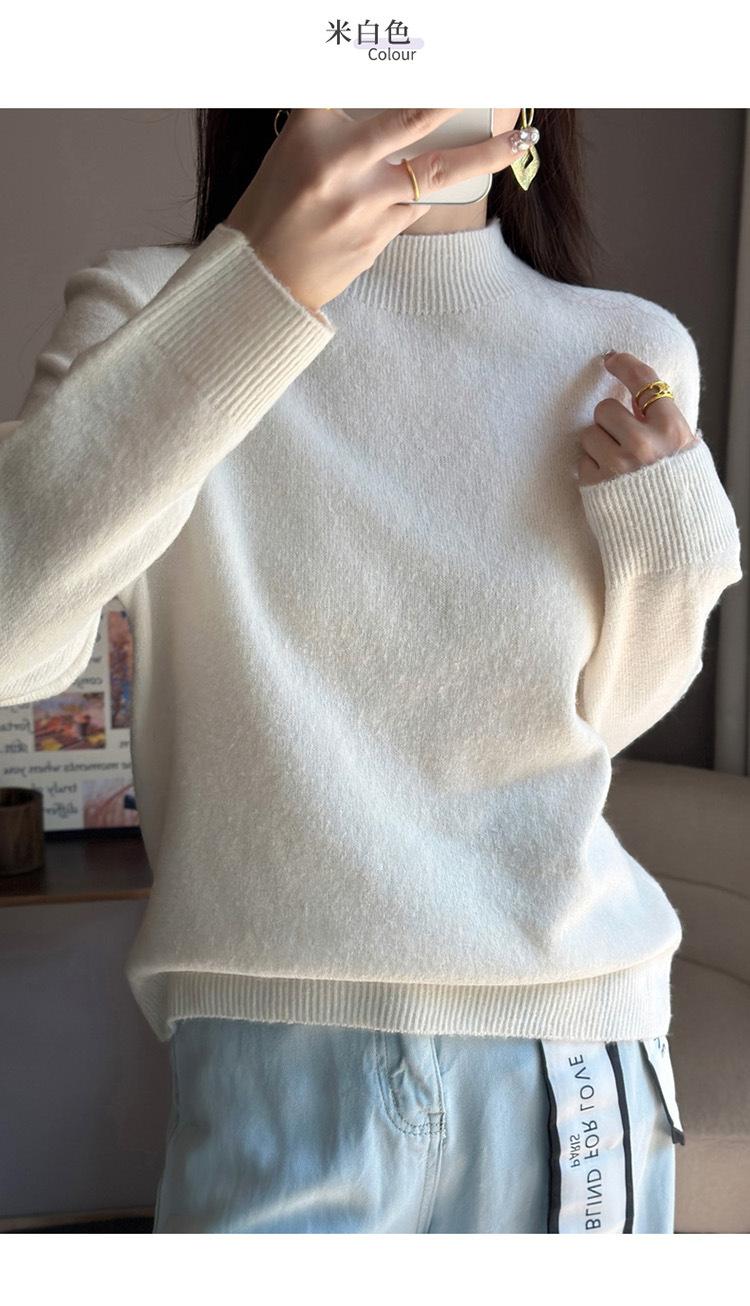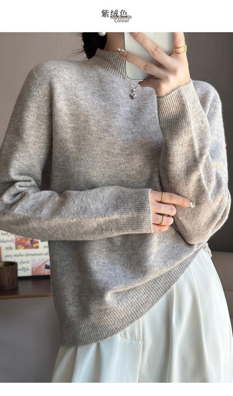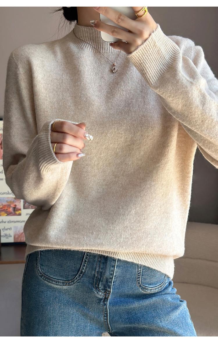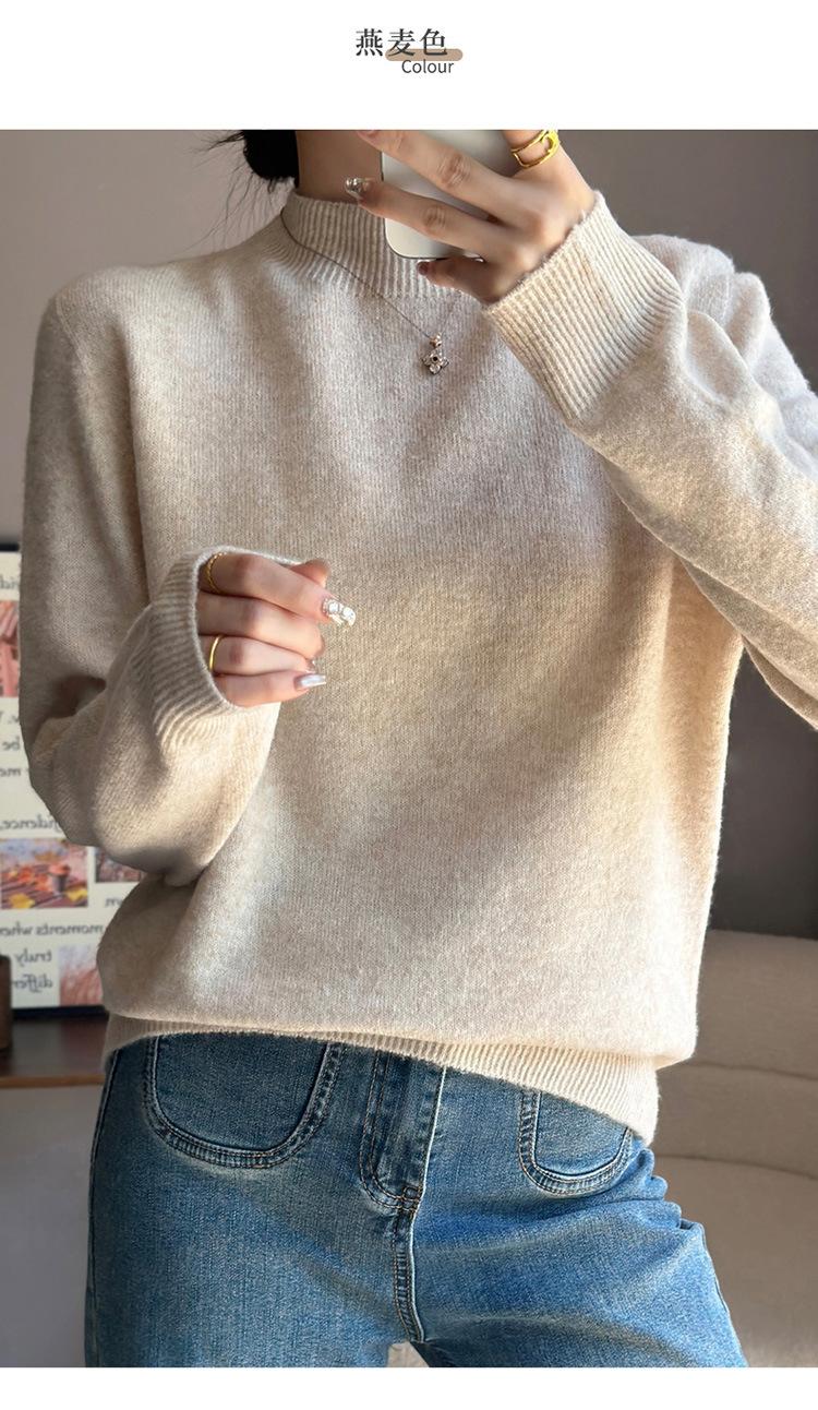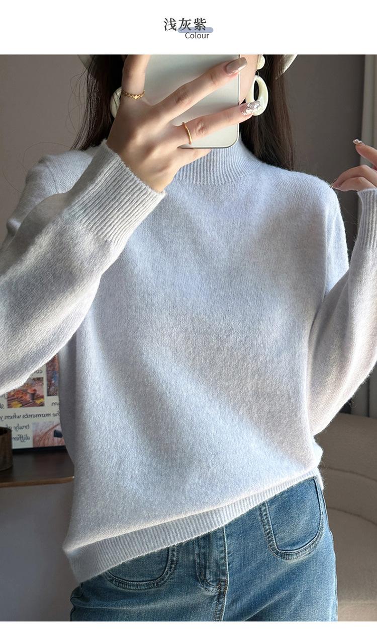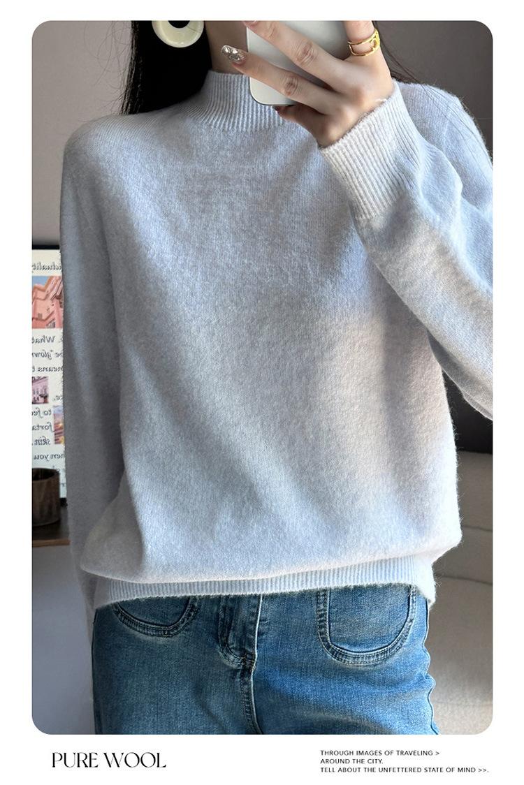2025 Nuevo Pulóver de Lana Merino Fina Capa Base para Mujer Otoño/Invierno Suelto Cuello Medio Alto Color Sólido Suéter de Punto Versátil