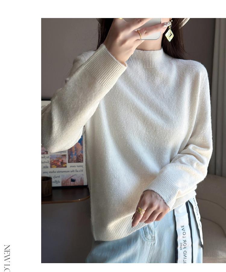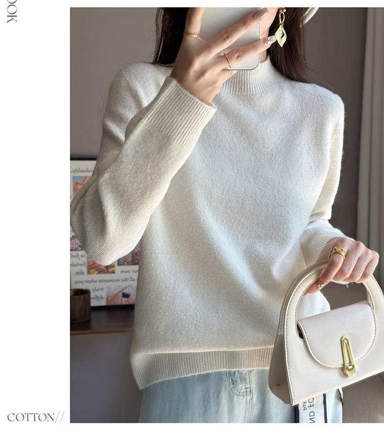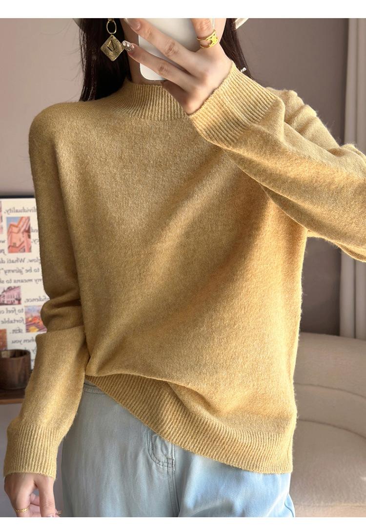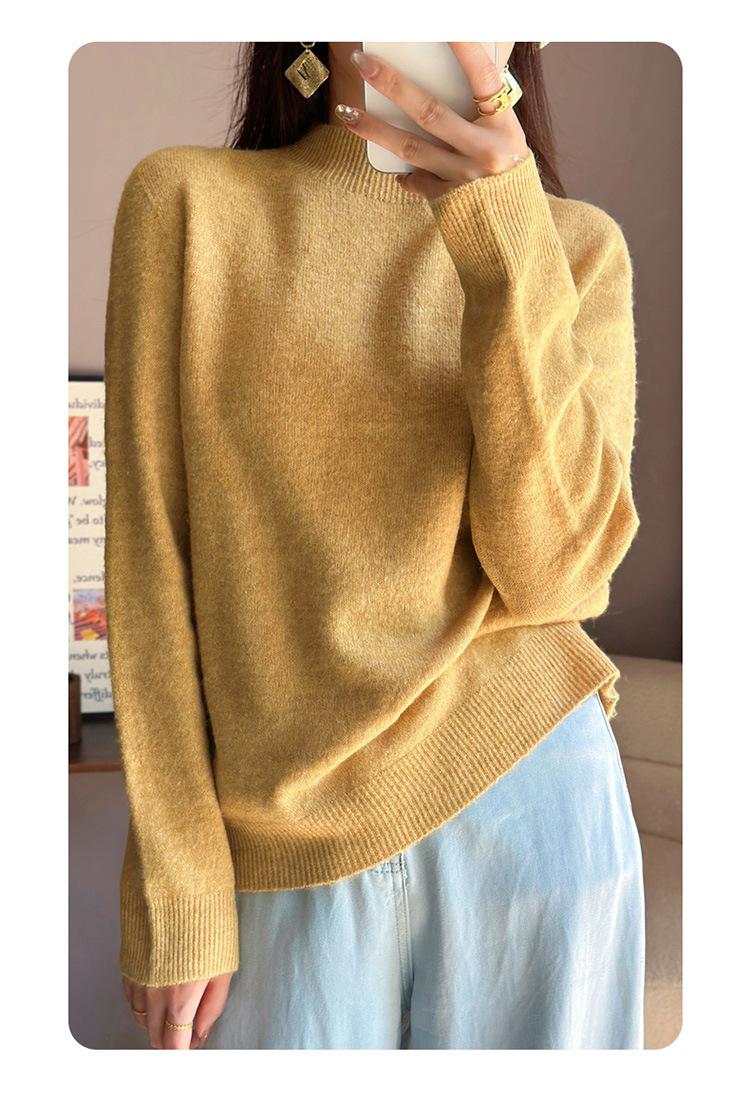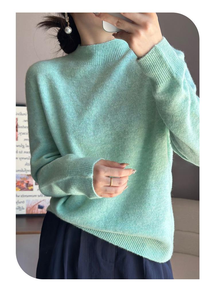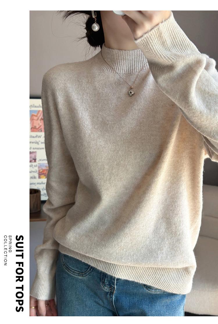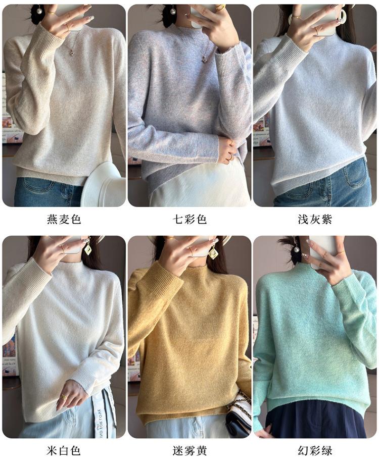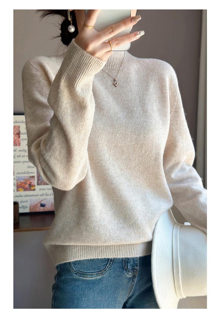 2025 Nuevo Pulóver de Lana Merino Fina Capa Base para Mujer Otoño/Invierno Suelto Cuello Medio Alto Color Sólido Suéter de Punto Versátil