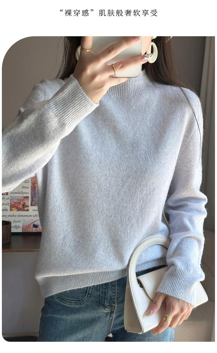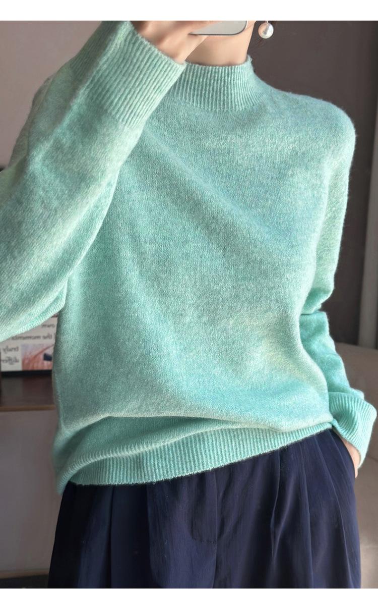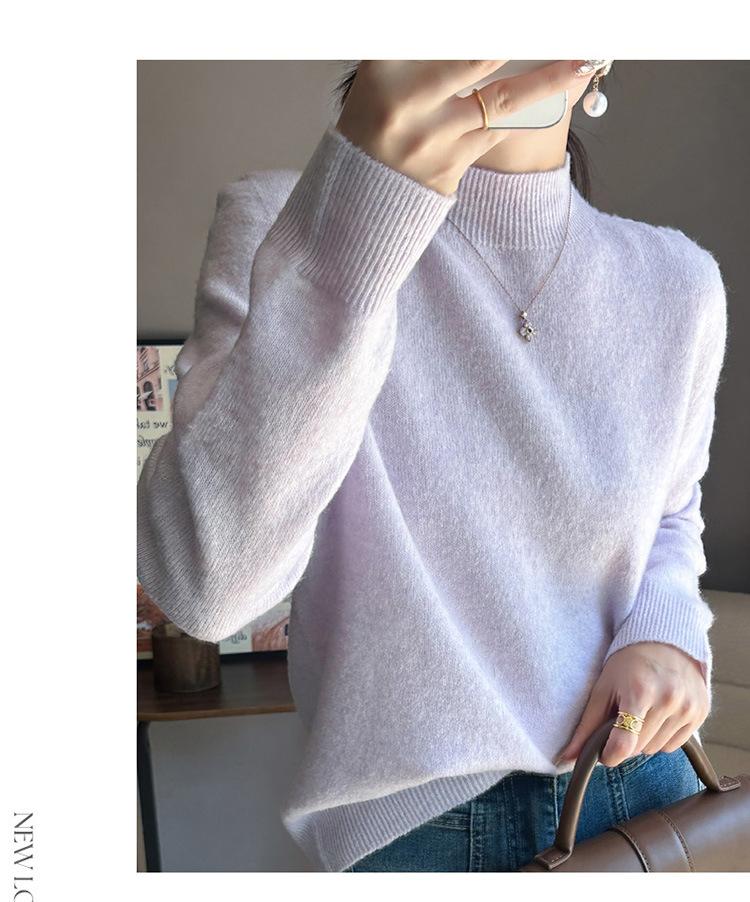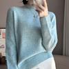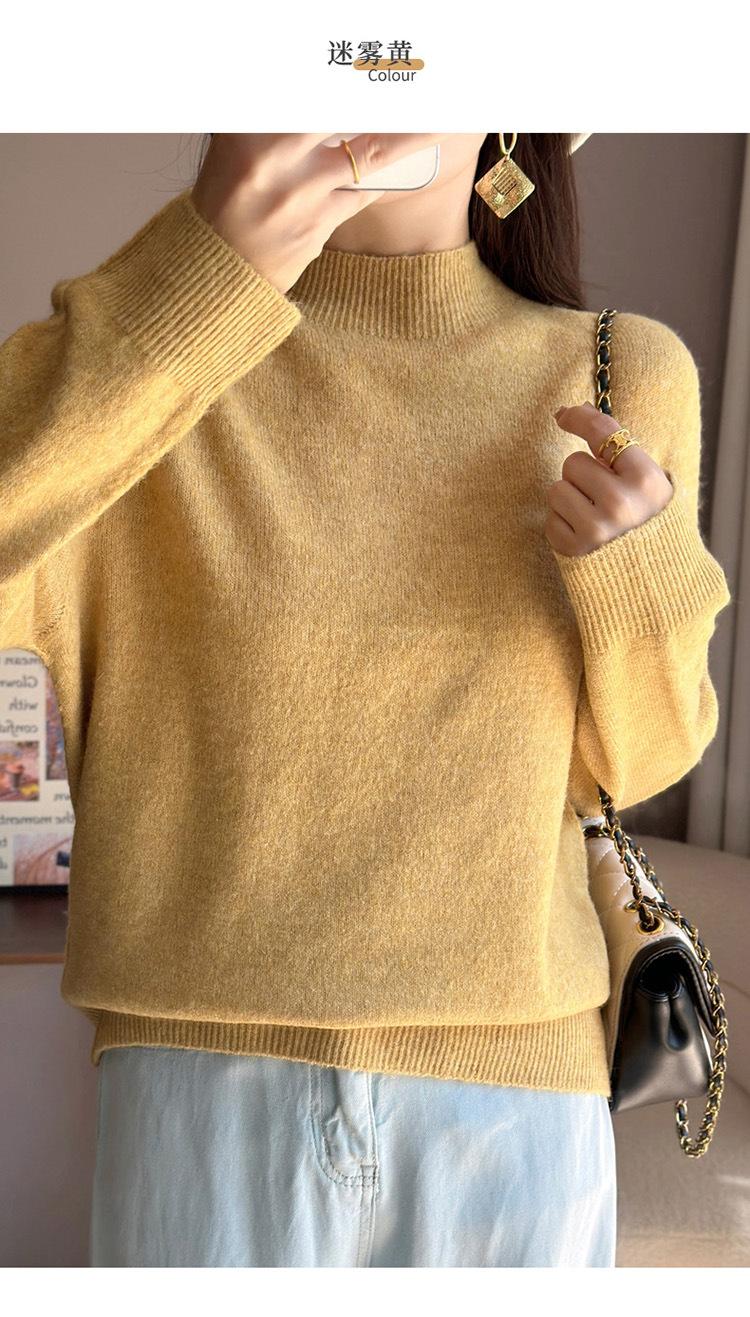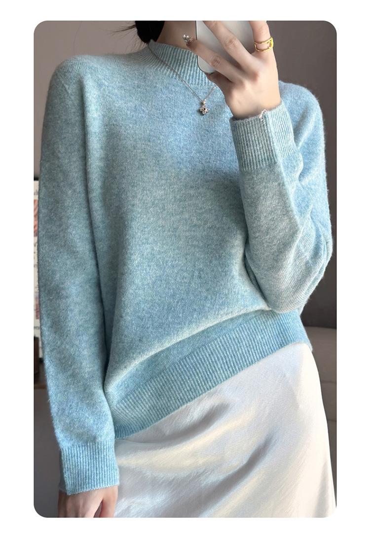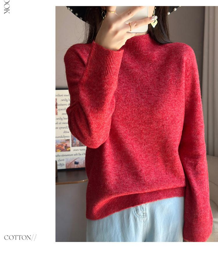 2025 Nuevo Pulóver de Lana Merino Fina Capa Base para Mujer Otoño/Invierno Suelto Cuello Medio Alto Color Sólido Suéter de Punto Versátil