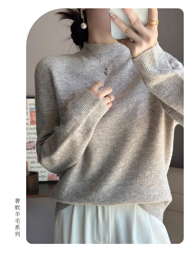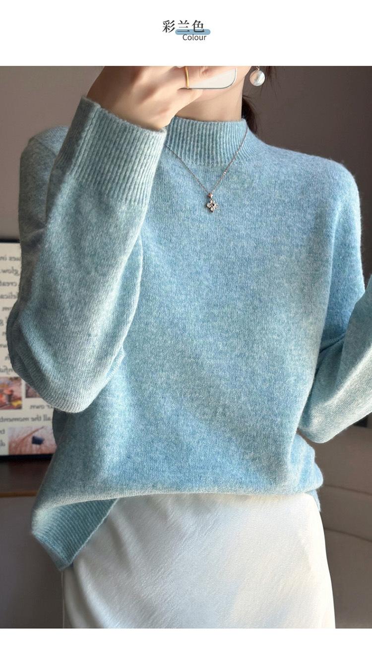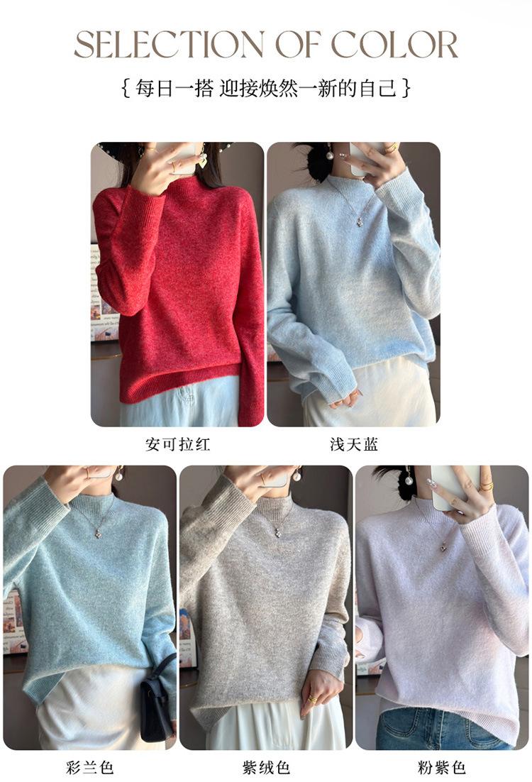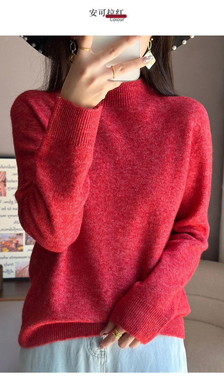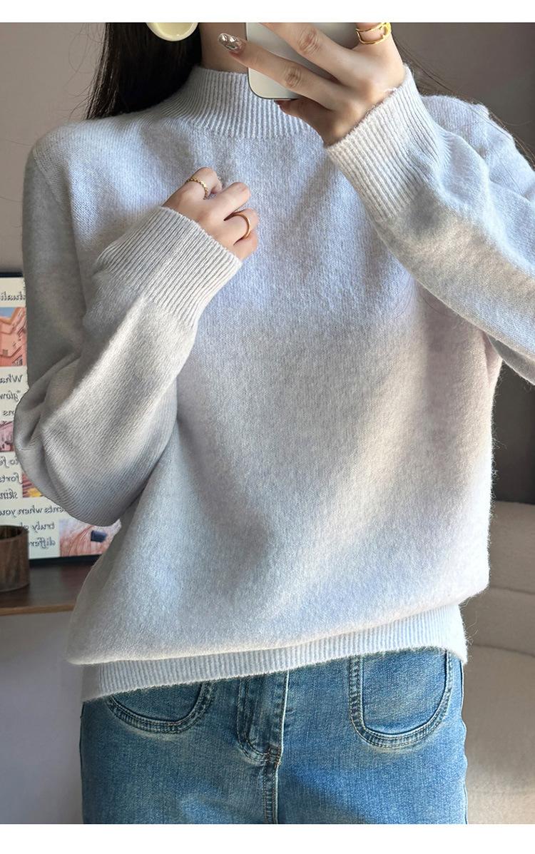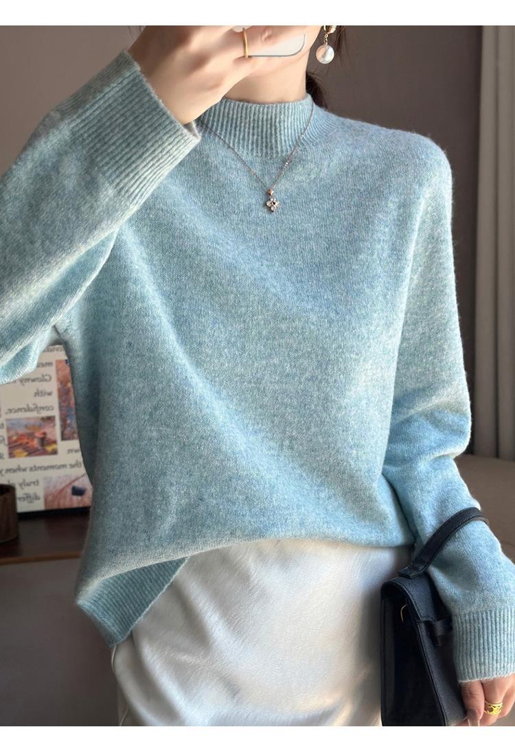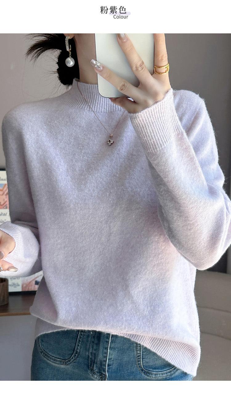 2025 Nuevo Pulóver de Lana Merino Fina Capa Base para Mujer Otoño/Invierno Suelto Cuello Medio Alto Color Sólido Suéter de Punto Versátil