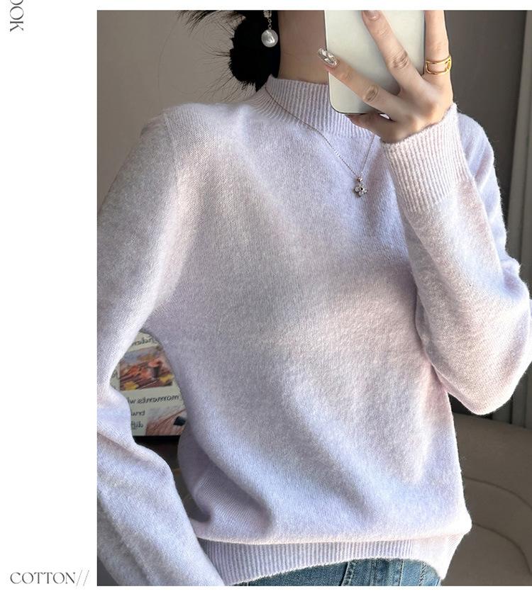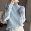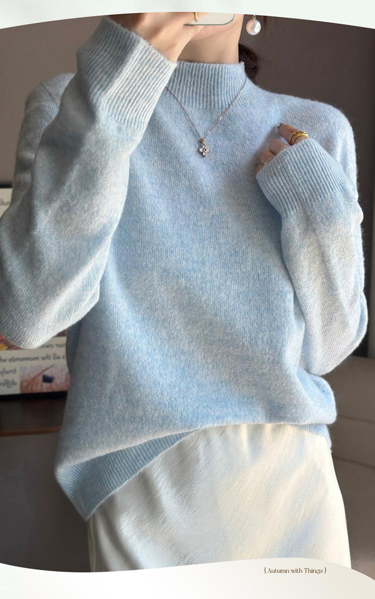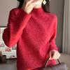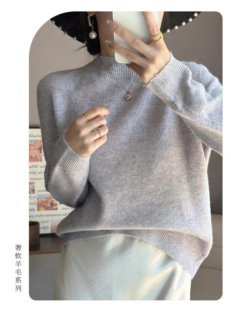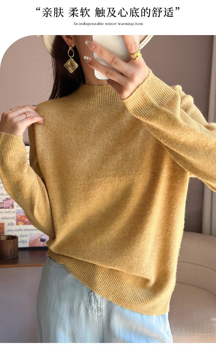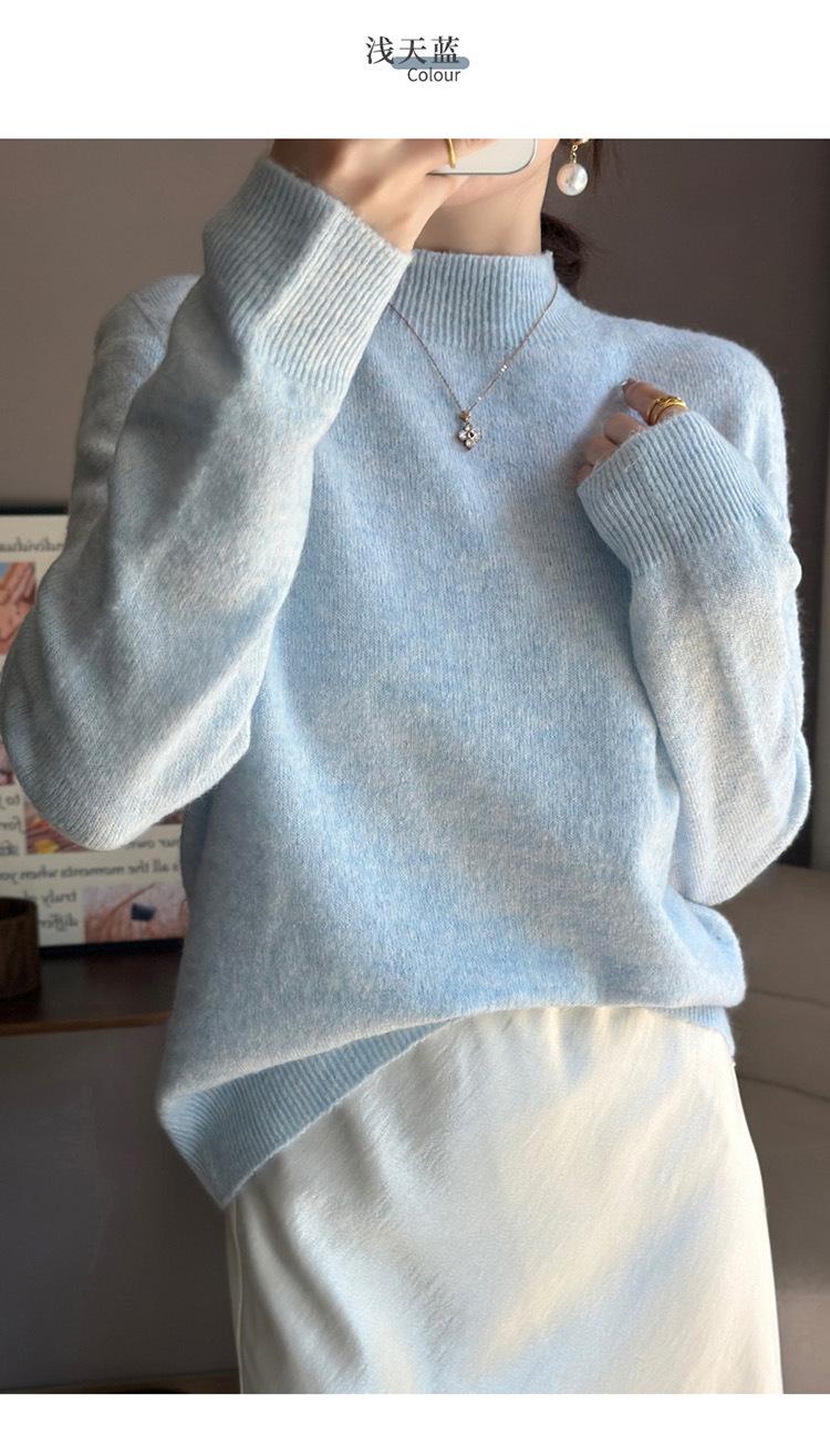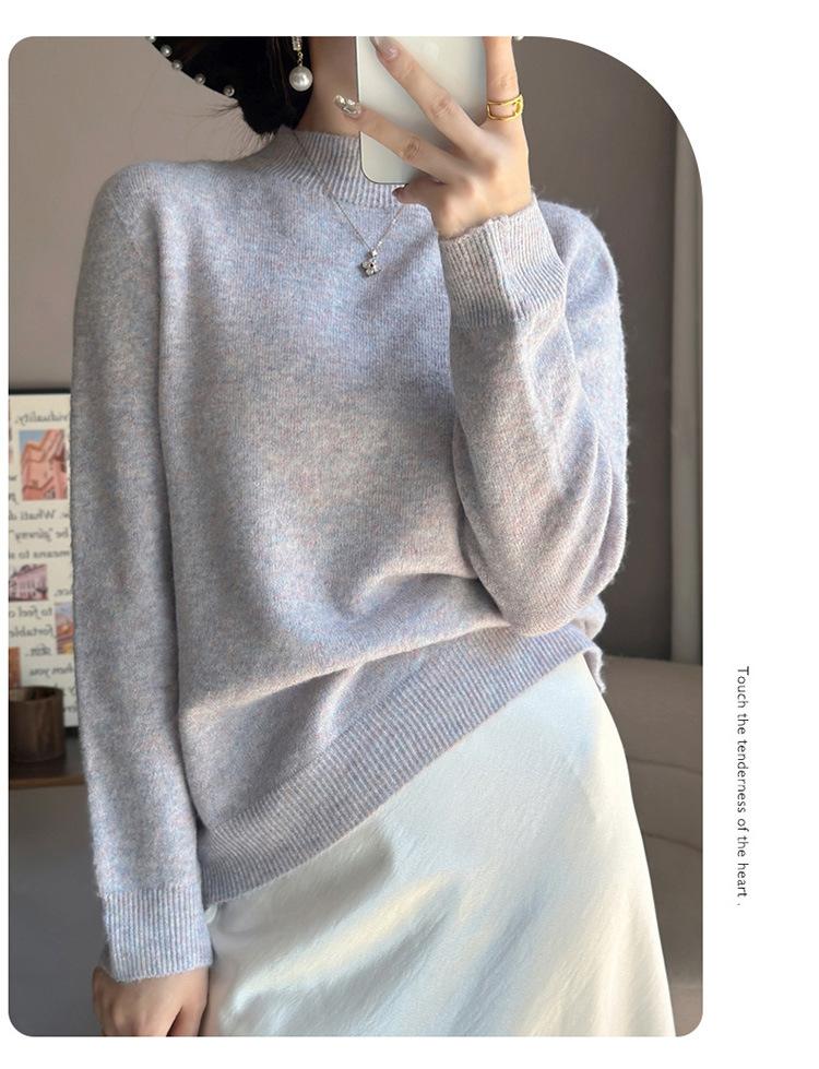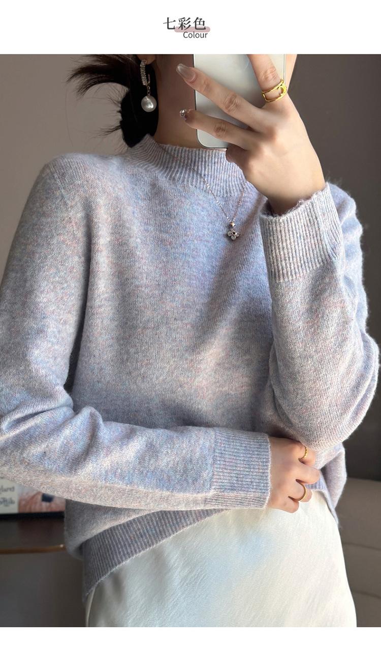 2025 Nuevo Pulóver de Lana Merino Fina Capa Base para Mujer Otoño/Invierno Suelto Cuello Medio Alto Color Sólido Suéter de Punto Versátil