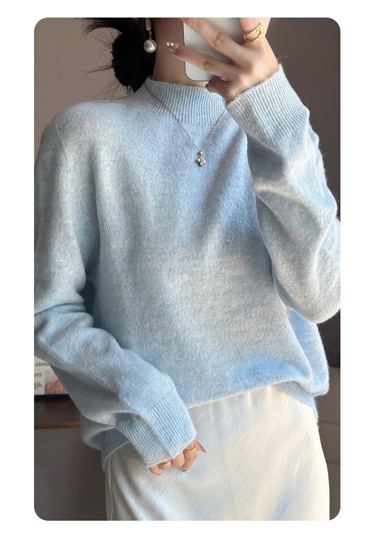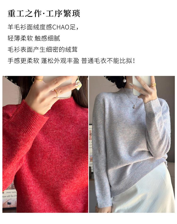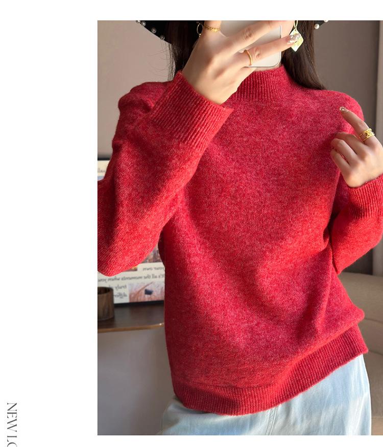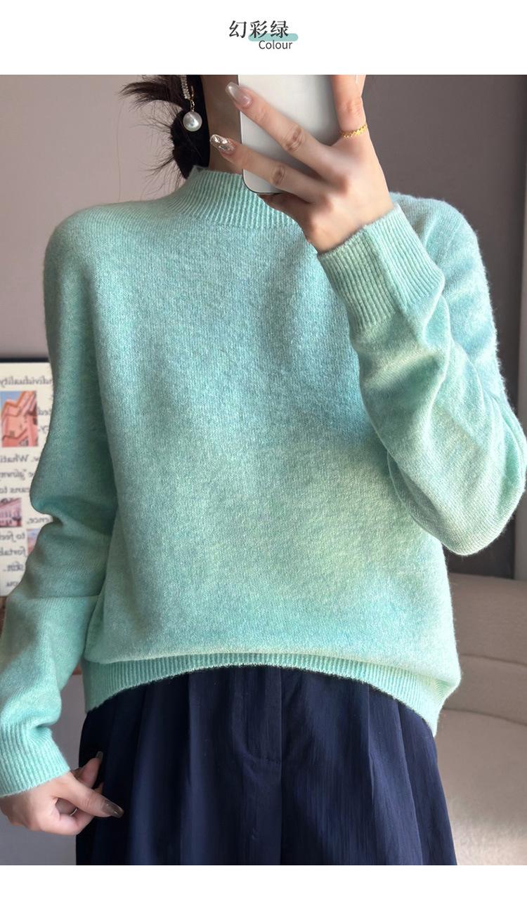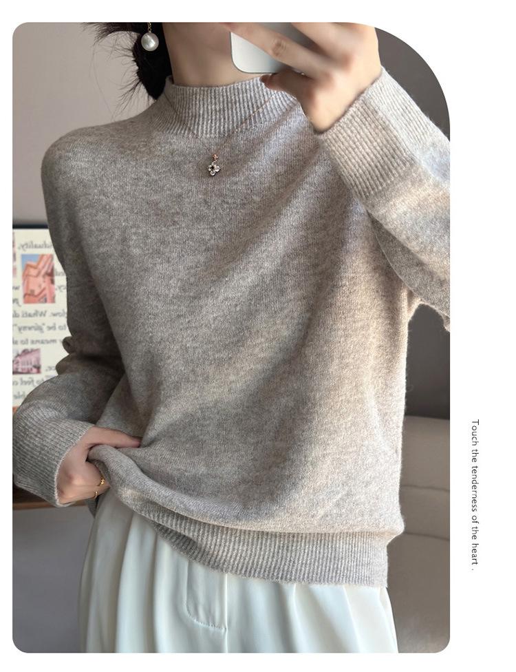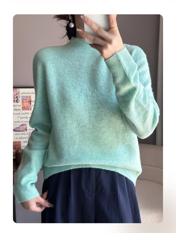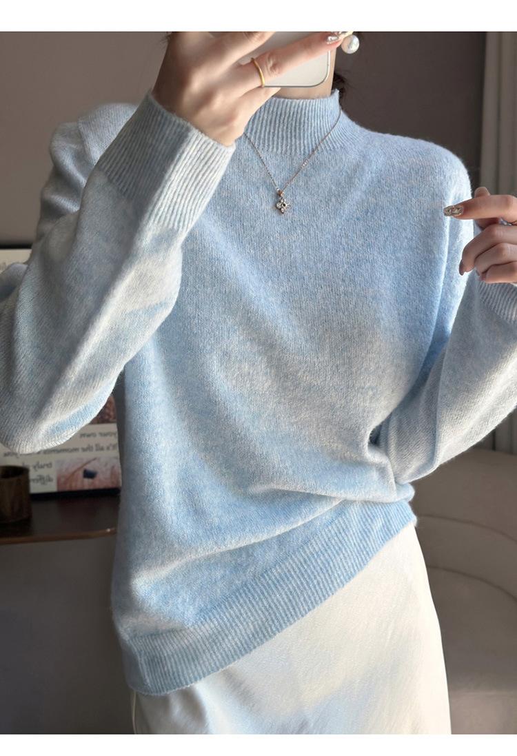 2025 Nuevo Pulóver de Lana Merino Fina Capa Base para Mujer Otoño/Invierno Suelto Cuello Medio Alto Color Sólido Suéter de Punto Versátil