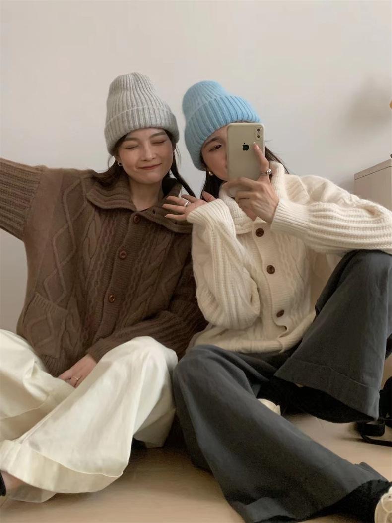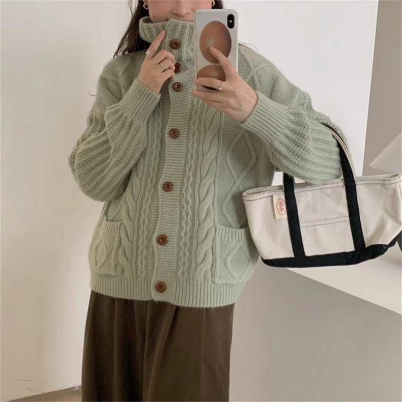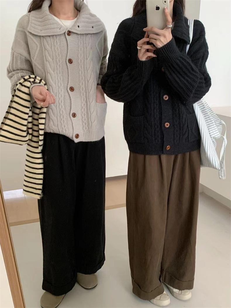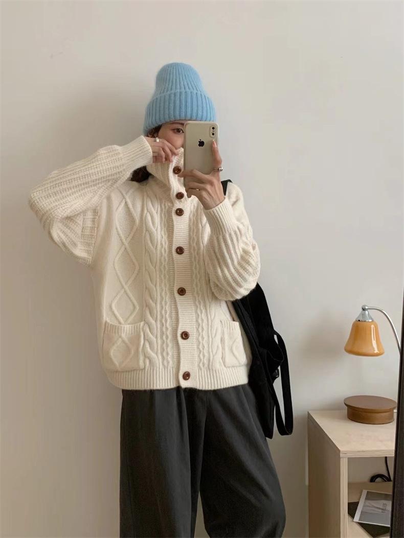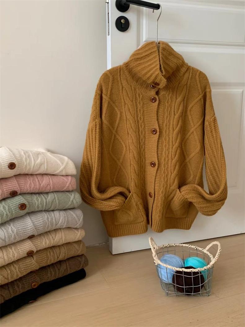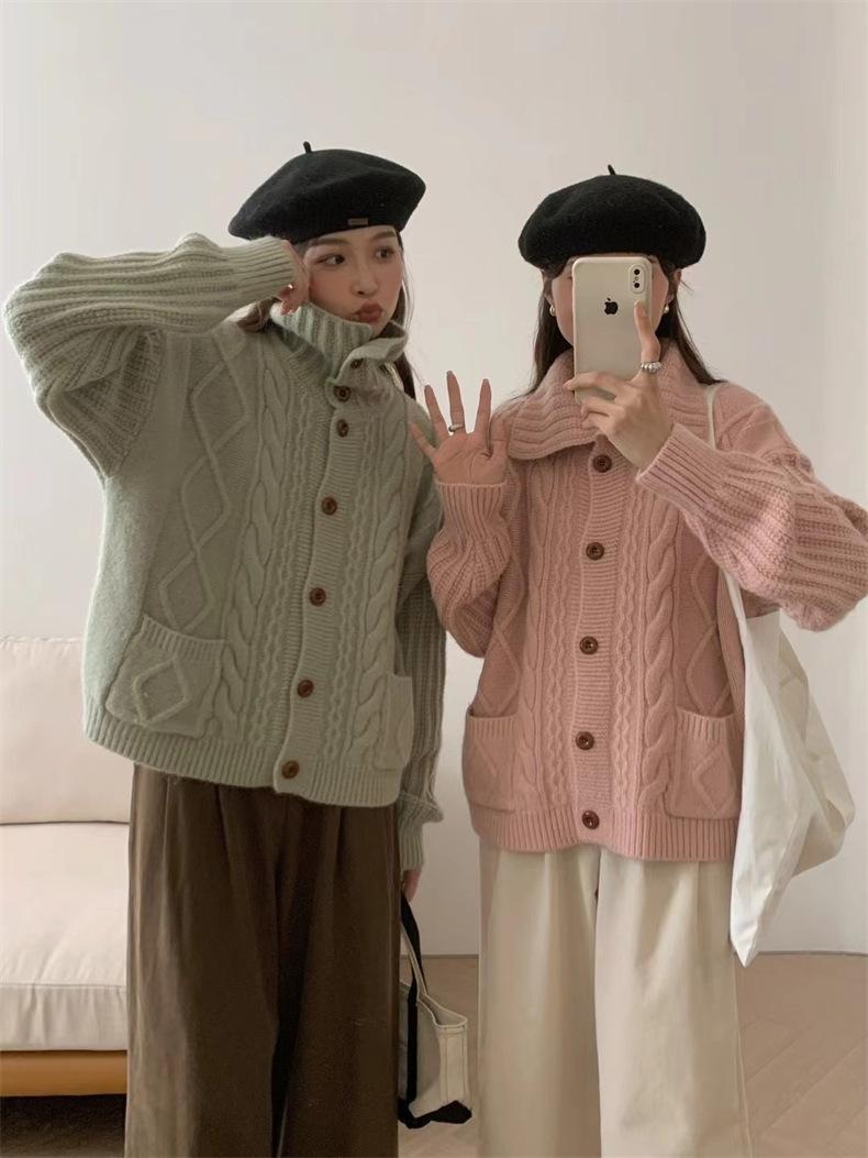 Cárdigan de Punto con Solapa de Estilo Coreano de Estilo Suave para Mujer, Suéter Holgado Corto de Un Solo Botón, Otoño e Invierno, Retro, con Trenzas