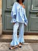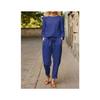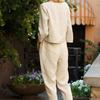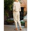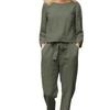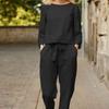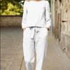 Conjunto de dos piezas casual de temperamento transfronterizo de otoño 2025 de algodón lino, cintura elástica con lazo, color de moda, manga larga, chándal para mujer
