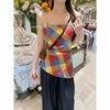 Verano Nuevo Camisola Tank Top Mujer Americano Retro Abertura Adelgazante Cintura Dulce y Picante Top Temperamento Adelgazante de Alta Gama
