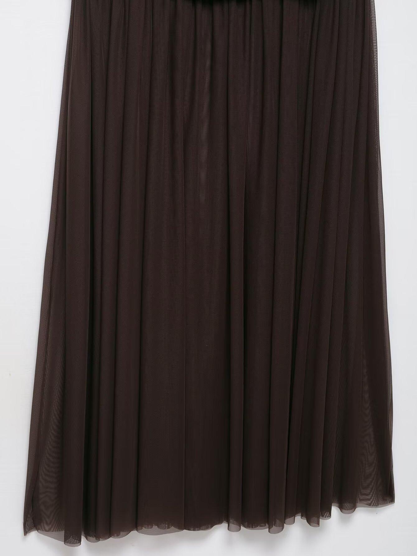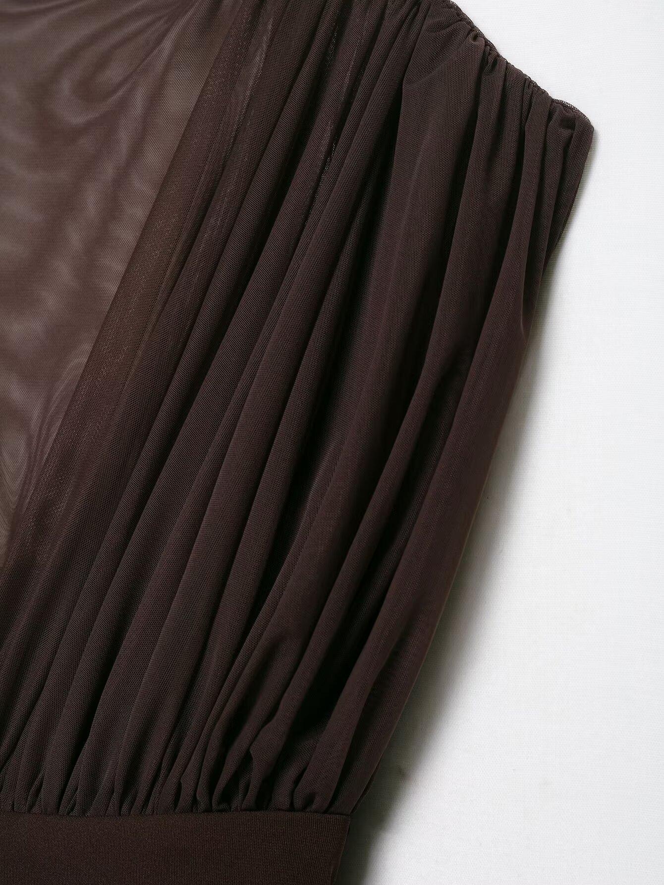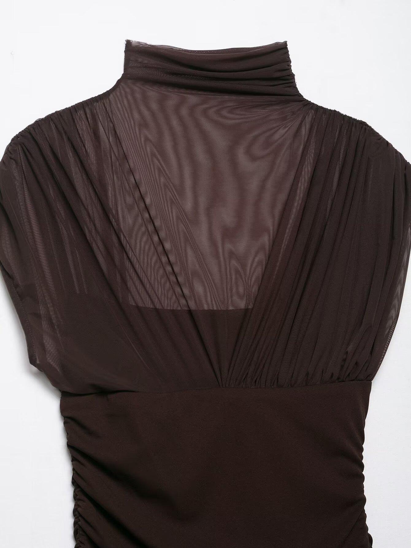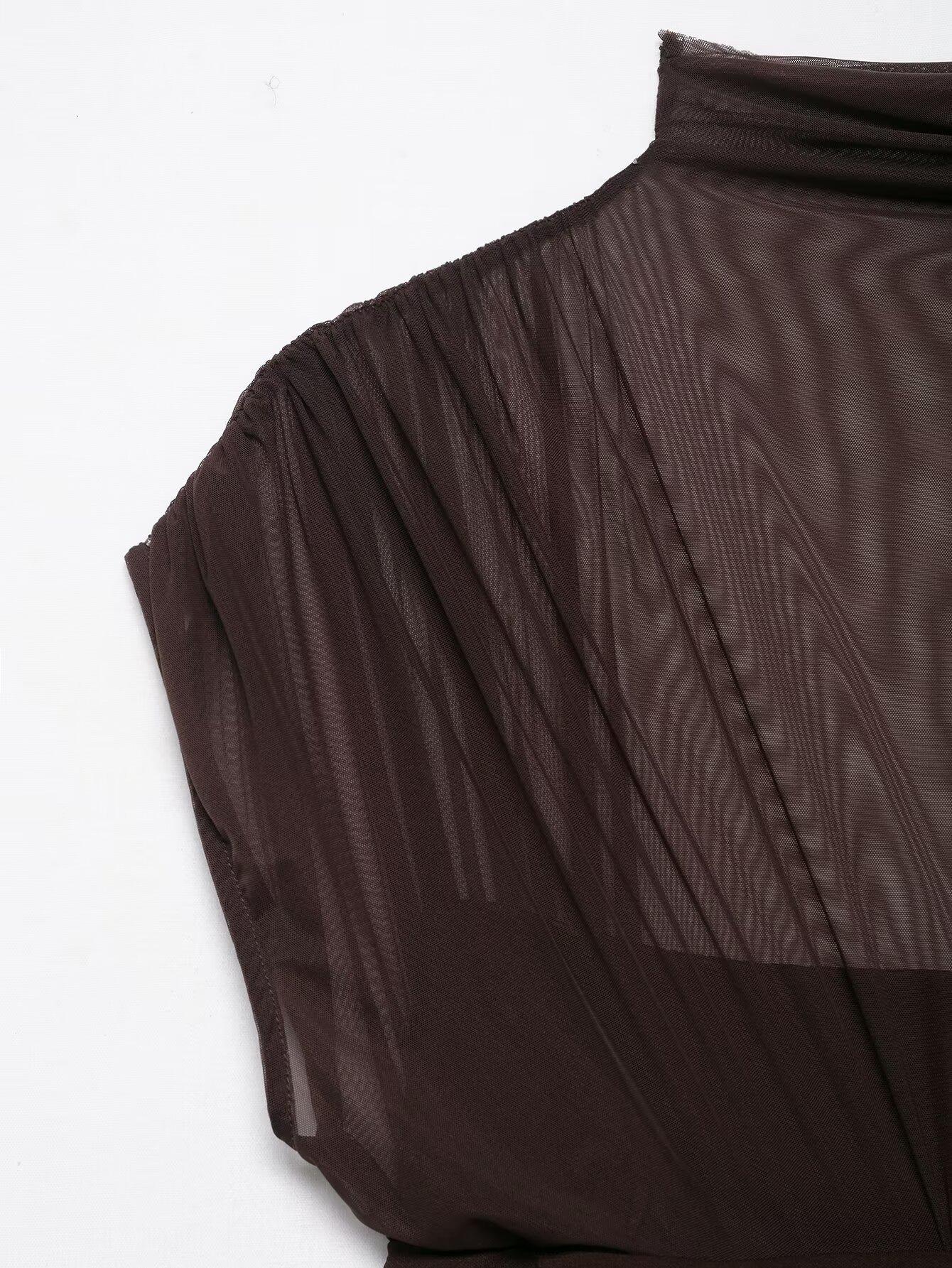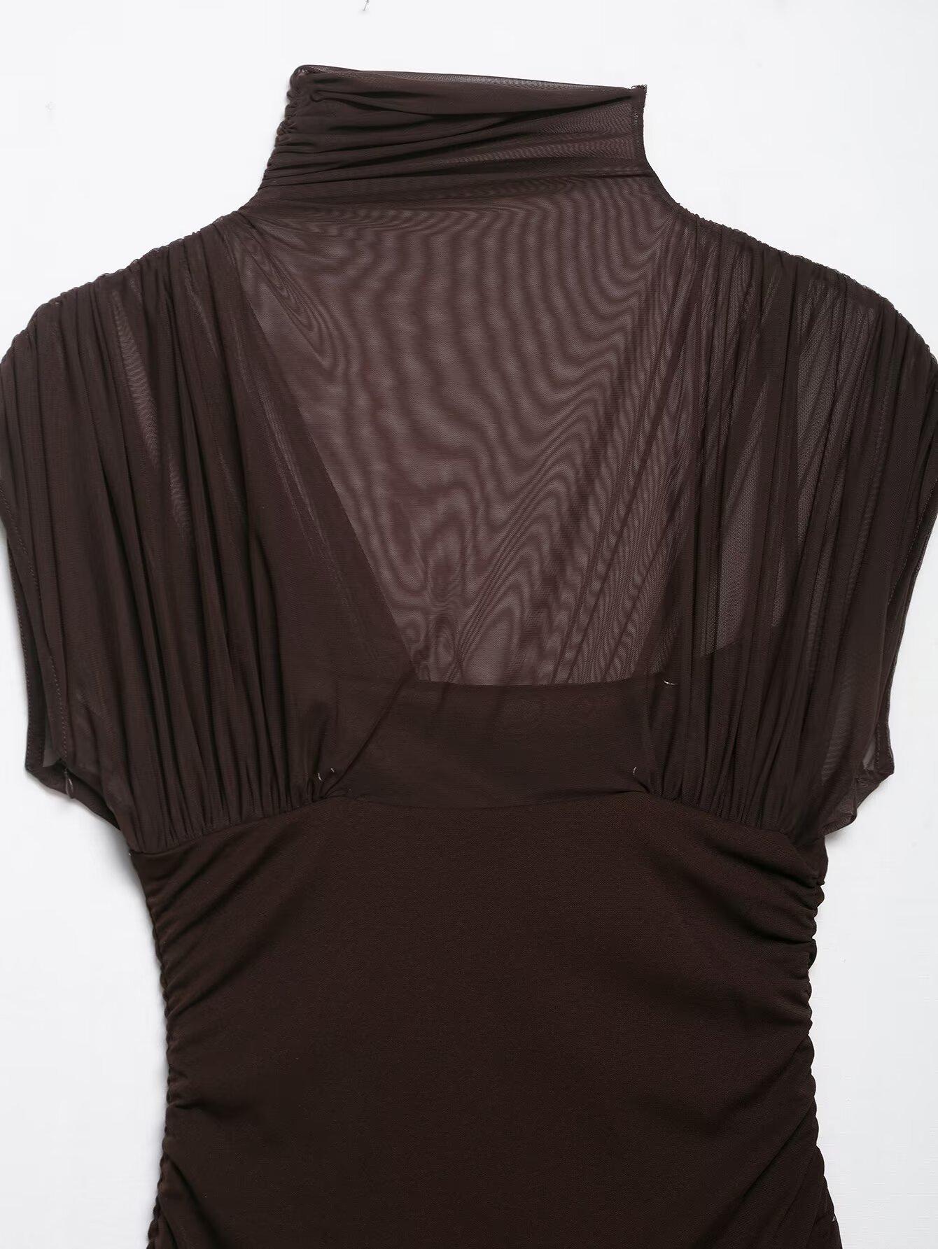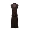 Moda Femenina Europea y Americana Transfronteriza AliExpress Estilo Caliente Adelgazante Sexy Versátil Vestido Midi sin Mangas con Empalme de Malla de Seda