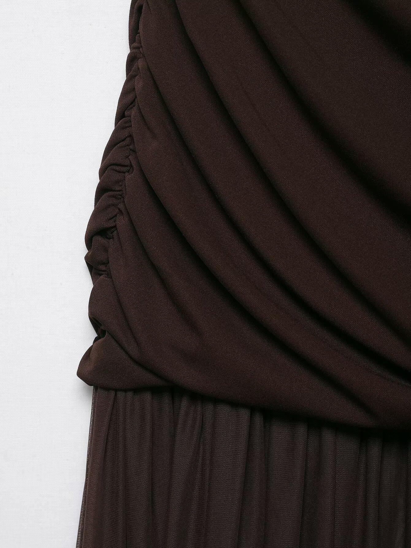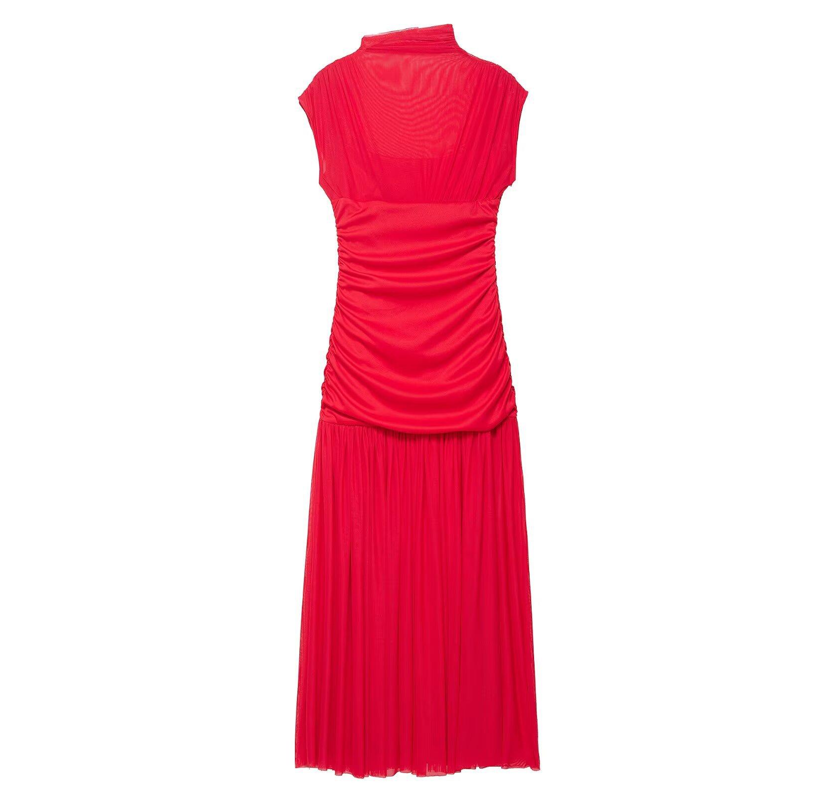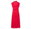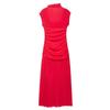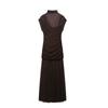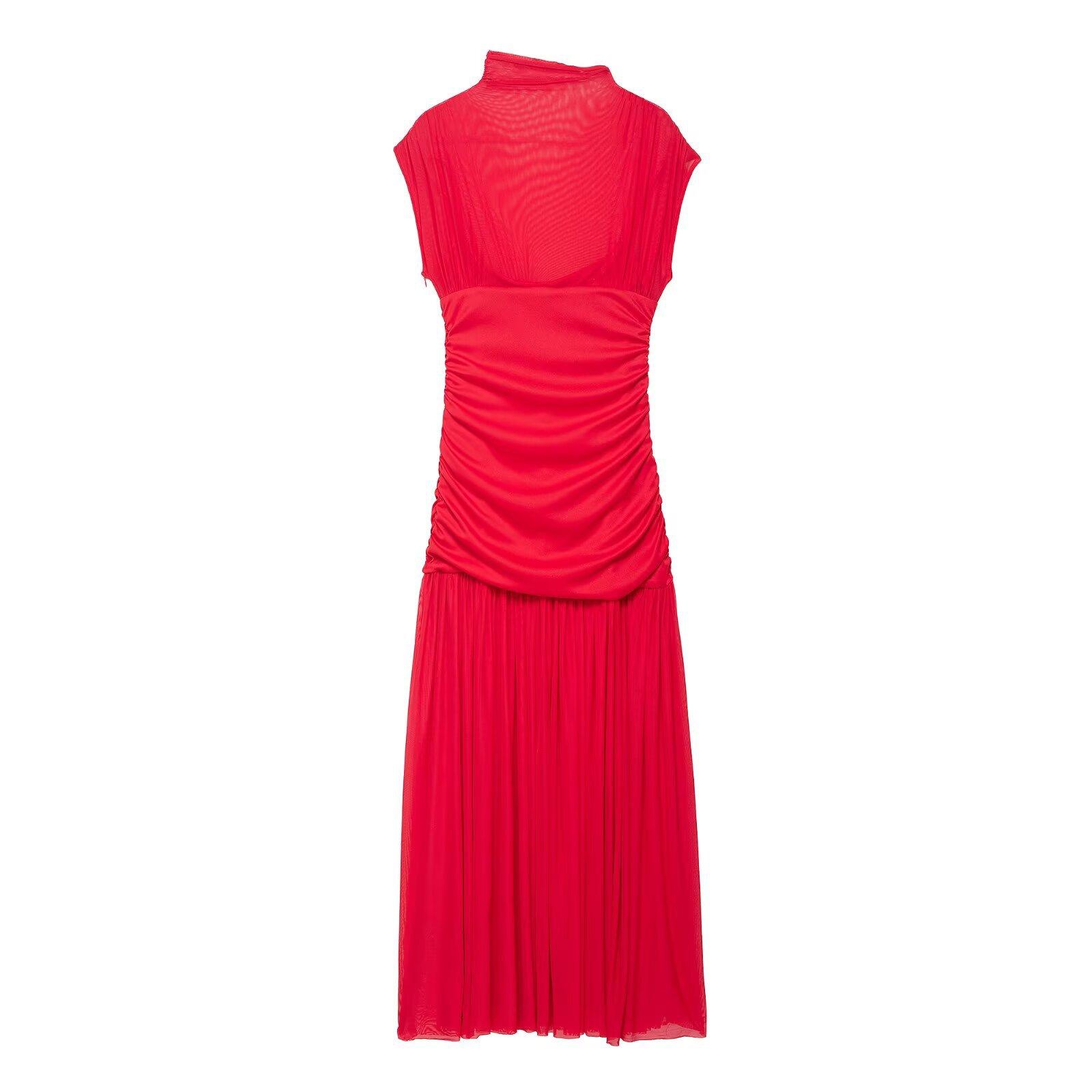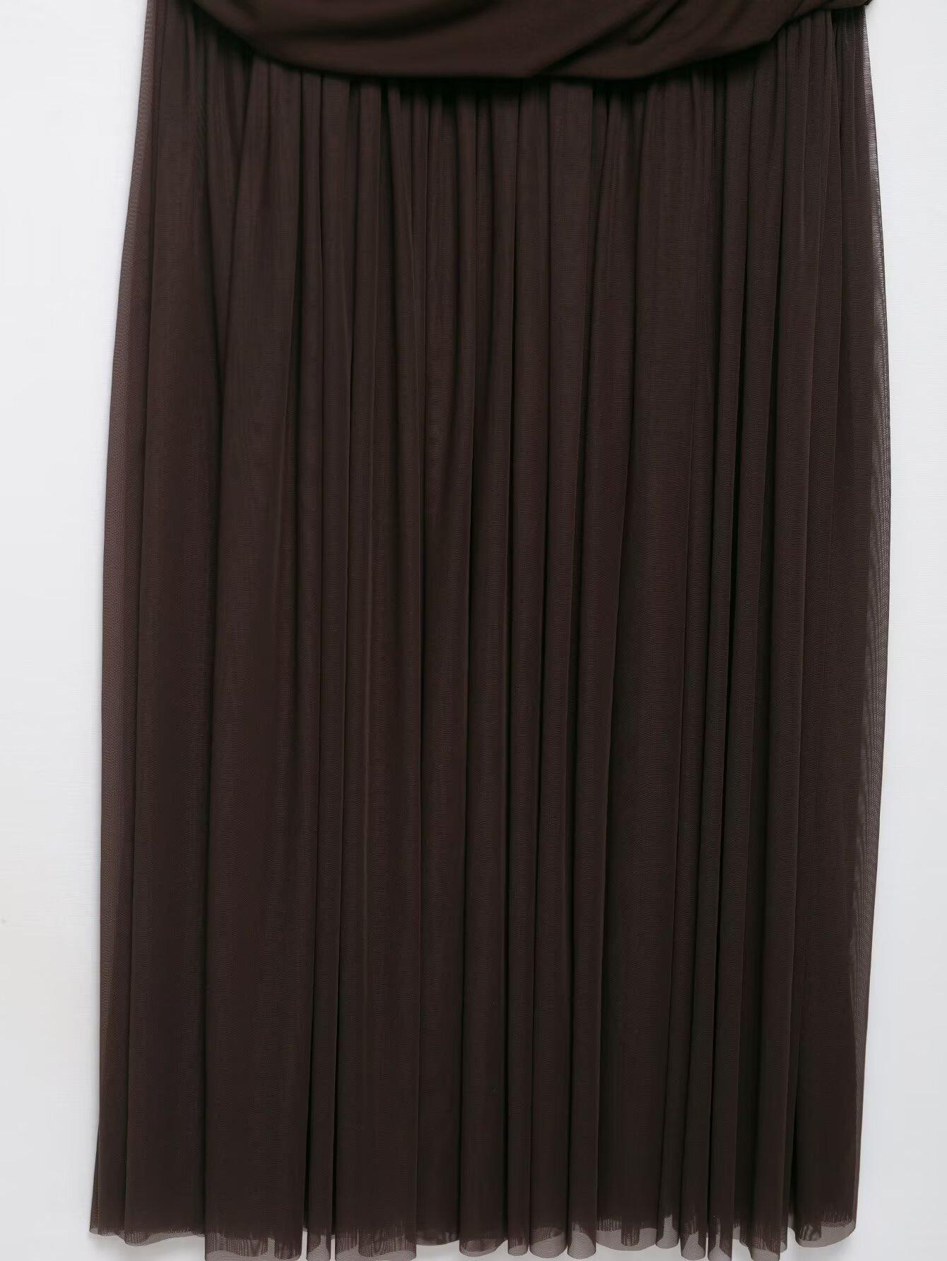 Moda Femenina Europea y Americana Transfronteriza AliExpress Estilo Caliente Adelgazante Sexy Versátil Vestido Midi sin Mangas con Empalme de Malla de Seda