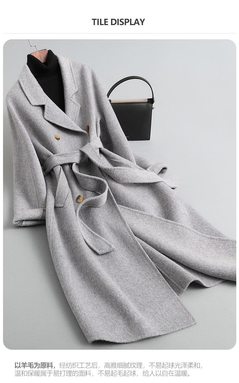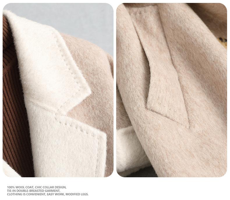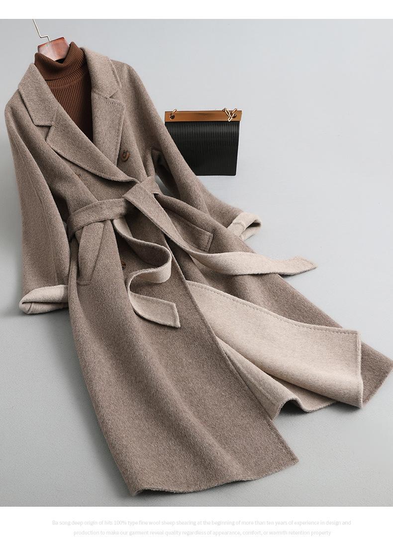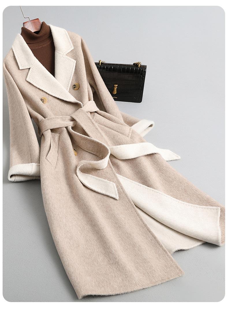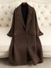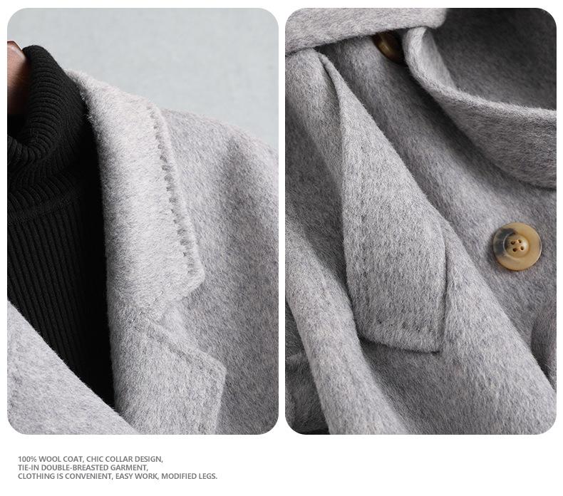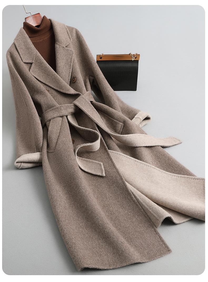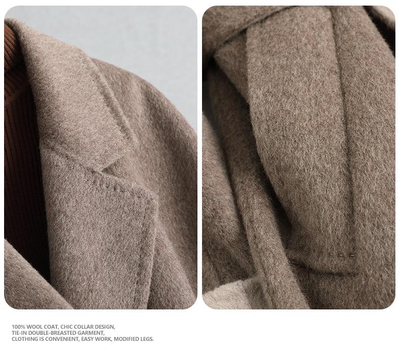 2025 Nuevo Abrigo de Lana Grueso de Doble Vista para Otoño e Invierno, Abrigo de Lana Largo de Doble Botonadura con Cordones de Alta Gama para Mujer