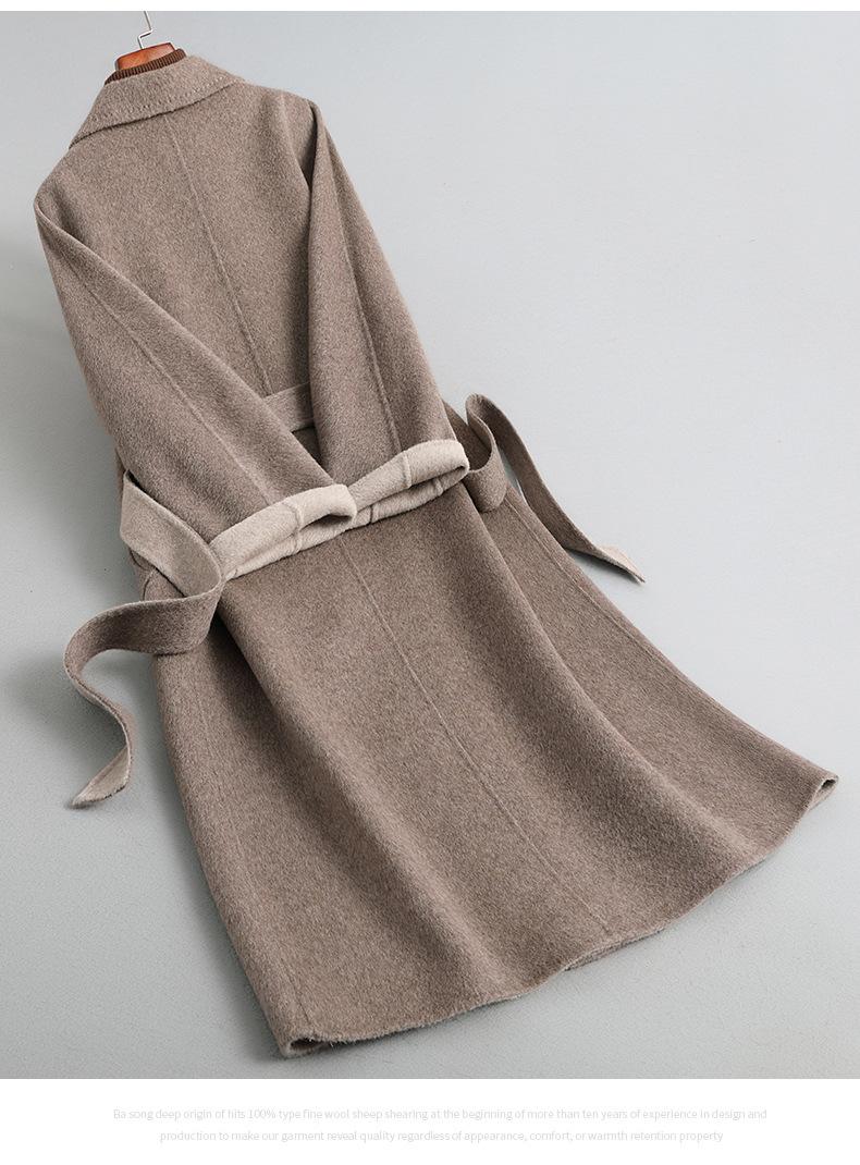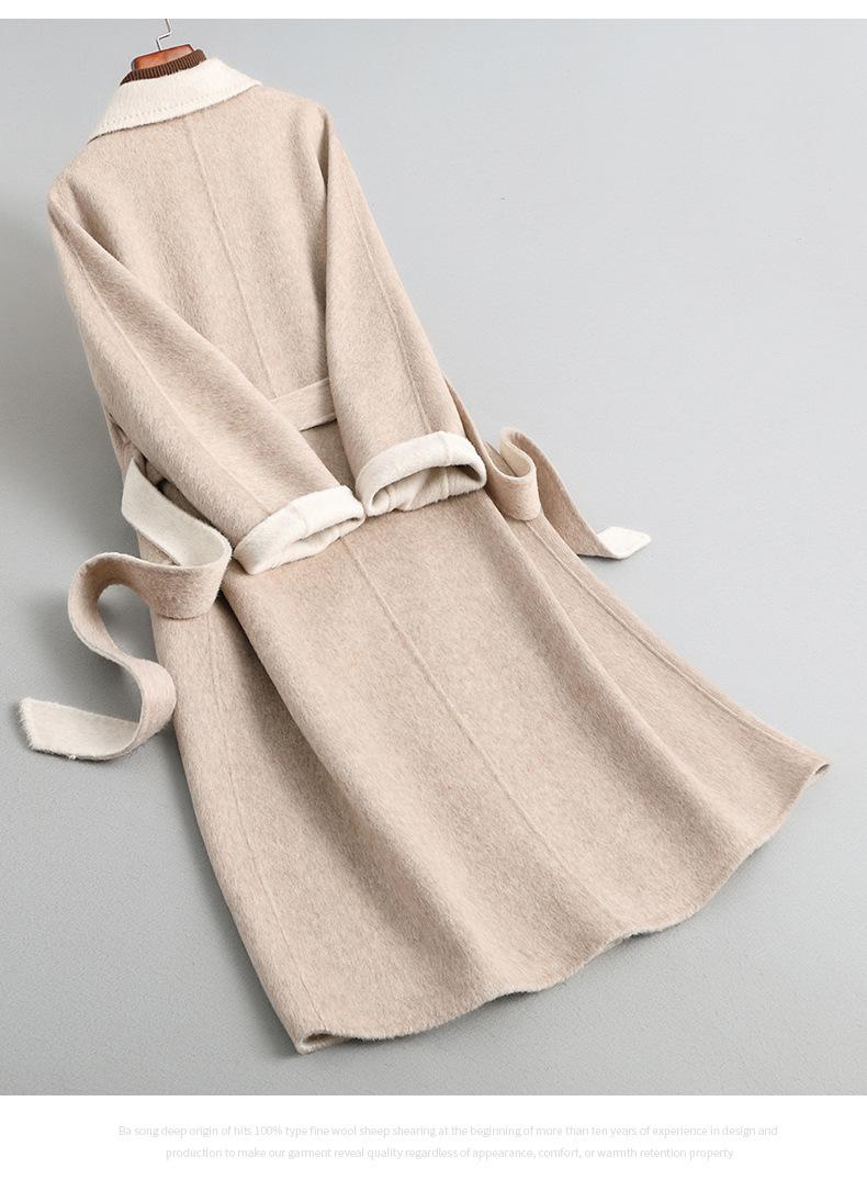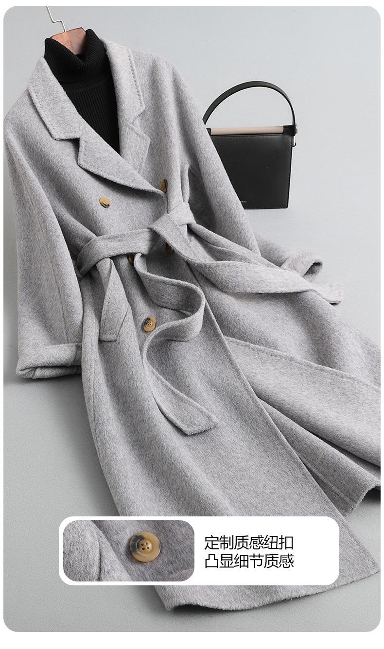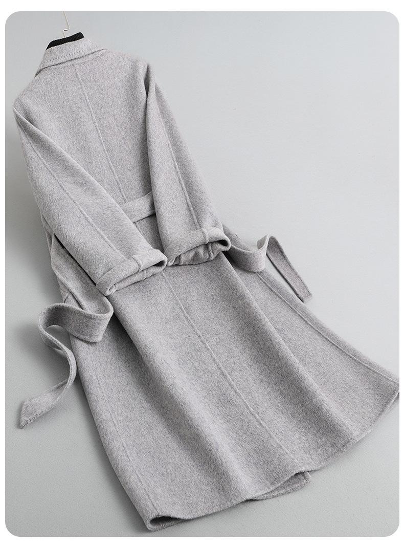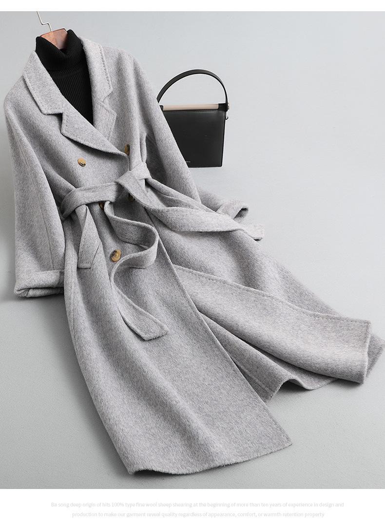 2025 Nuevo Abrigo de Lana Grueso de Doble Vista para Otoño e Invierno, Abrigo de Lana Largo de Doble Botonadura con Cordones de Alta Gama para Mujer