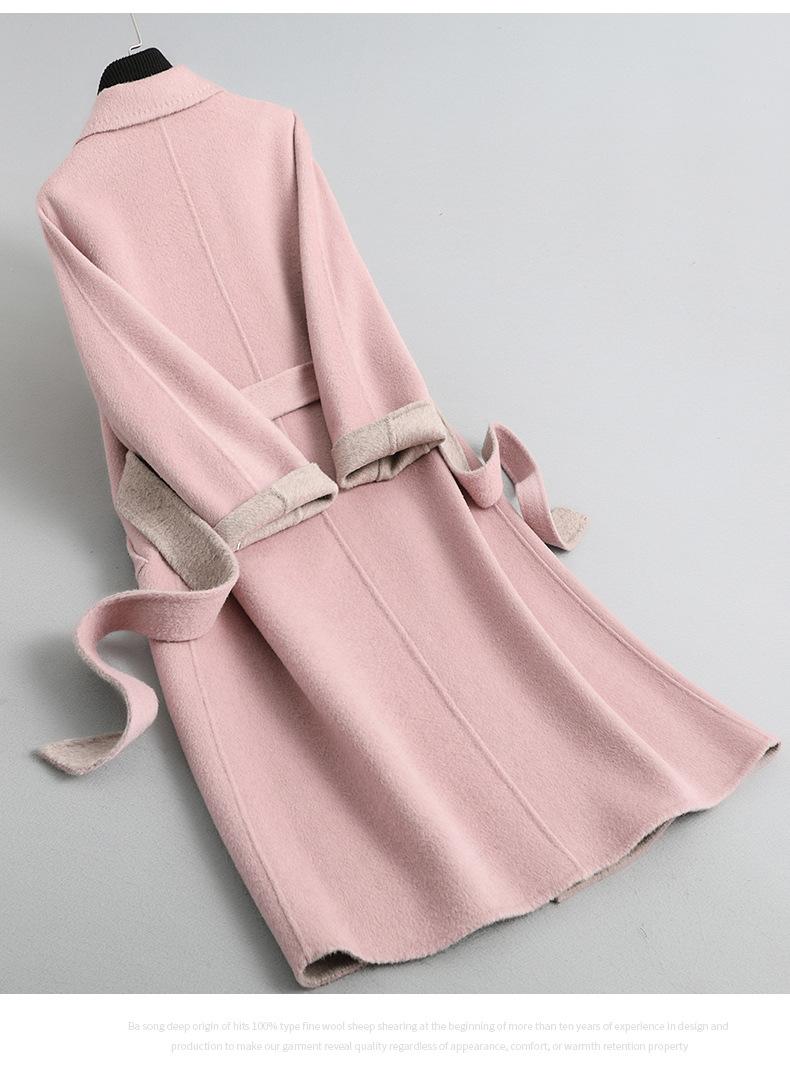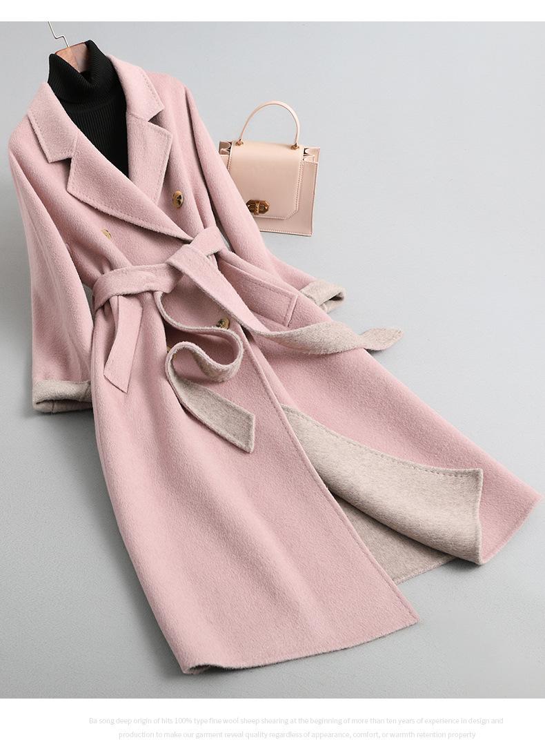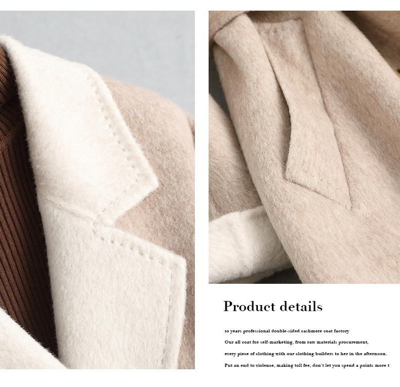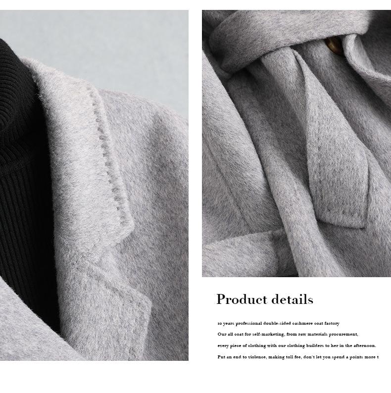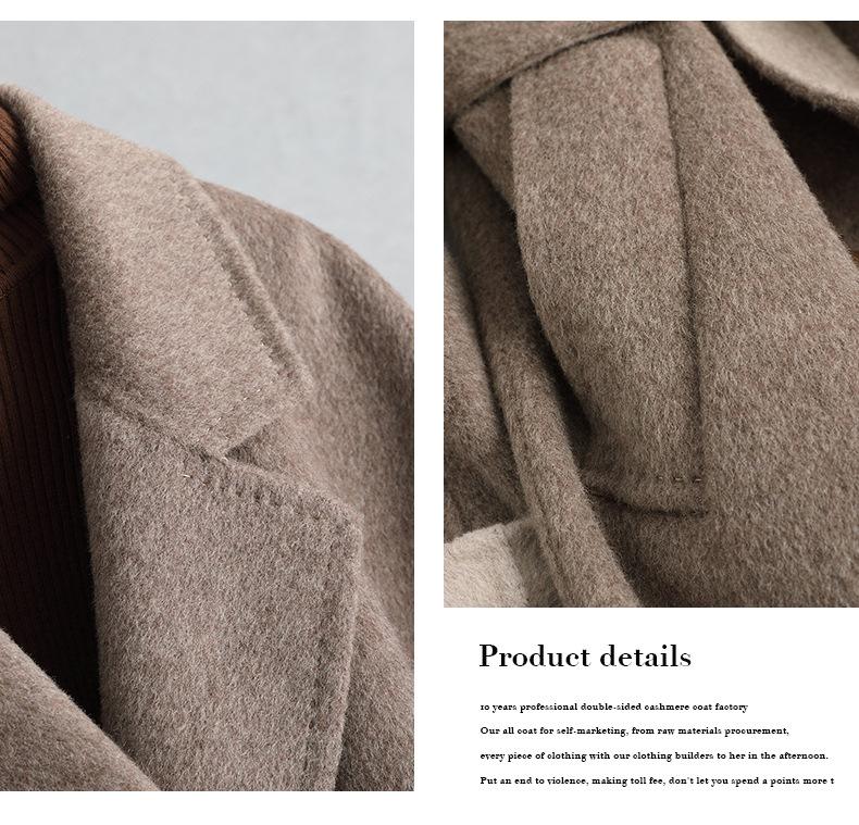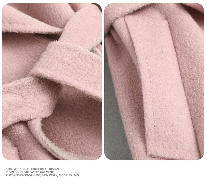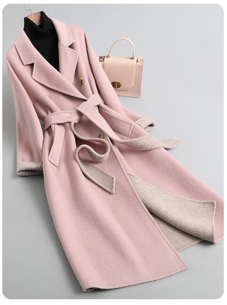 2025 Nuevo Abrigo de Lana Grueso de Doble Vista para Otoño e Invierno, Abrigo de Lana Largo de Doble Botonadura con Cordones de Alta Gama para Mujer