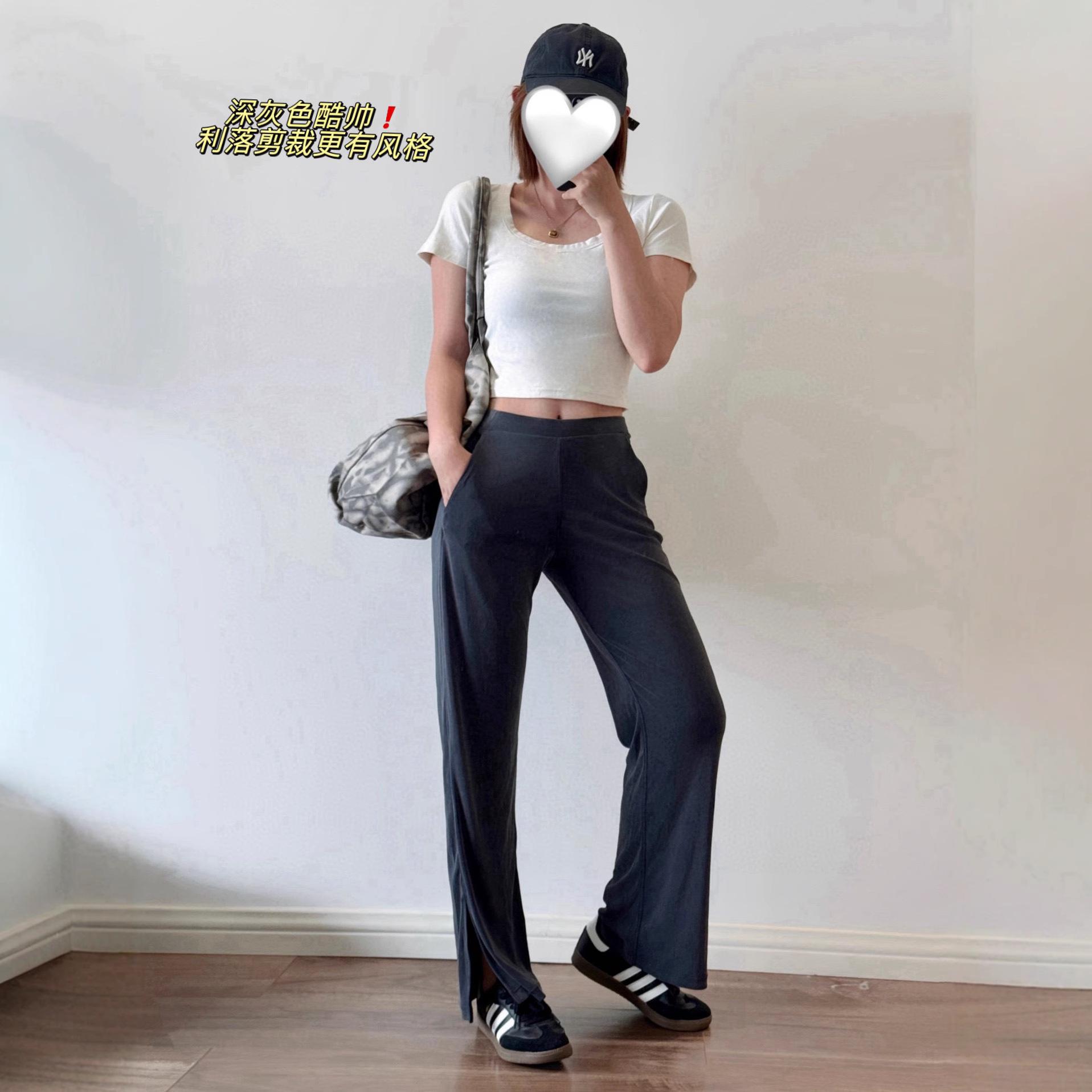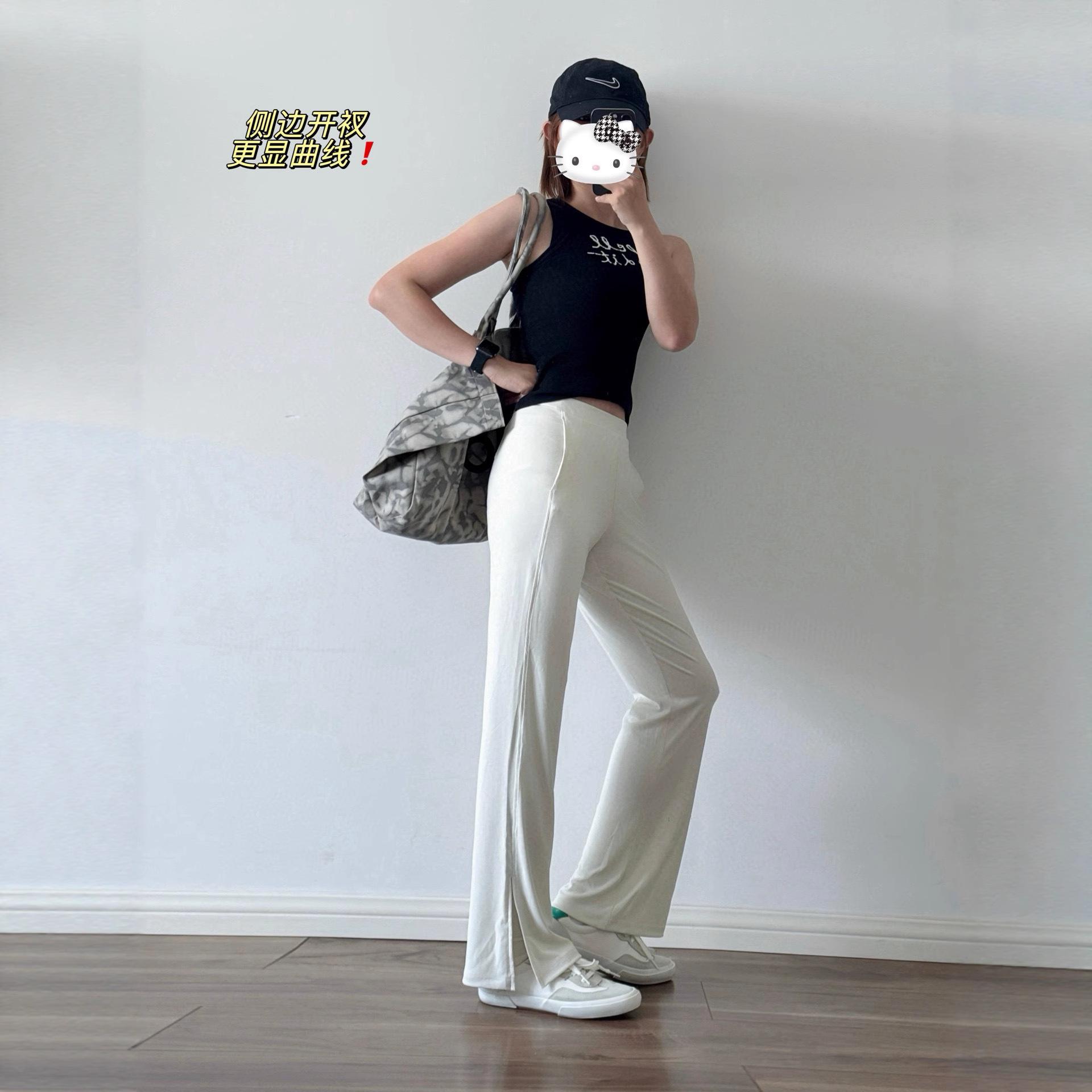 Pantalones de Diosa Estilo LULU Otoño 2025 Cuidadosamente Seleccionados Cintura Alta Elásticos Abertura Acampanados Versátiles Casuales