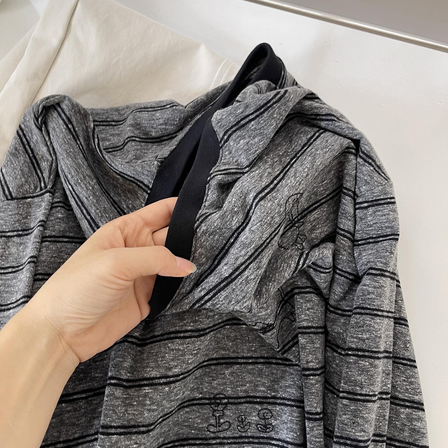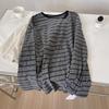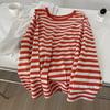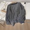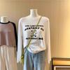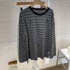 Camiseta de manga larga a rayas con estampado retro de bloques de color estilo coreano que reduce la edad, para mujer, holgada, casual, adelgazante, interior, básica, otoño