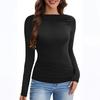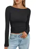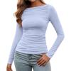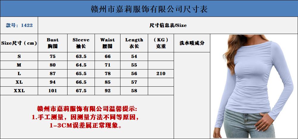 2025 Europeo y Americano transfronterizo nuevo para mujer elástico cuello barco plisado casual otoño manga larga prenda exterior top ajustado