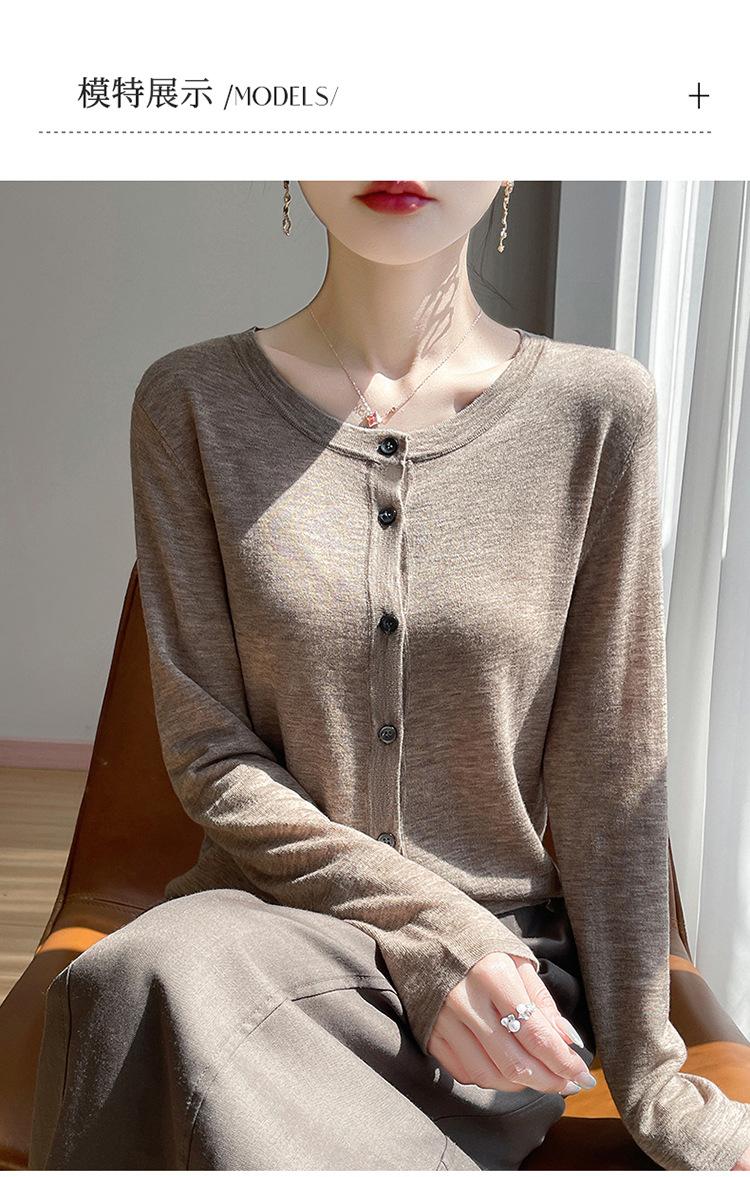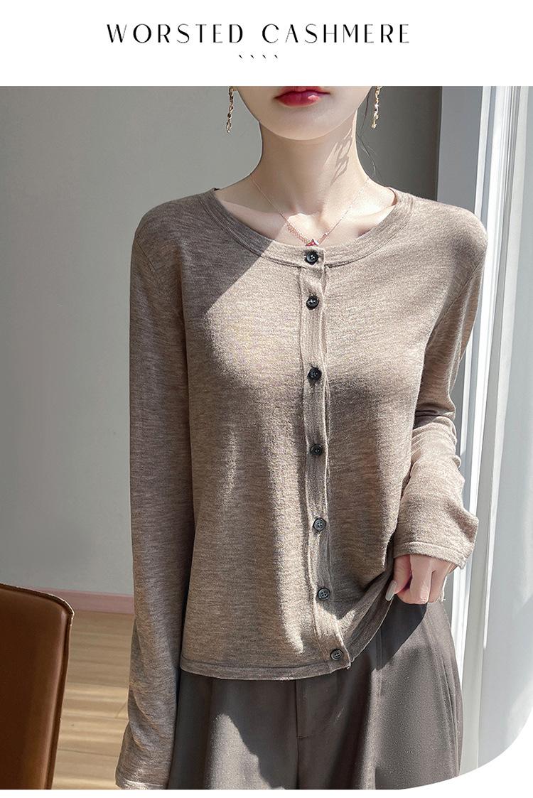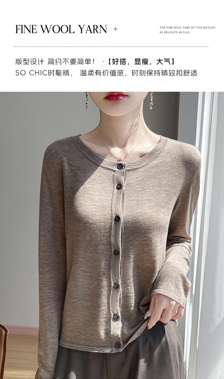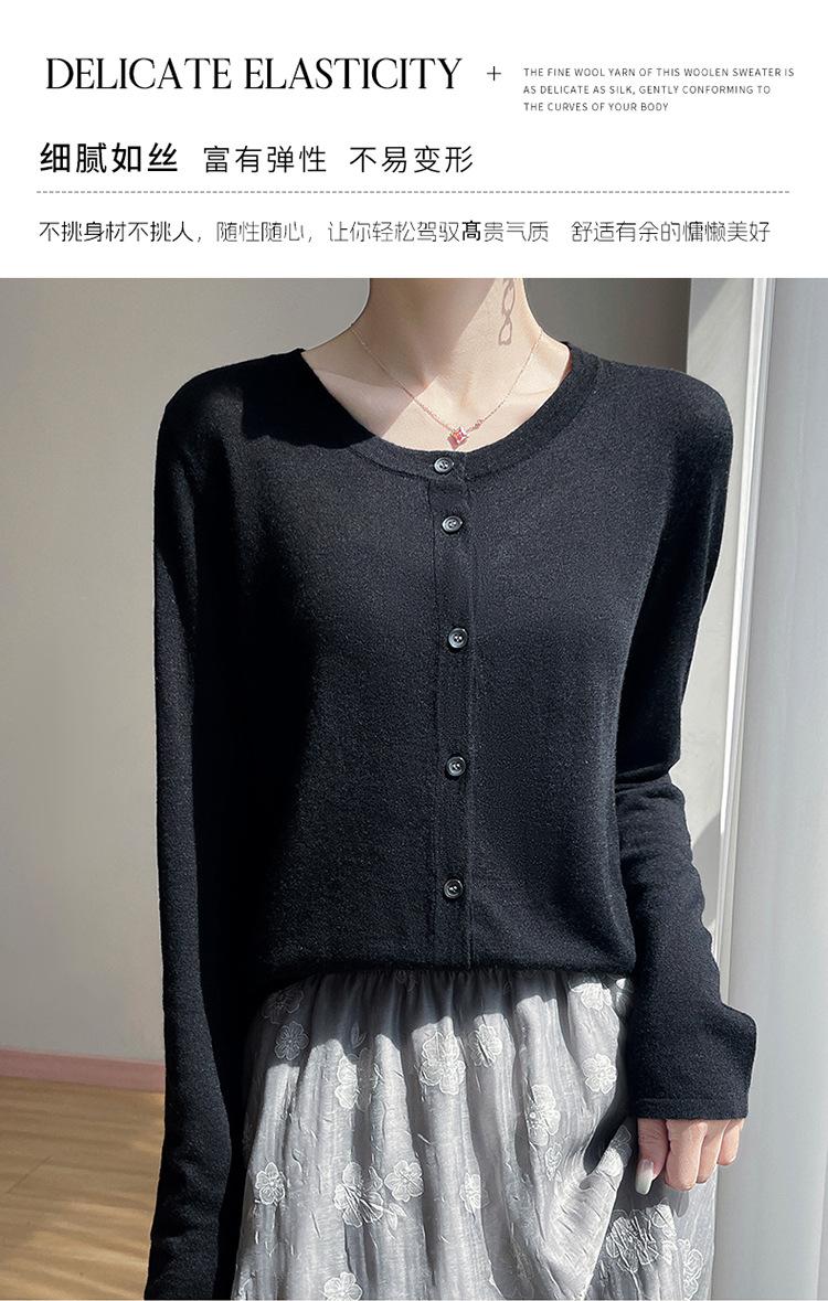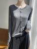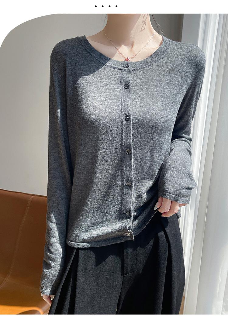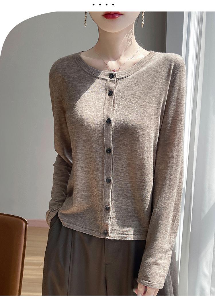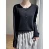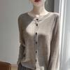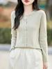 Cárdigan de punto de manga larga para mujer de lana soluble en agua, cuello redondo, color sólido, holgado y versátil, para principios de otoño de 2025.