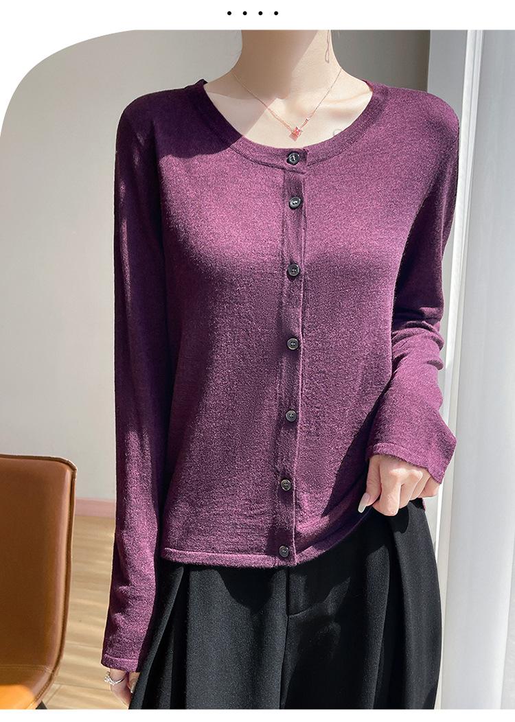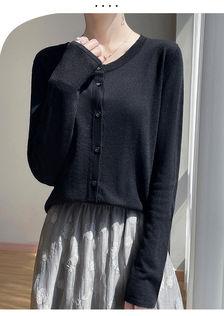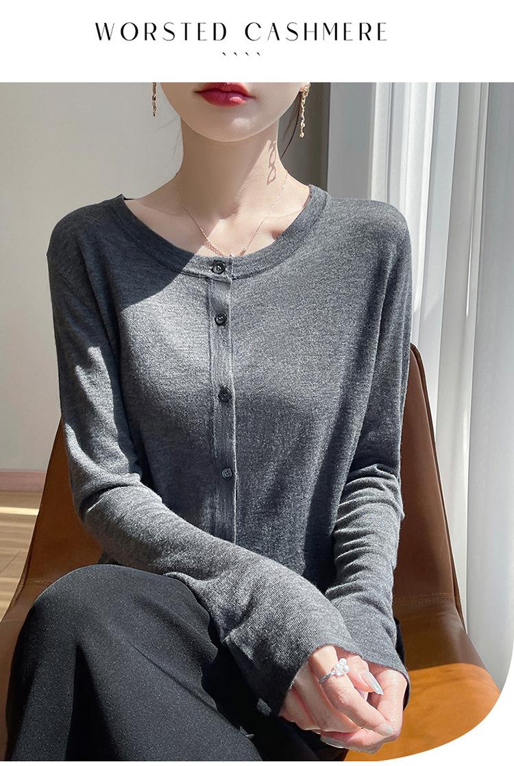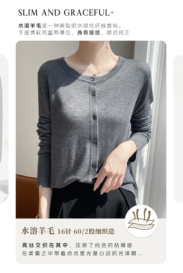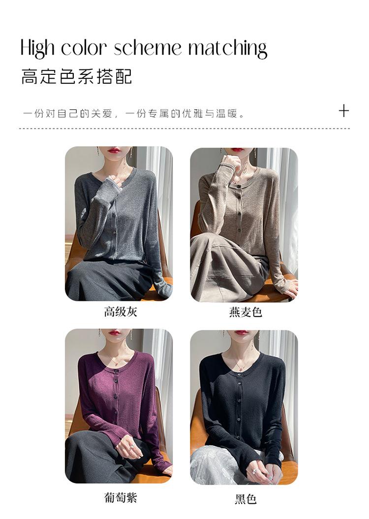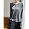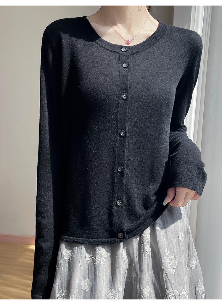 Cárdigan de punto de manga larga para mujer de lana soluble en agua, cuello redondo, color sólido, holgado y versátil, para principios de otoño de 2025.