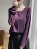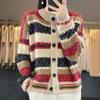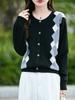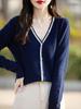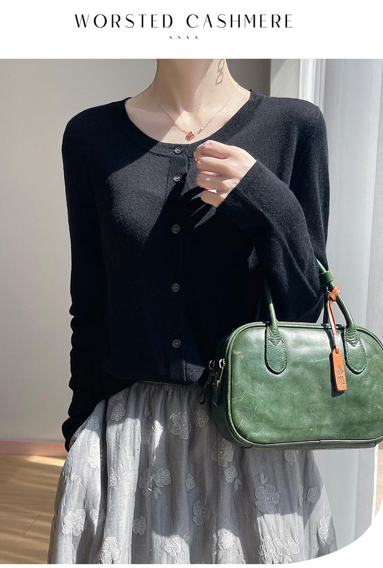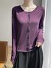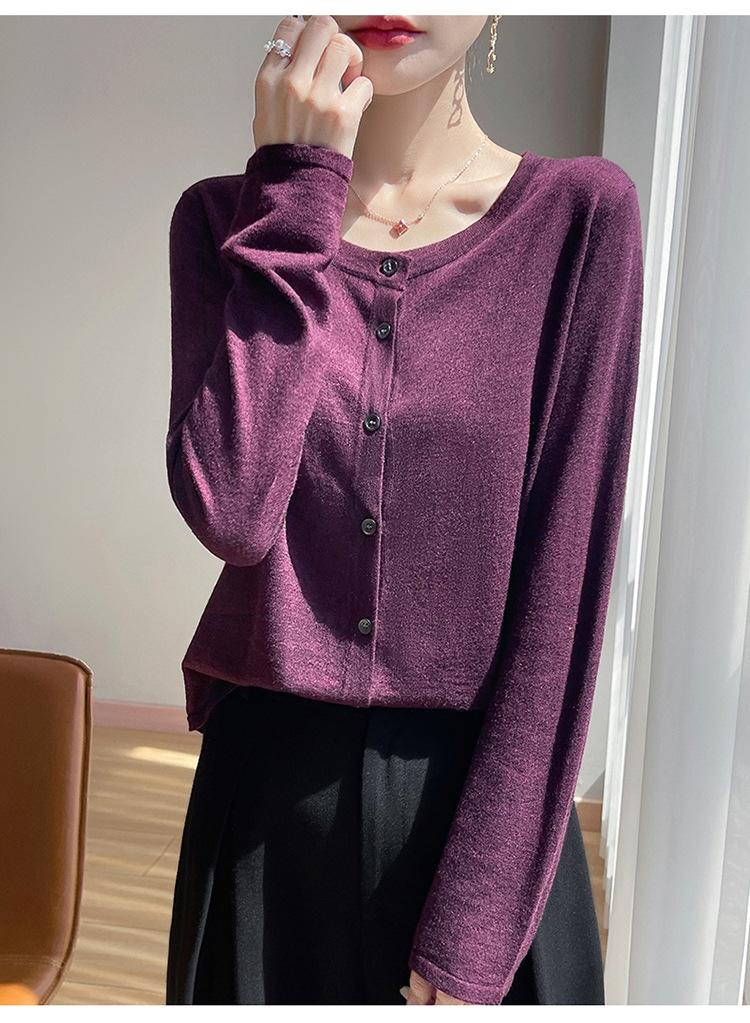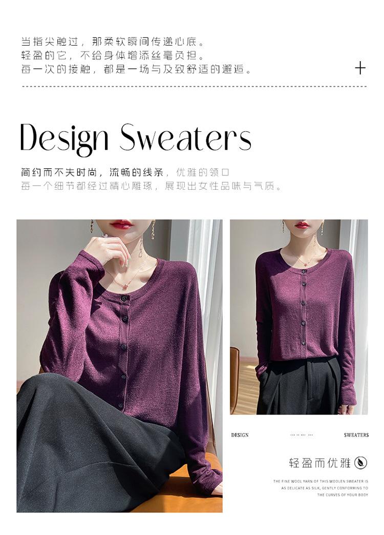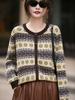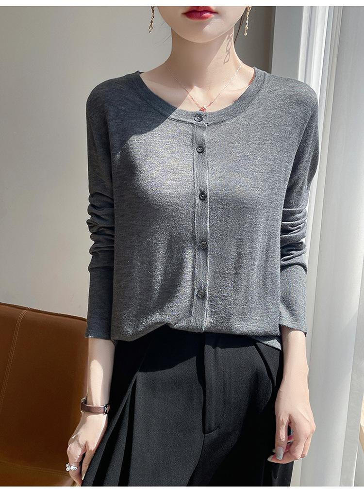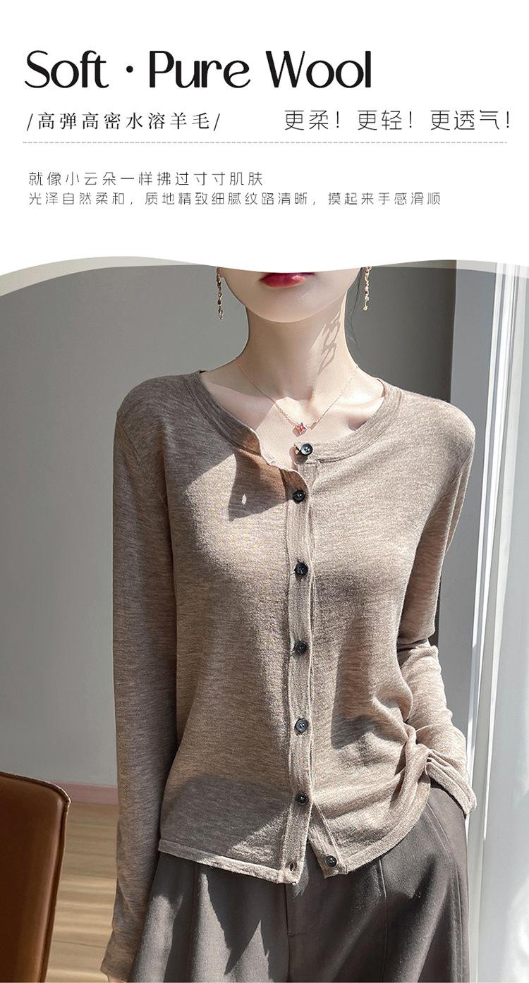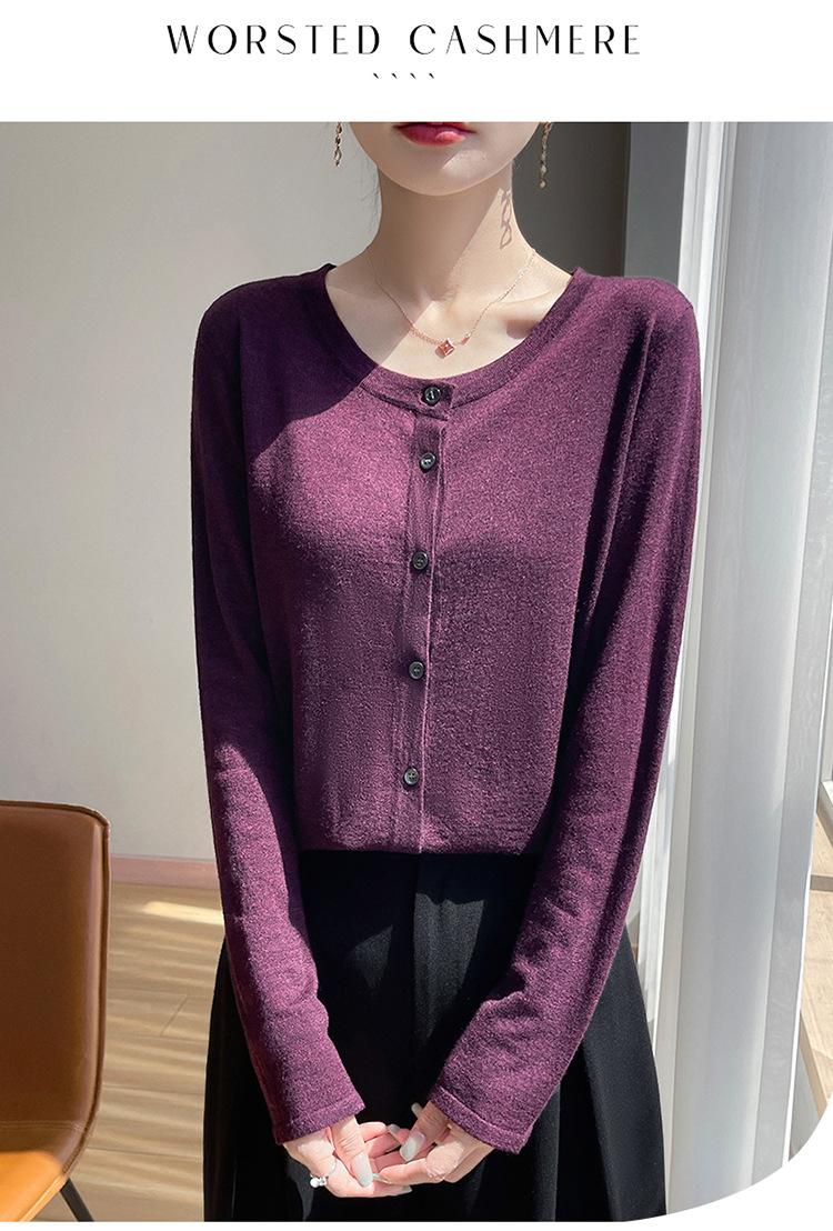 Cárdigan de punto de manga larga para mujer de lana soluble en agua, cuello redondo, color sólido, holgado y versátil, para principios de otoño de 2025.