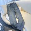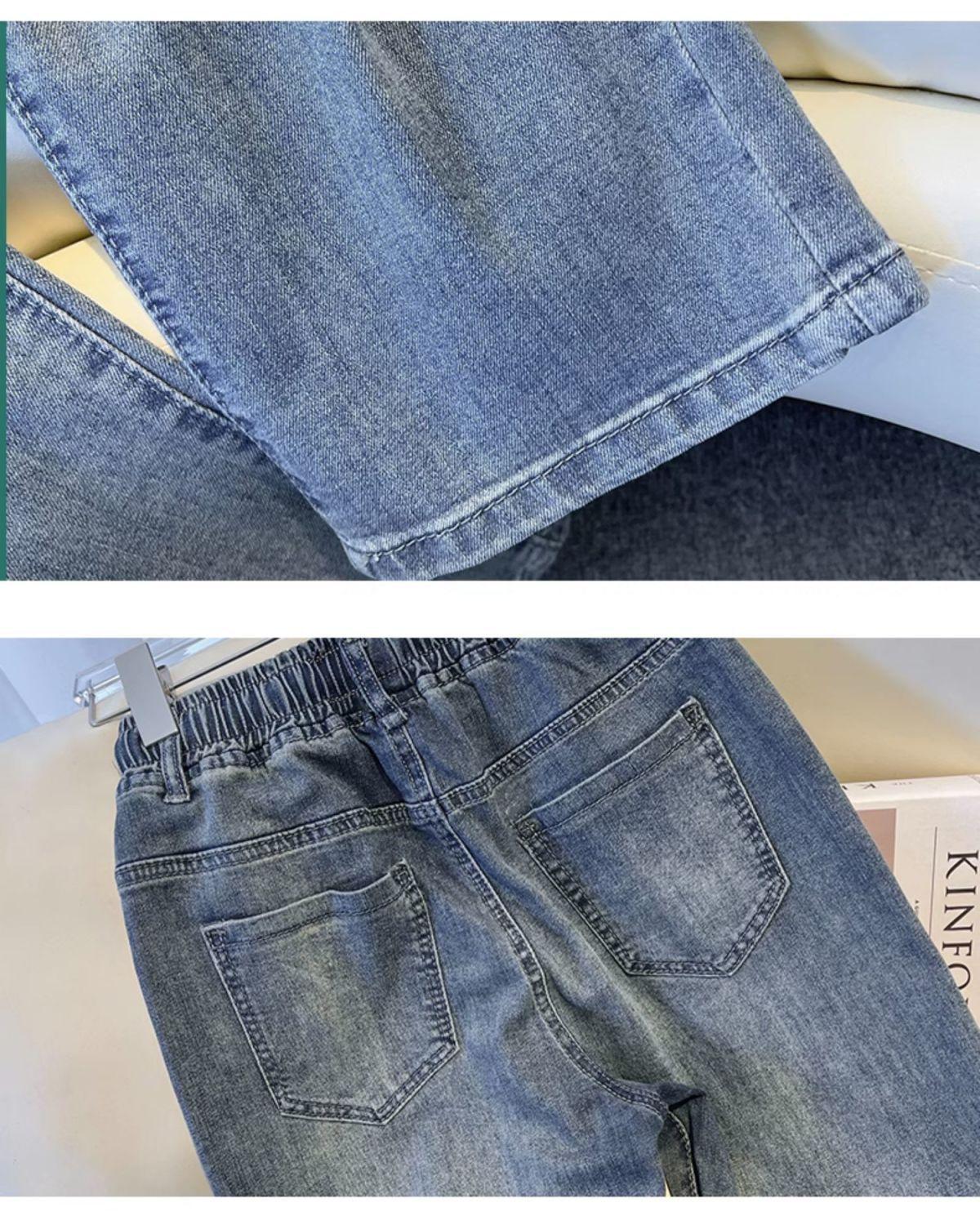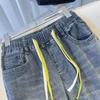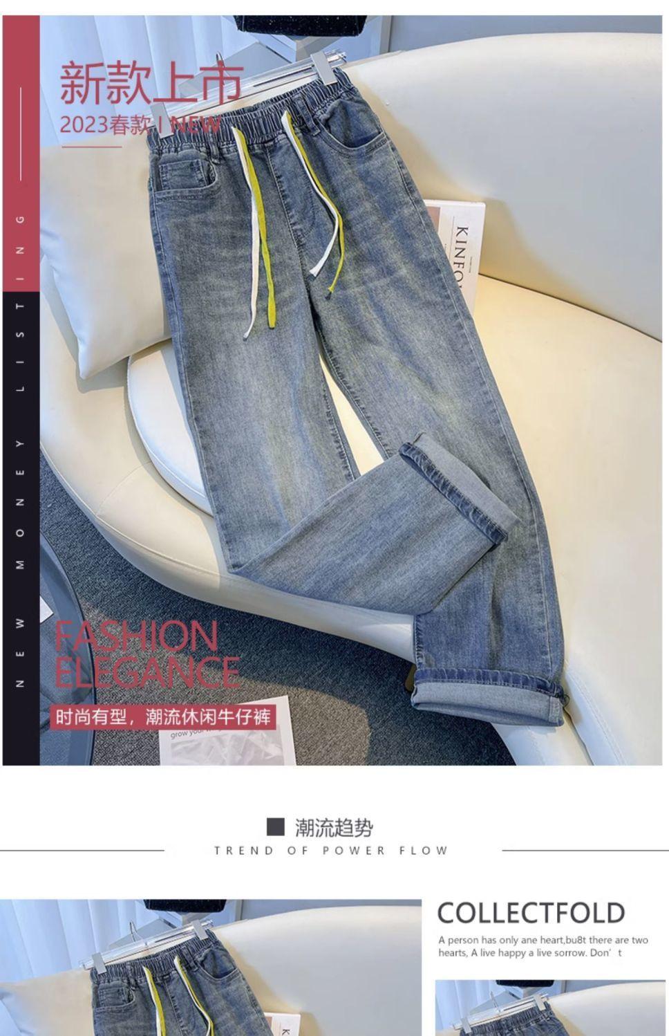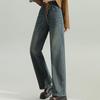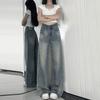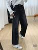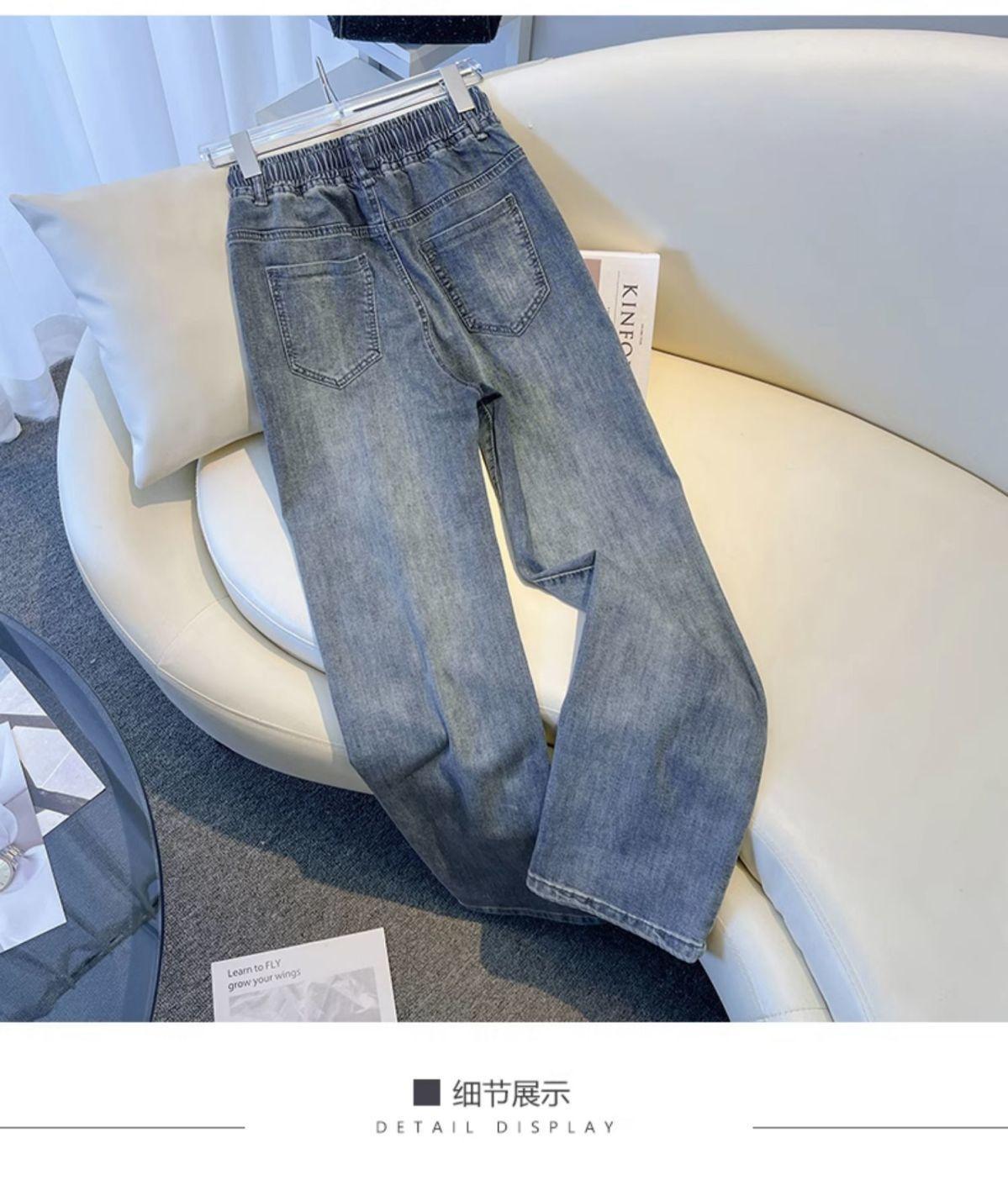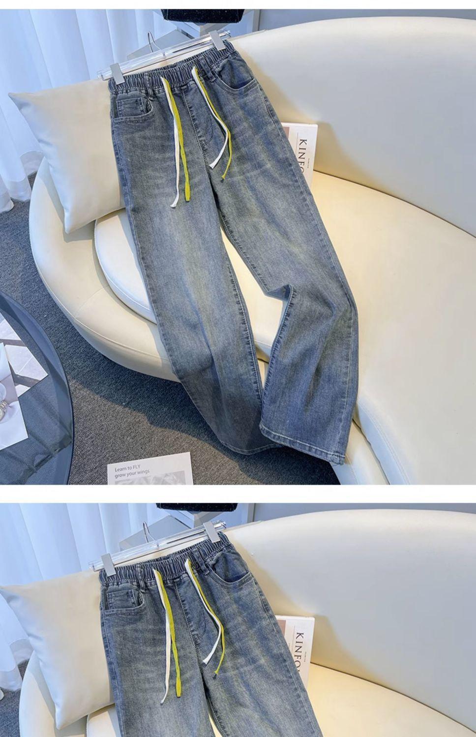 Jeans Retro con Cordón Elástico en la Cintura y Pierna Ancha para Mujer Cintura Alta Otoño 2025 Nuevo Pantalón Recto Holgado Drapeado