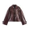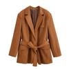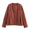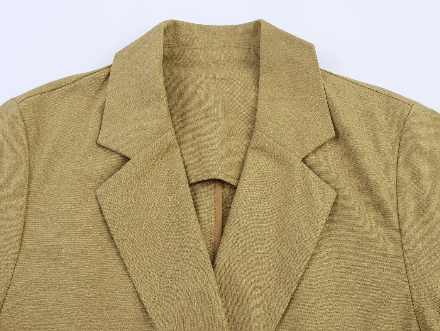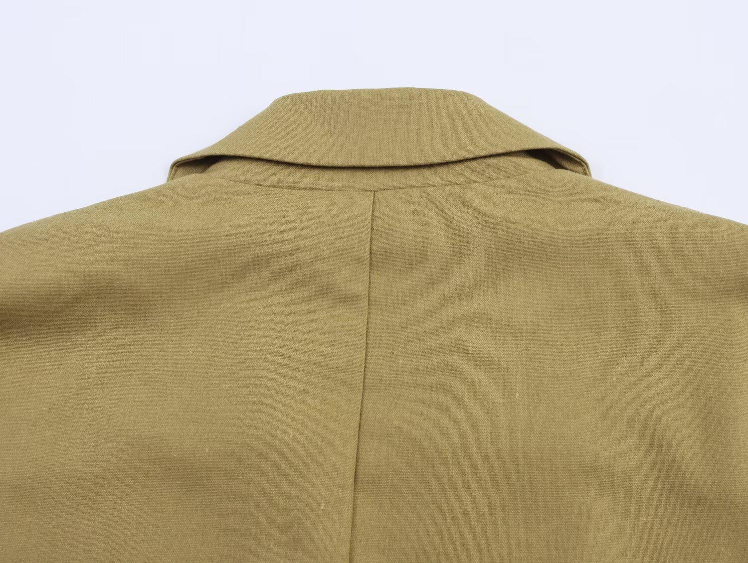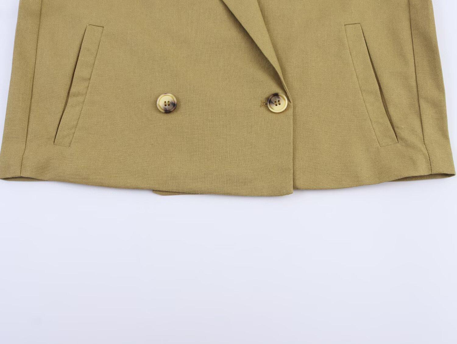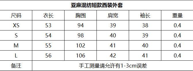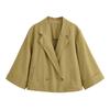 Moda Femenina Europea y Americana Transfronteriza AliExpress Chaqueta de Traje Corta de Moda Casual Mezcla de Lino Doble Botonadura