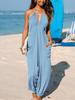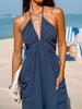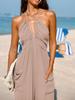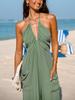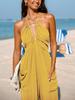 Europeo y Americano Transfronterizo para Mujer Profundo V Halter Sin Mangas Fruncido Bolsillo Espalda con Cordones Pierna Ancha Jogger Mono Largo