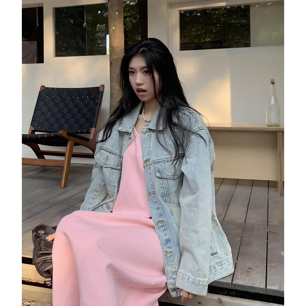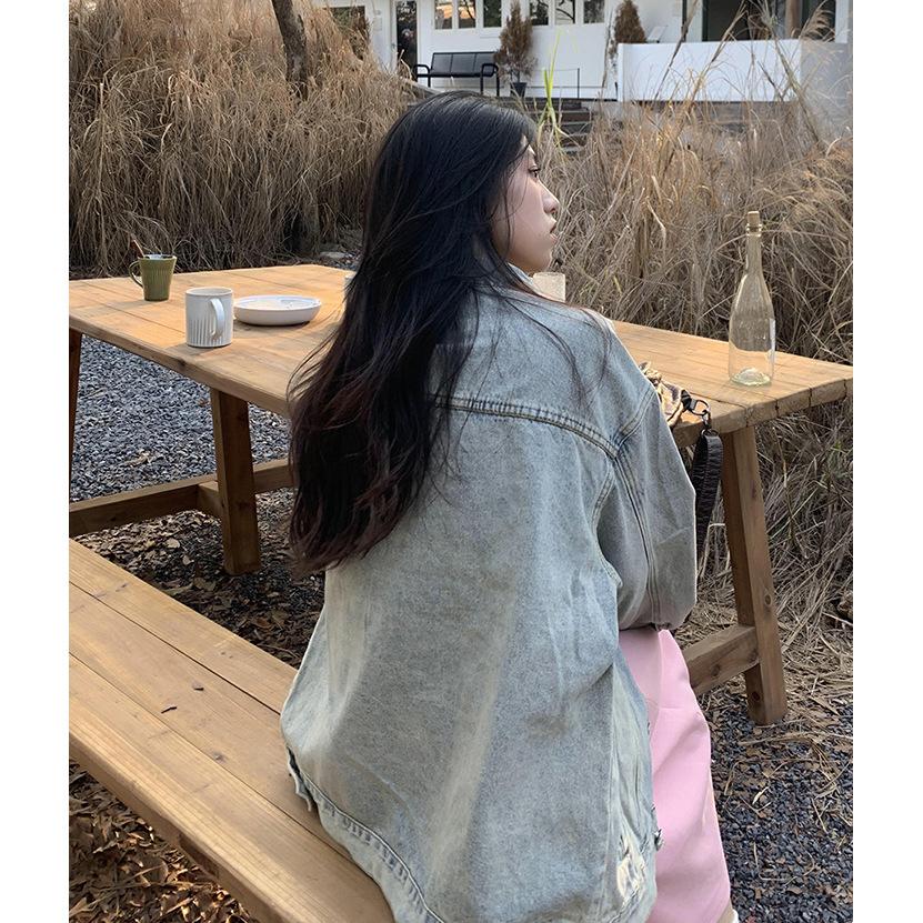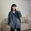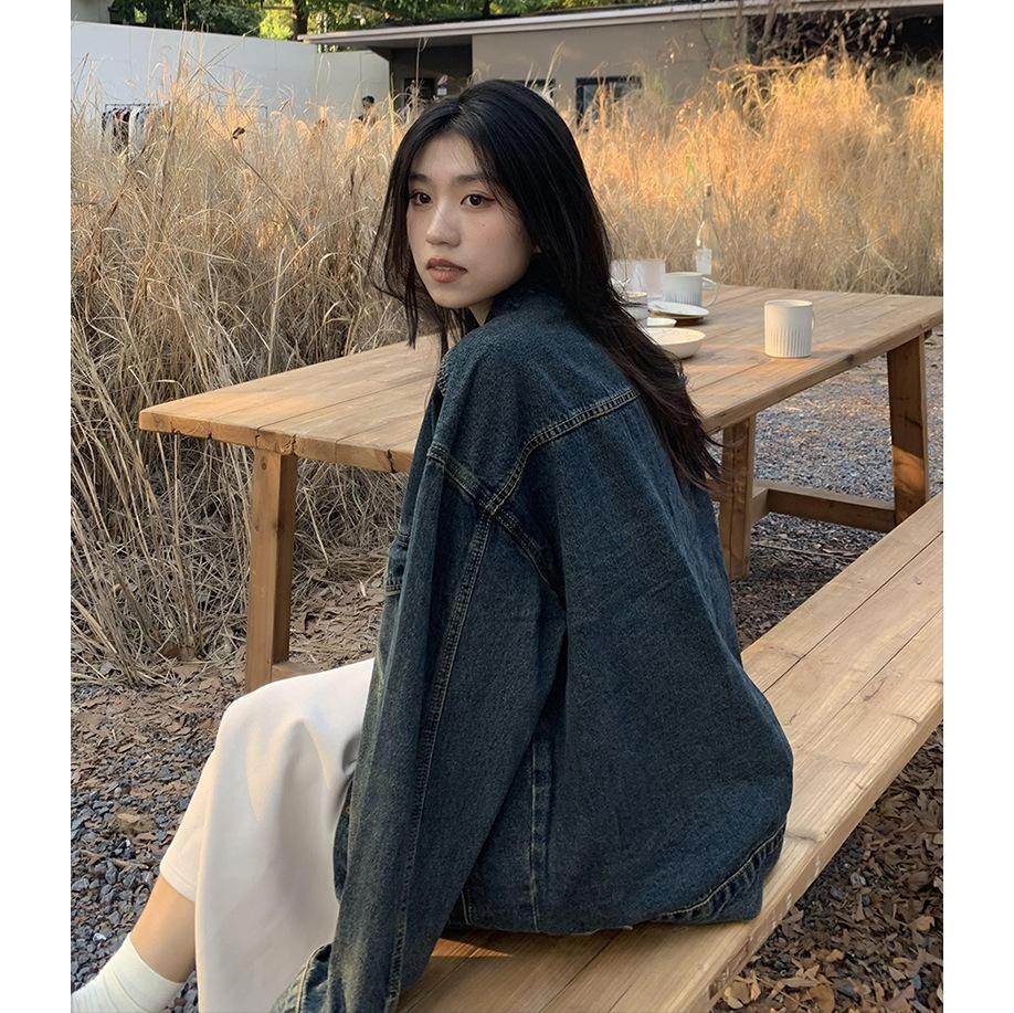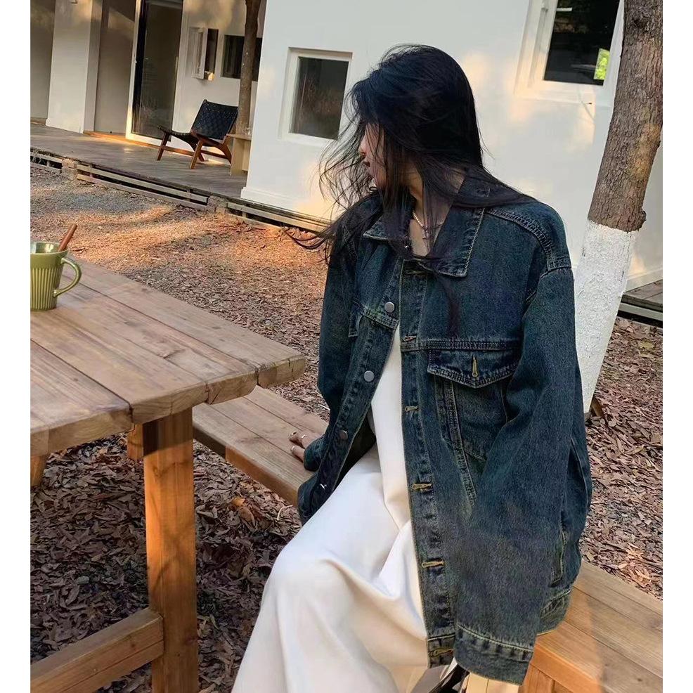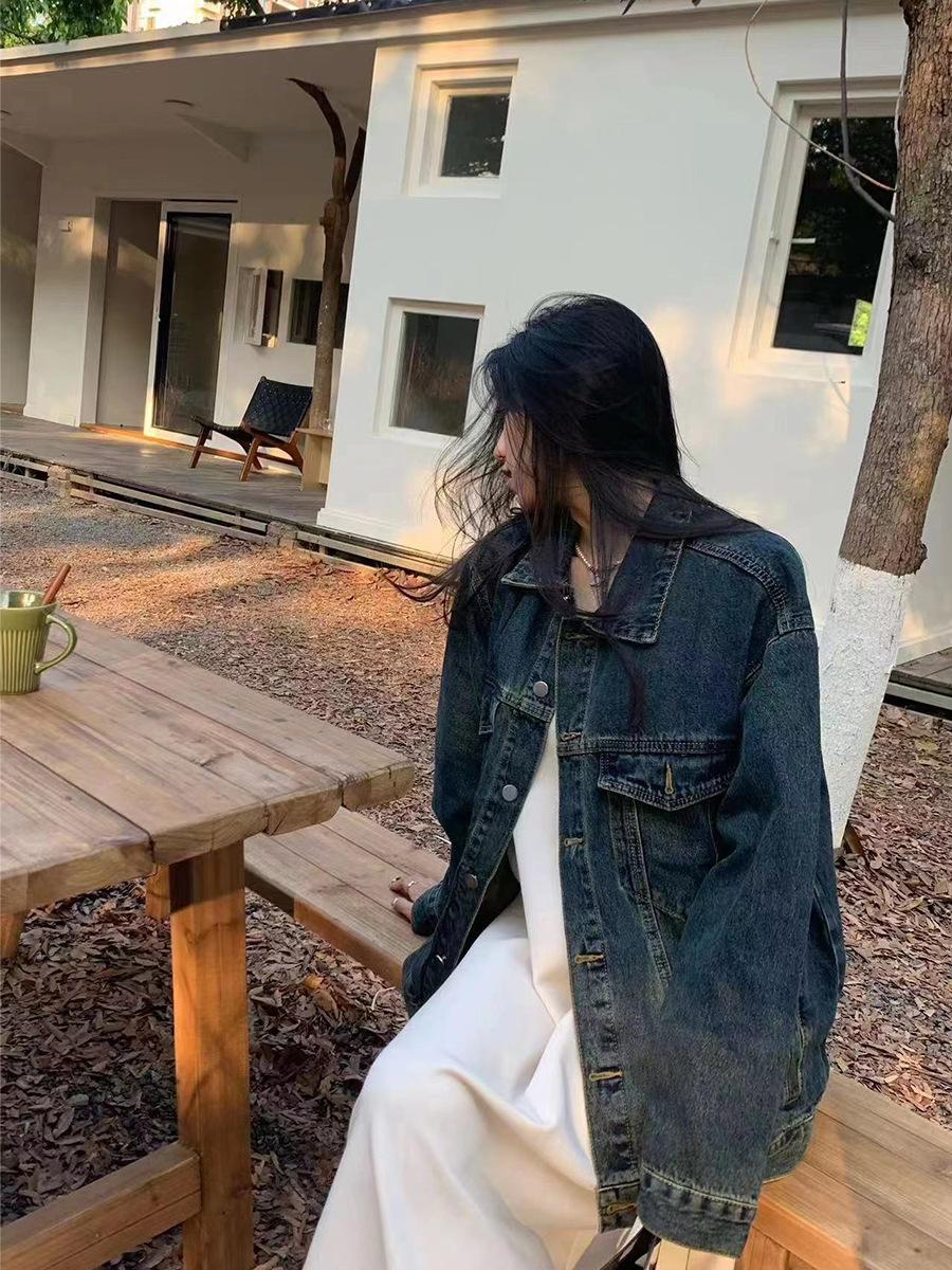 Abrigo de mezclilla retro para mujer primavera y otoño estilo Hong Kong pequeño suelto lavado desgastado estudiante casual combinable chaqueta de ropa de trabajo