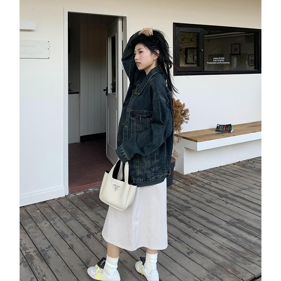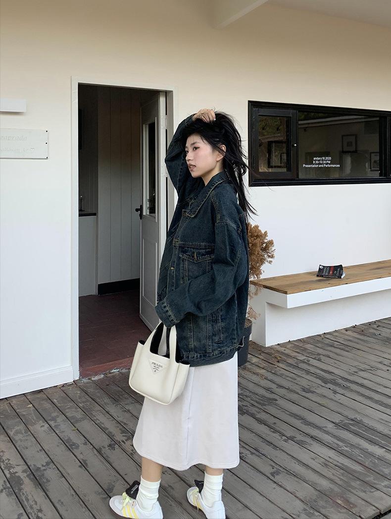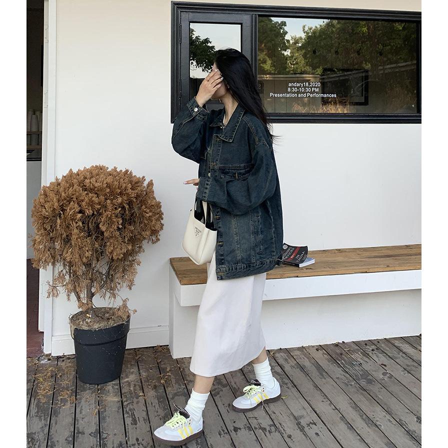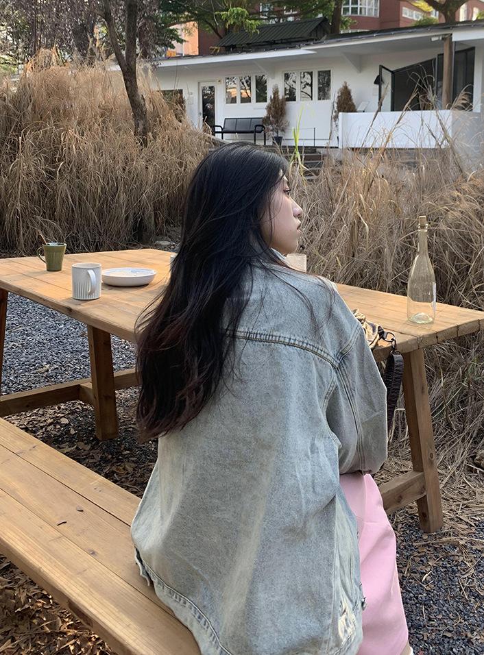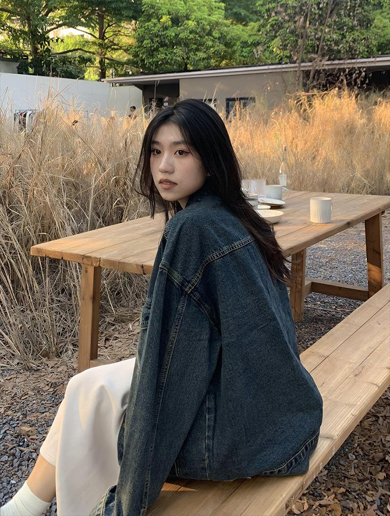 Abrigo de mezclilla retro para mujer primavera y otoño estilo Hong Kong pequeño suelto lavado desgastado estudiante casual combinable chaqueta de ropa de trabajo
