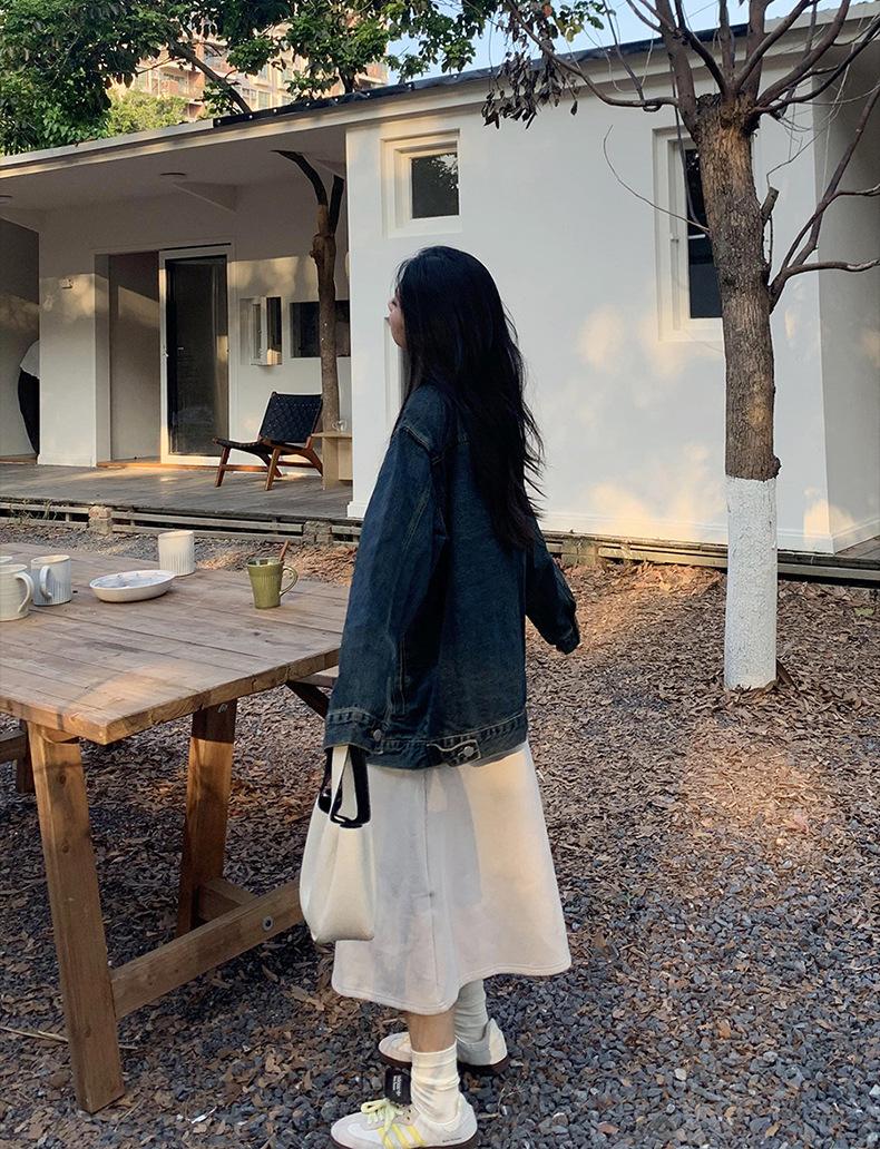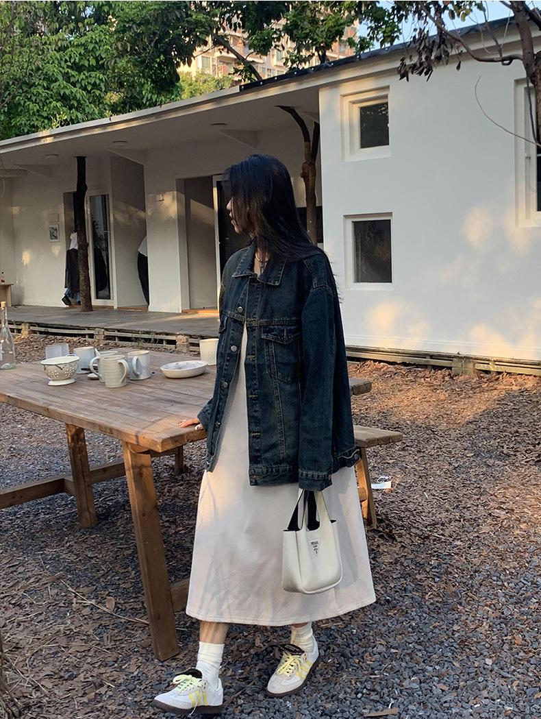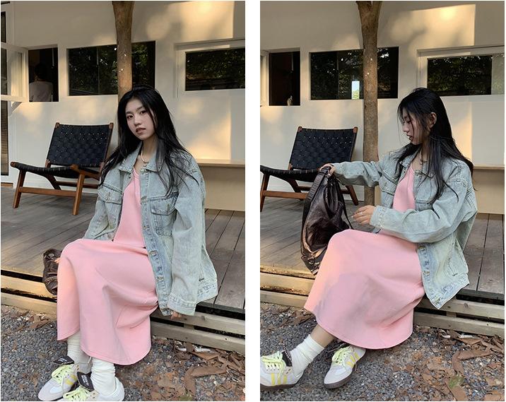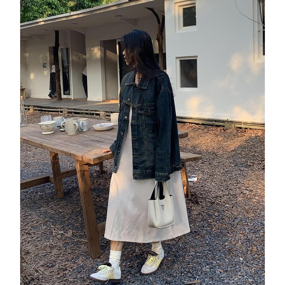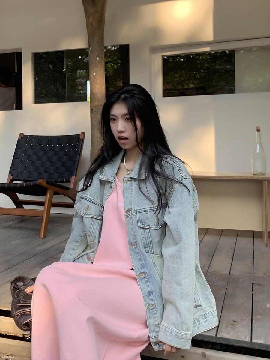 Abrigo de mezclilla retro para mujer primavera y otoño estilo Hong Kong pequeño suelto lavado desgastado estudiante casual combinable chaqueta de ropa de trabajo