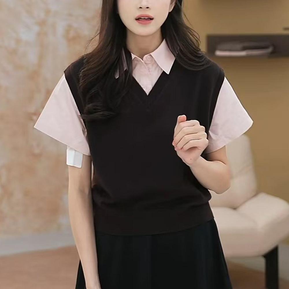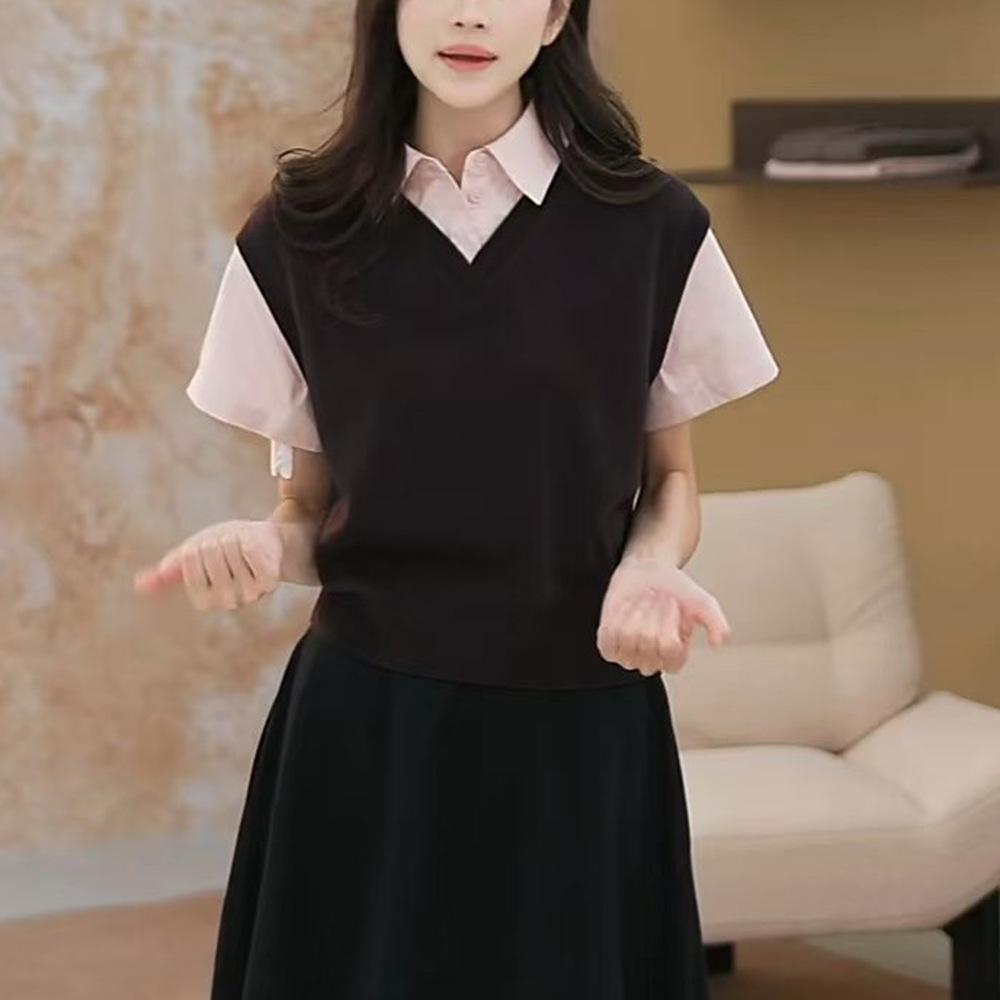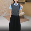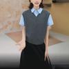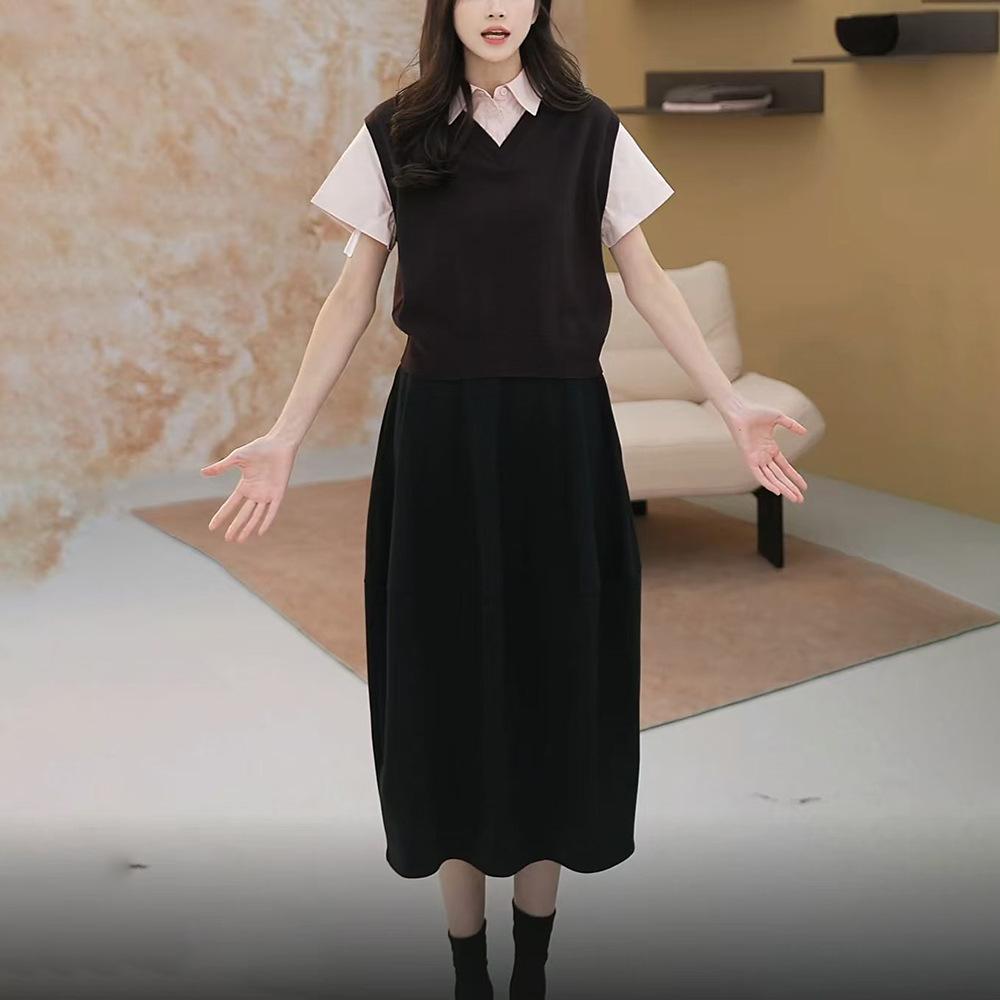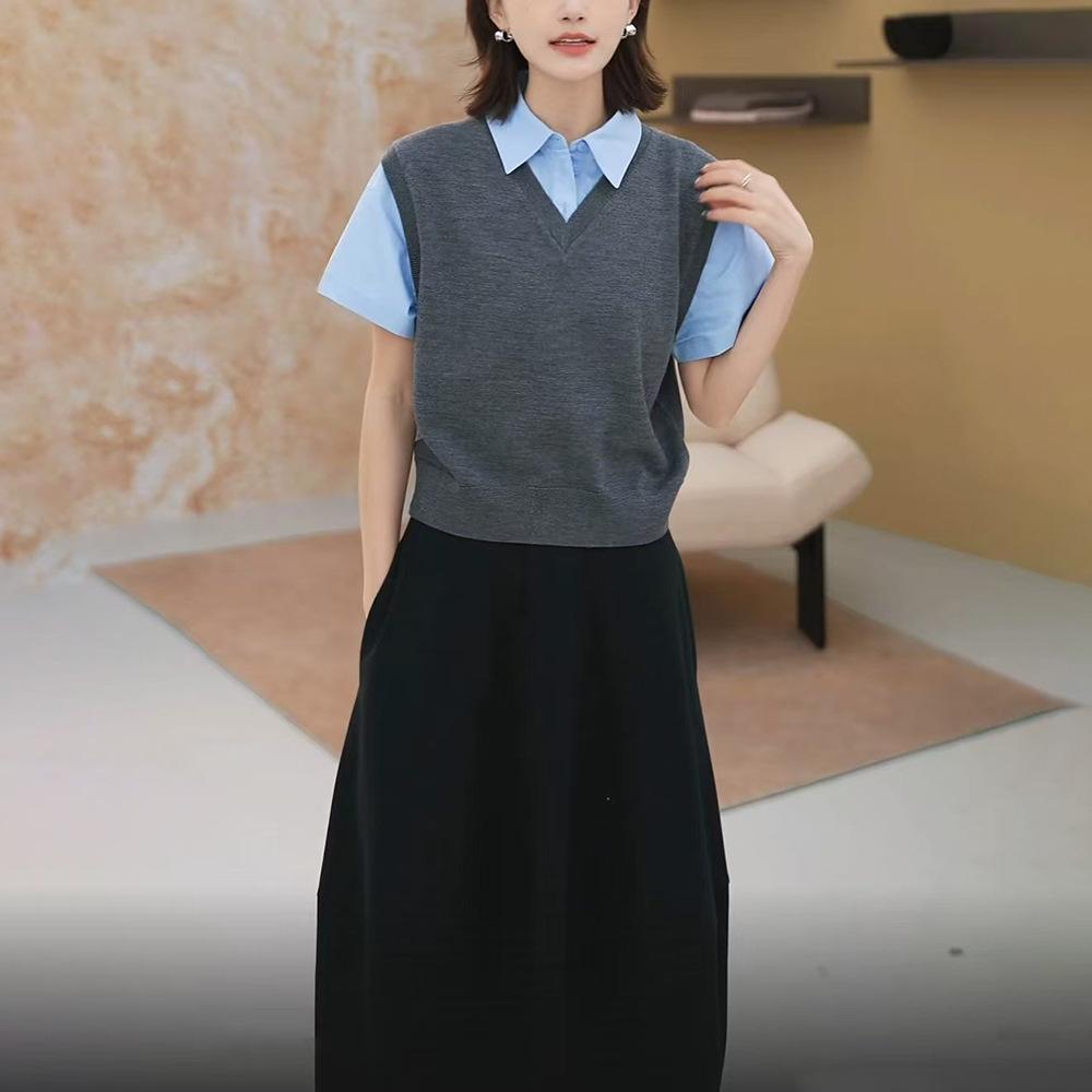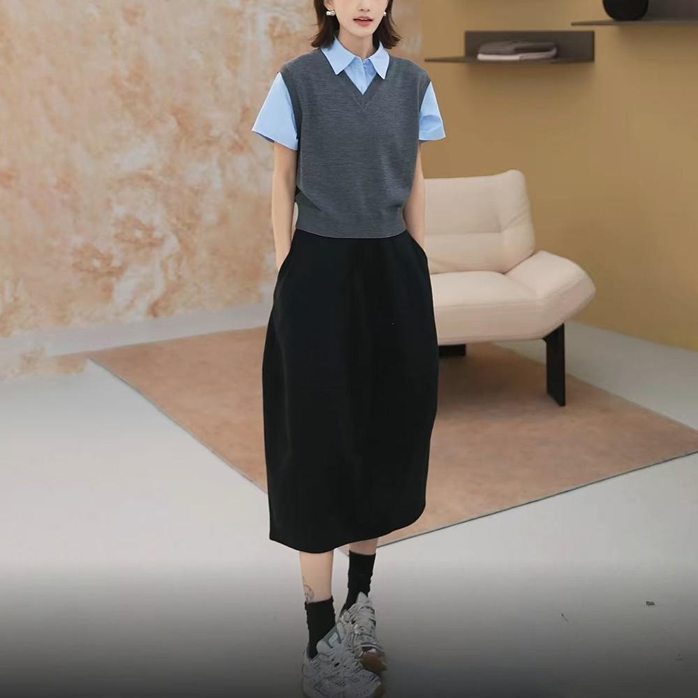 Nuevo Otoño 2025 Nicho Color Sólido Cuello en V Suelto Sin Mangas Top de Punto Cintura Elástica Casual Falda Larga Conjunto de Dos Piezas