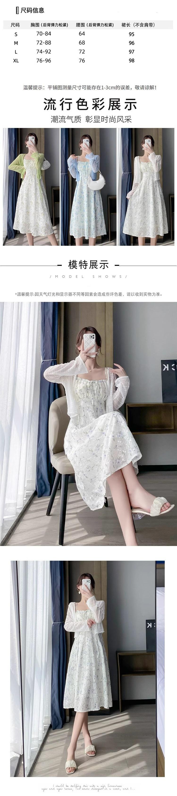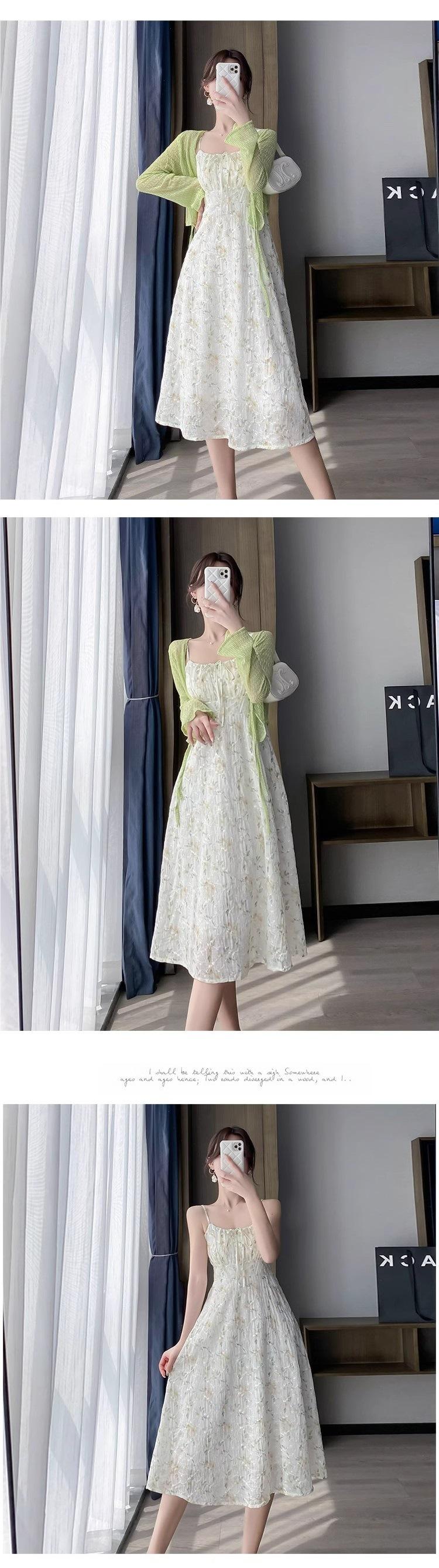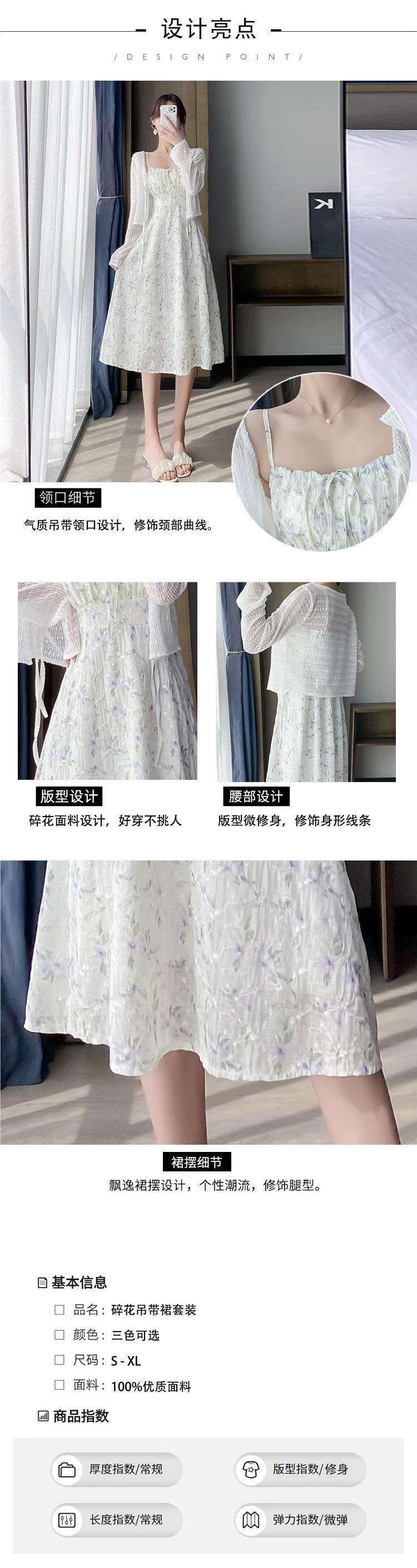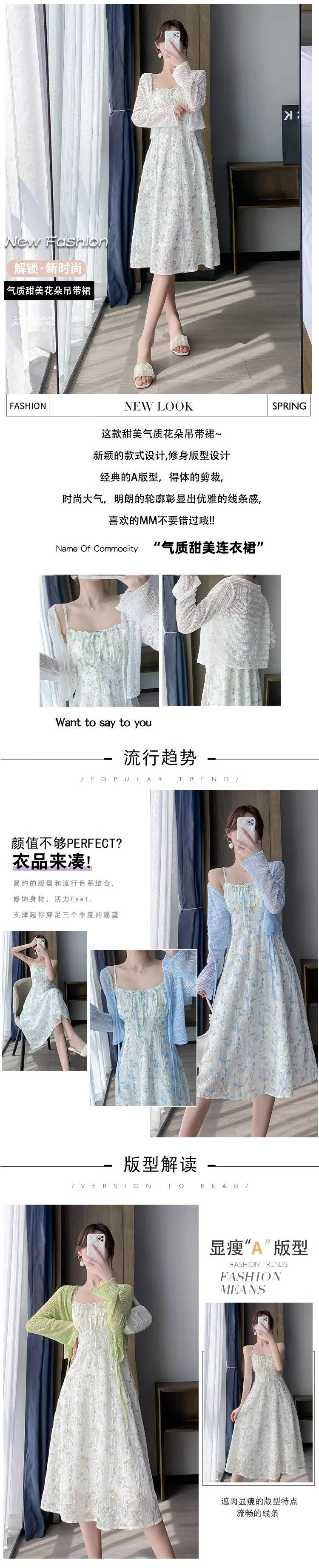 Vestido de Tirantes Espagueti con Estampado Floral para Mujer Verano Francés Petite Maxi Vestido Vestido de Vacaciones de Playa Cárdigan Conjunto de Dos Piezas Vestido
