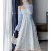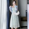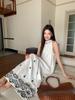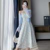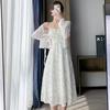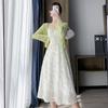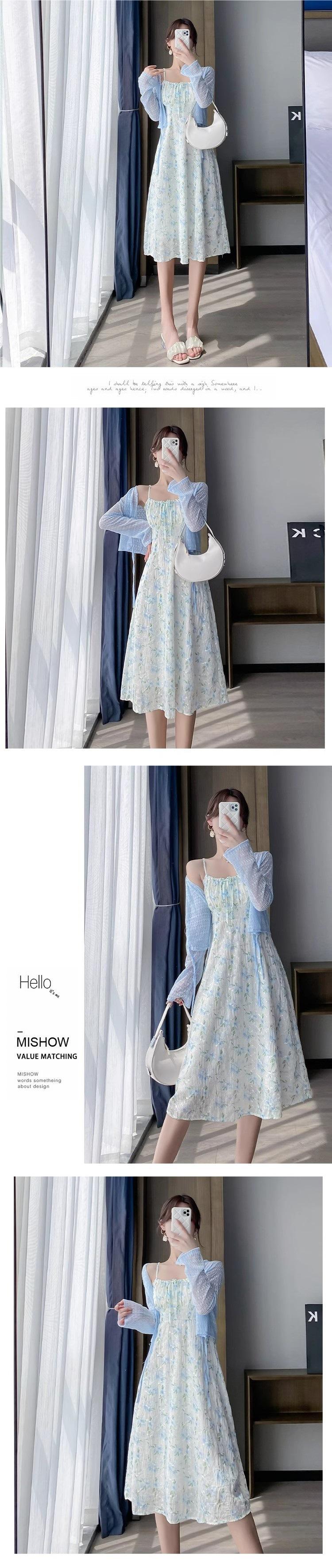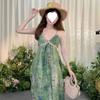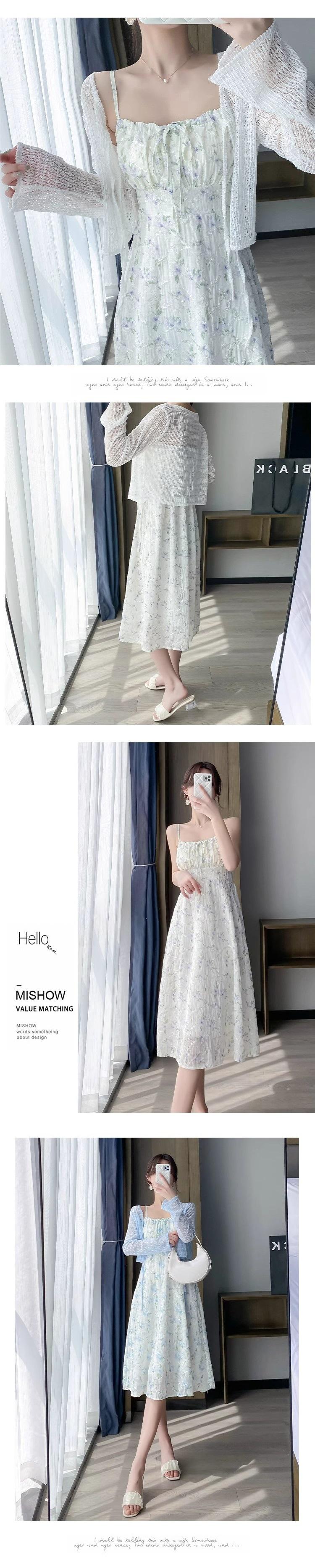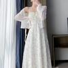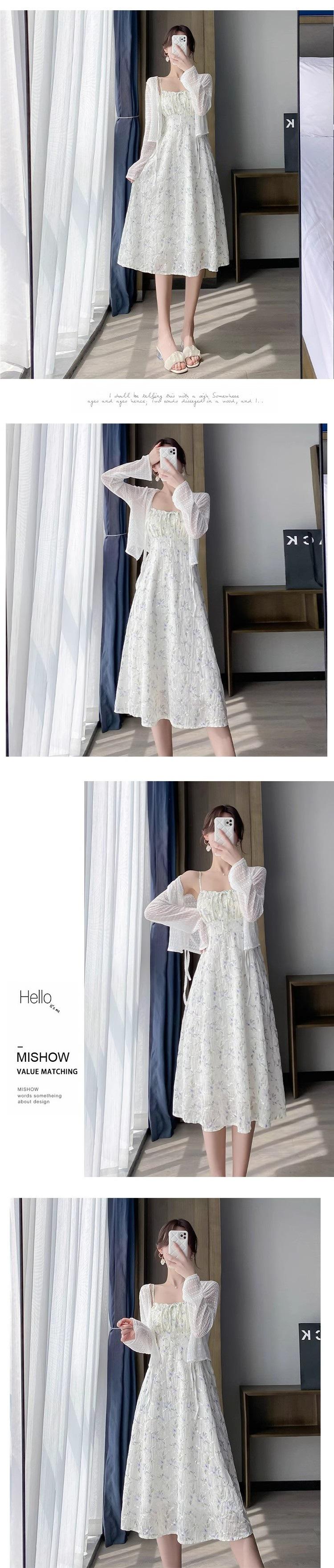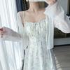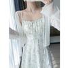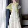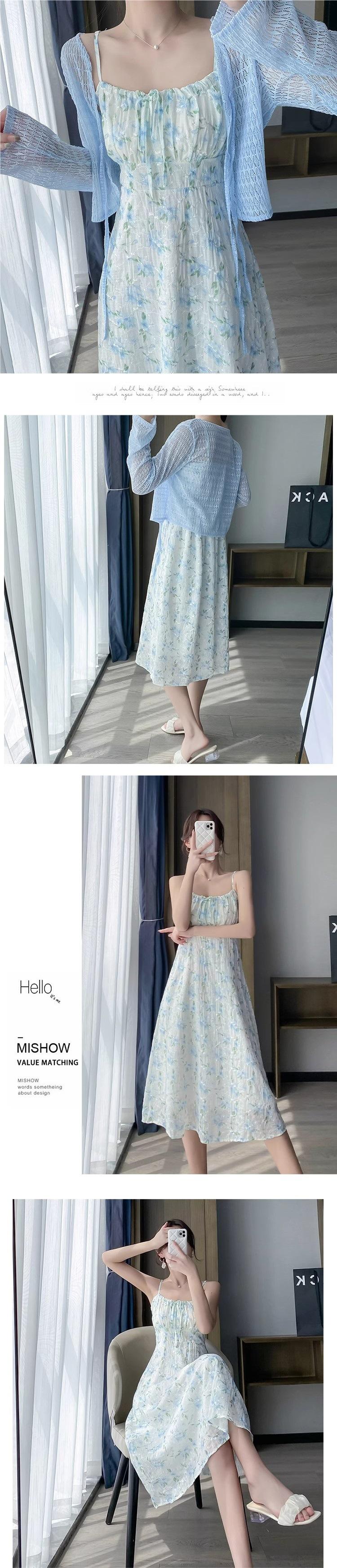 Vestido de Tirantes Espagueti con Estampado Floral para Mujer Verano Francés Petite Maxi Vestido Vestido de Vacaciones de Playa Cárdigan Conjunto de Dos Piezas Vestido