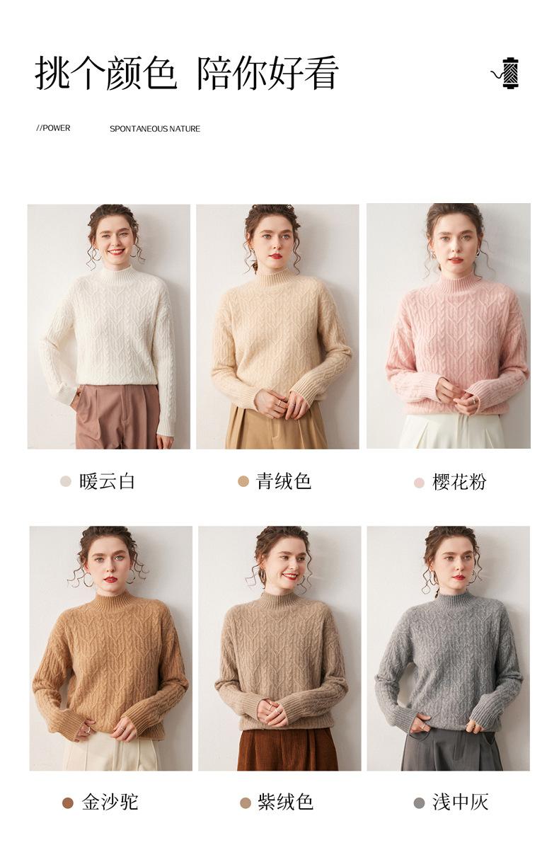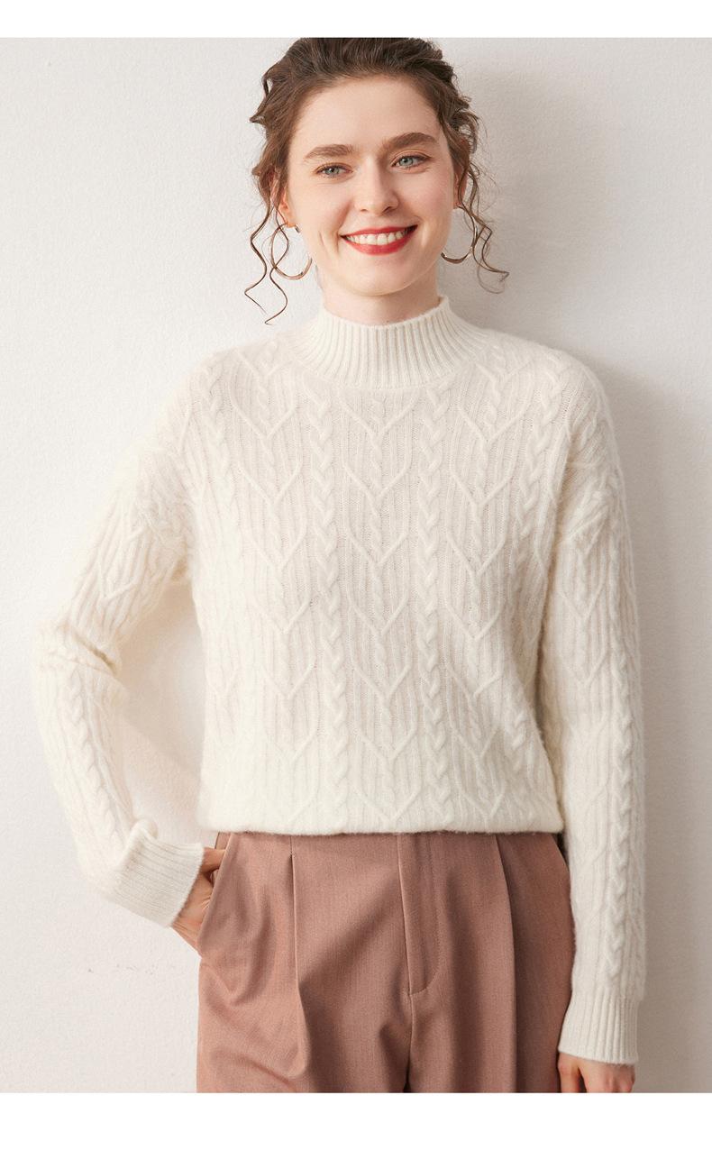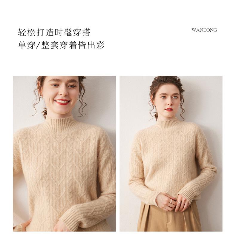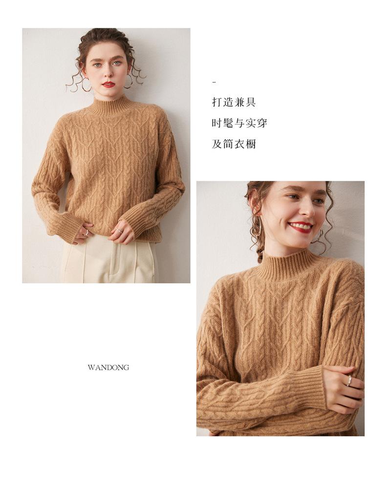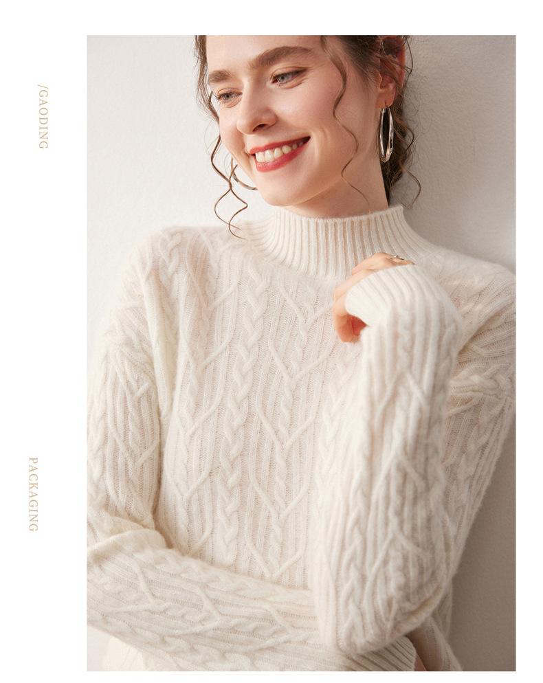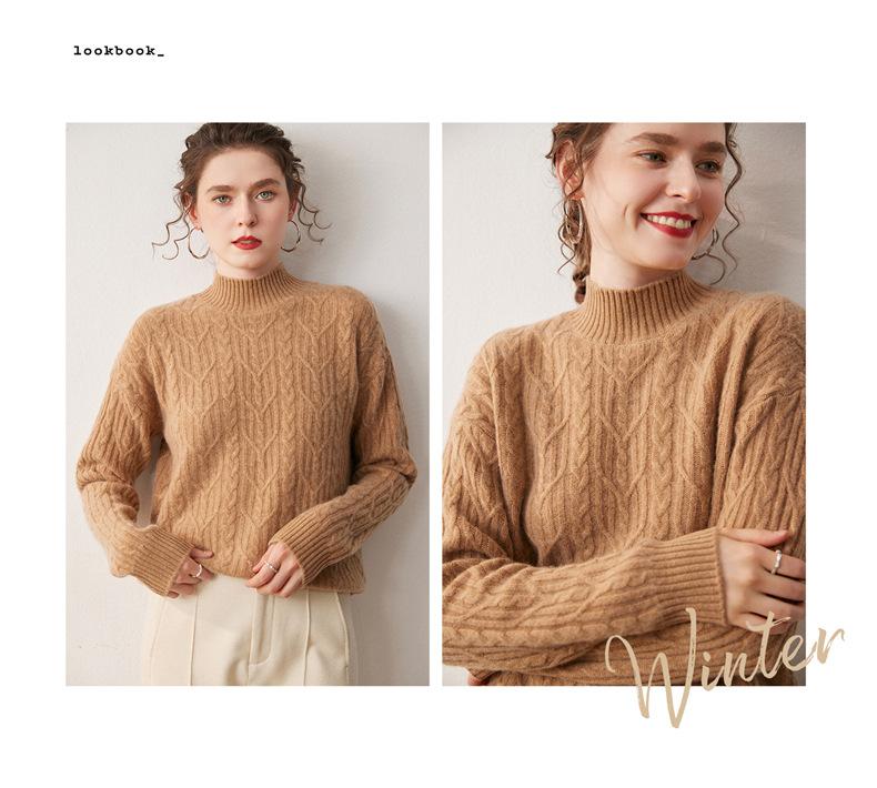 Nueva Capa Base de Punto de Cachemira Otoño/Invierno Holgada Color Sólido Suave Cómoda Manga Larga Elegante Cuello Medio Alto para Mujer