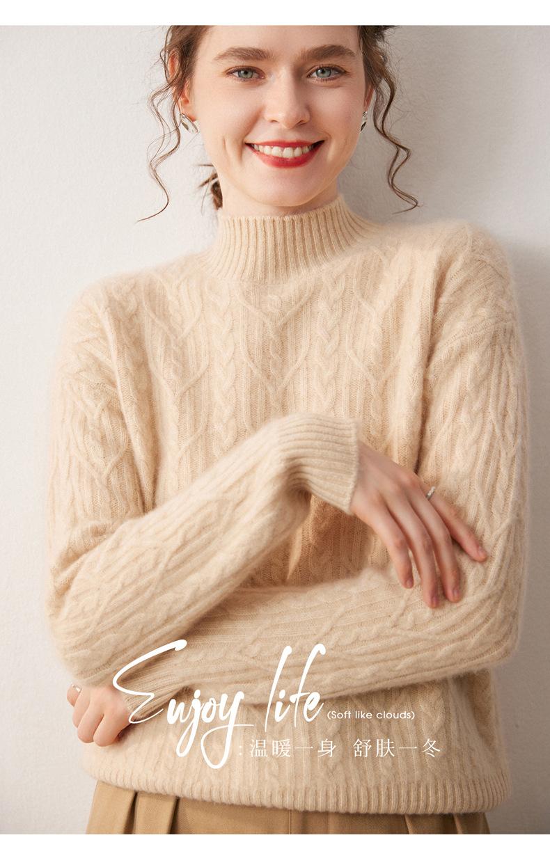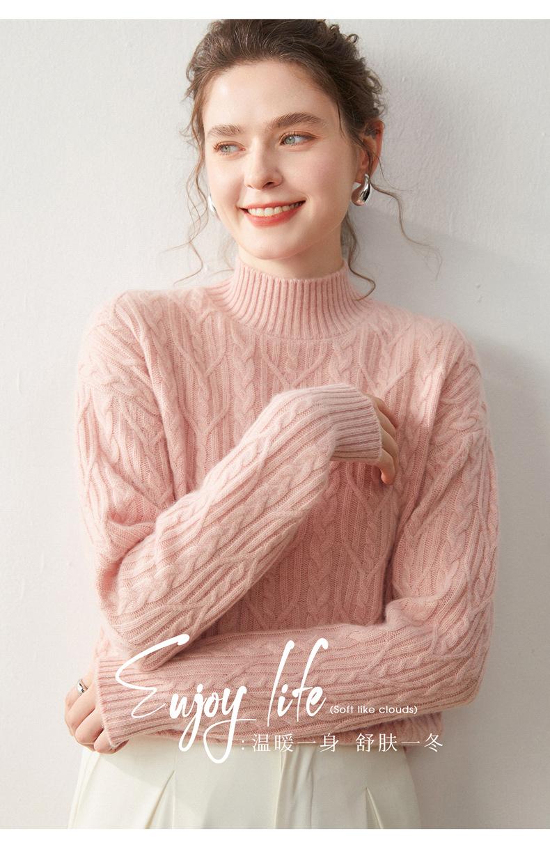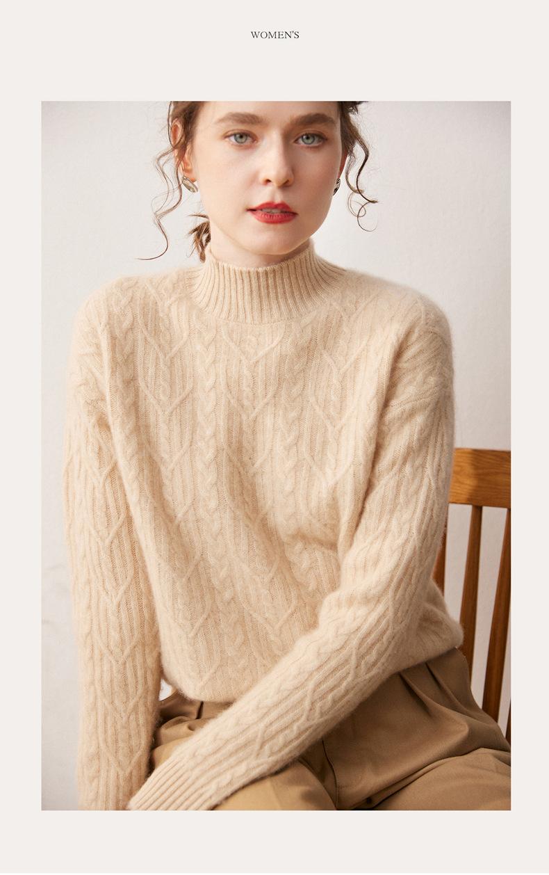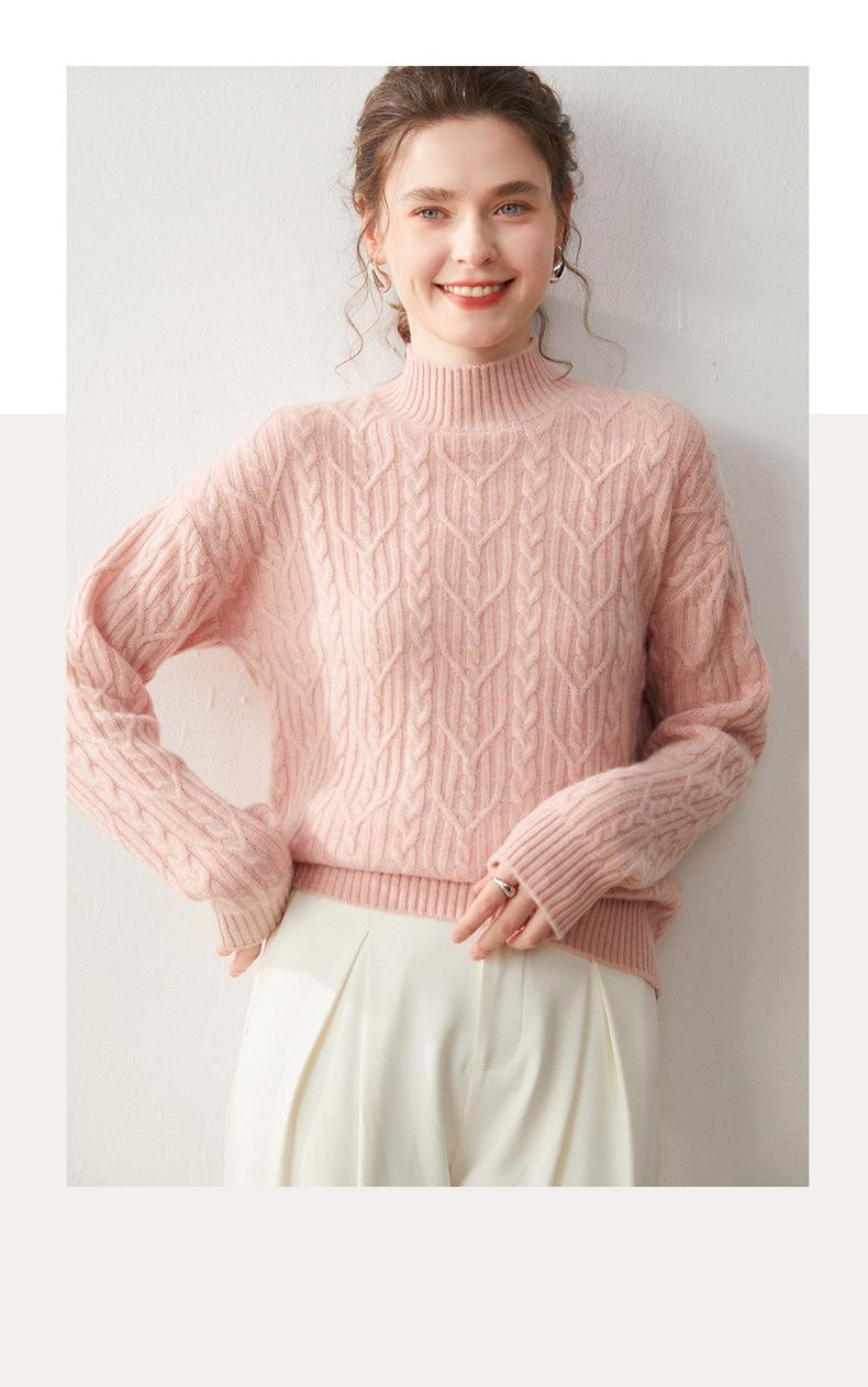Nueva Capa Base de Punto de Cachemira Otoño/Invierno Holgada Color Sólido Suave Cómoda Manga Larga Elegante Cuello Medio Alto para Mujer