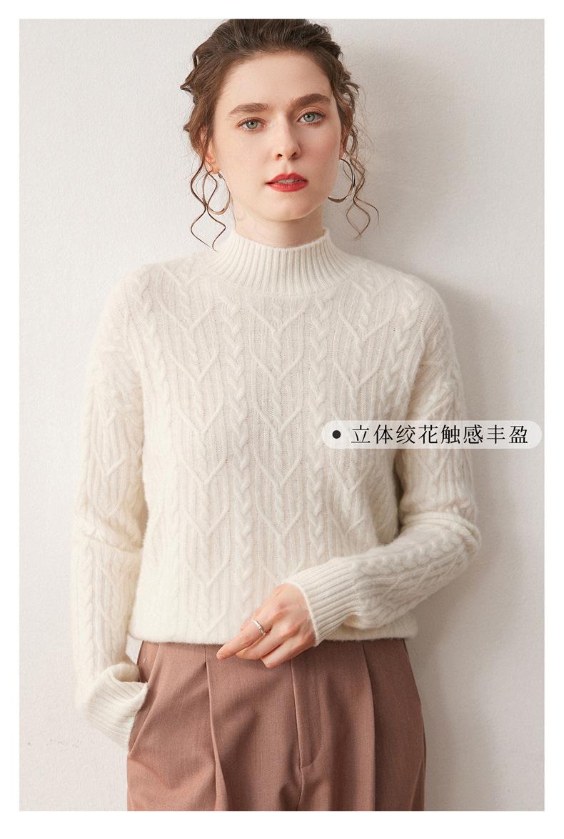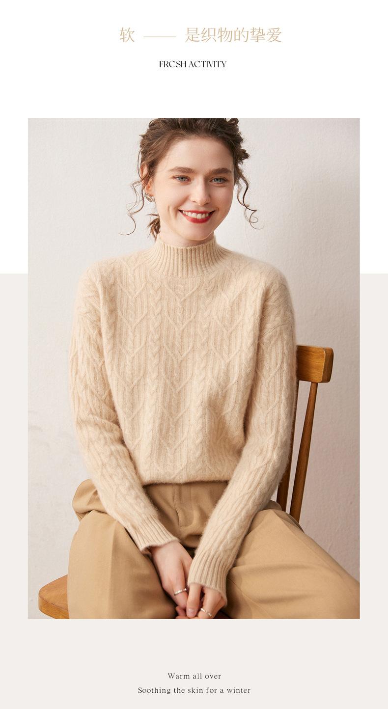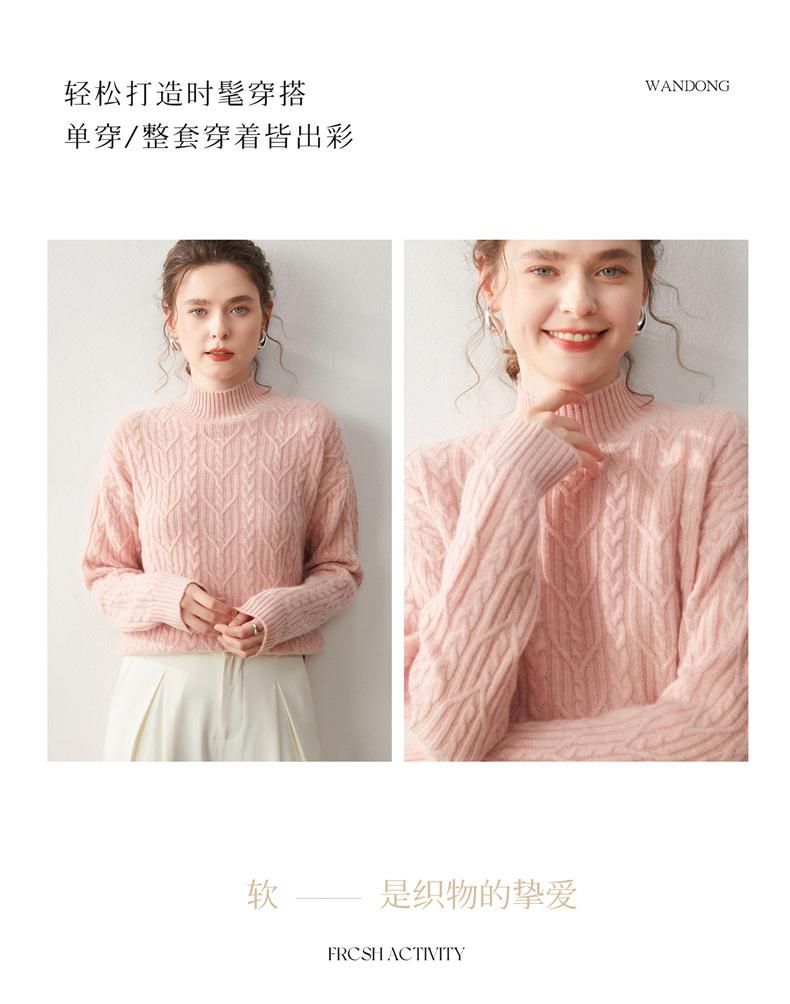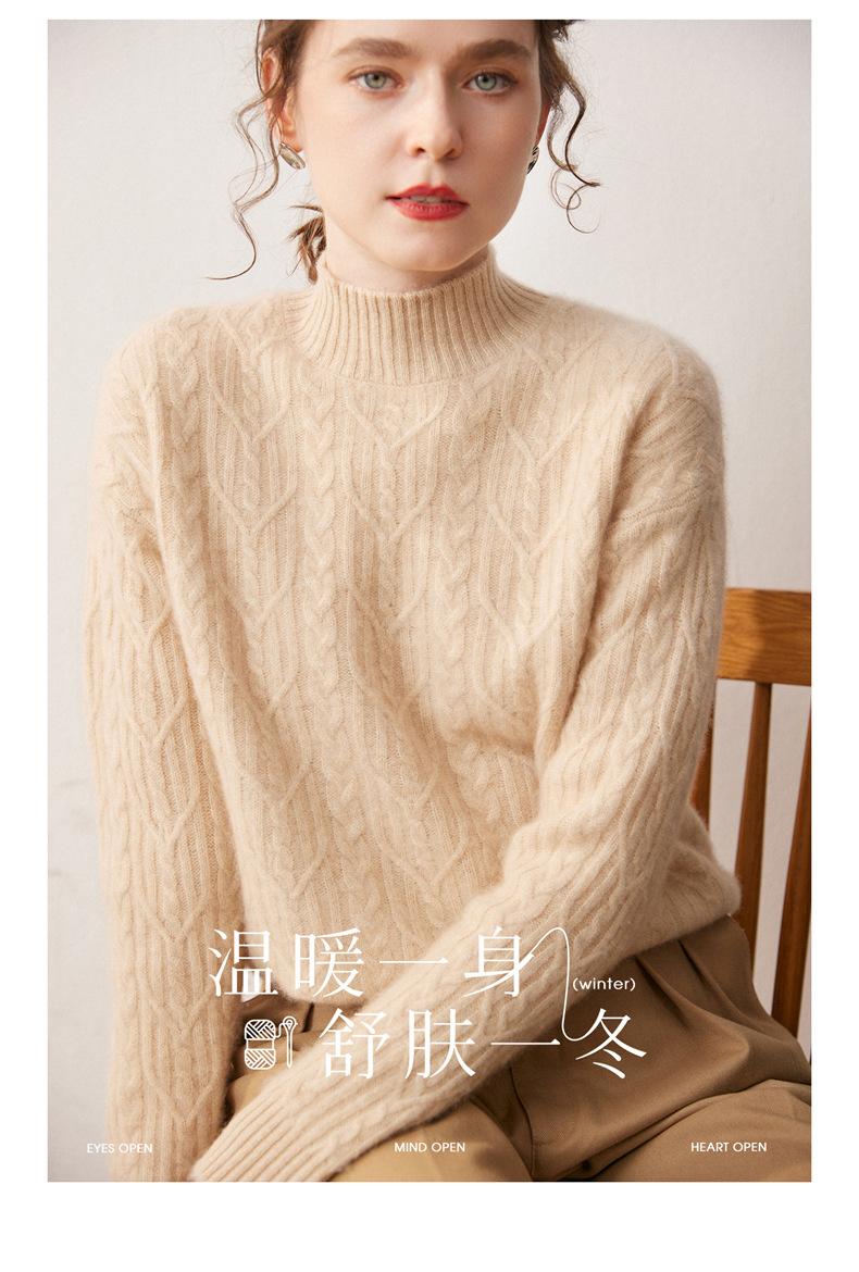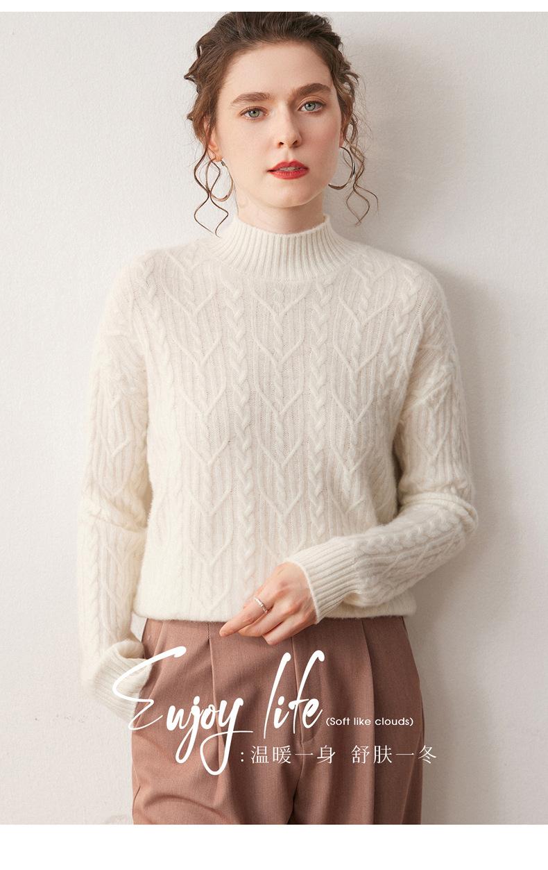 Nueva Capa Base de Punto de Cachemira Otoño/Invierno Holgada Color Sólido Suave Cómoda Manga Larga Elegante Cuello Medio Alto para Mujer