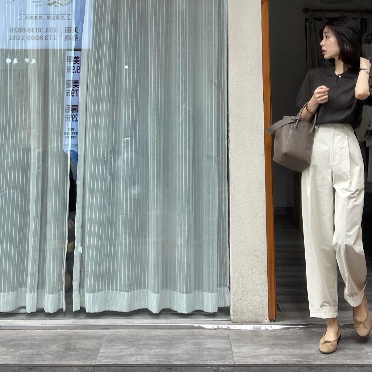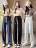 Pantalones de Traje Casuales Blancos Estrechos para Mujer Verano Delgados Franceses de Alta Gama Dosing Cintura Alta Pierna Ancha Pantalones Rectos
