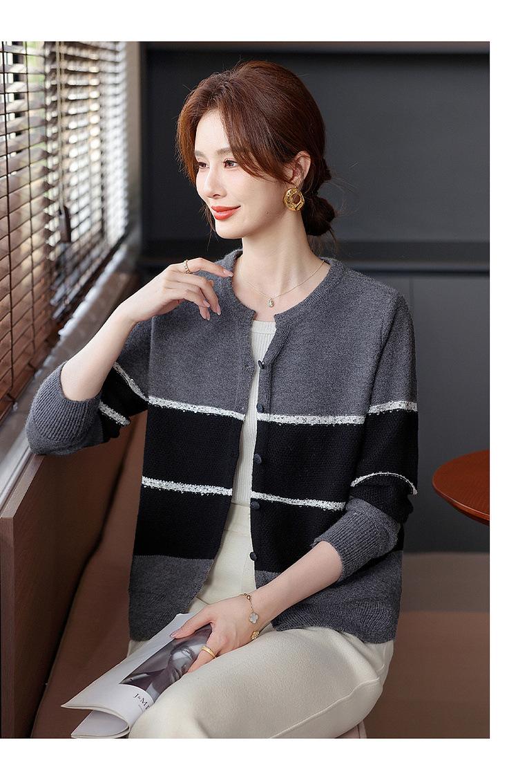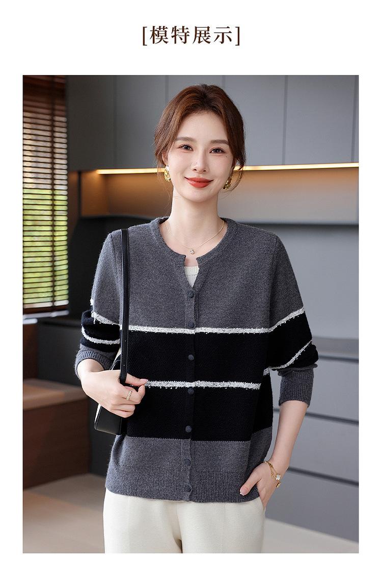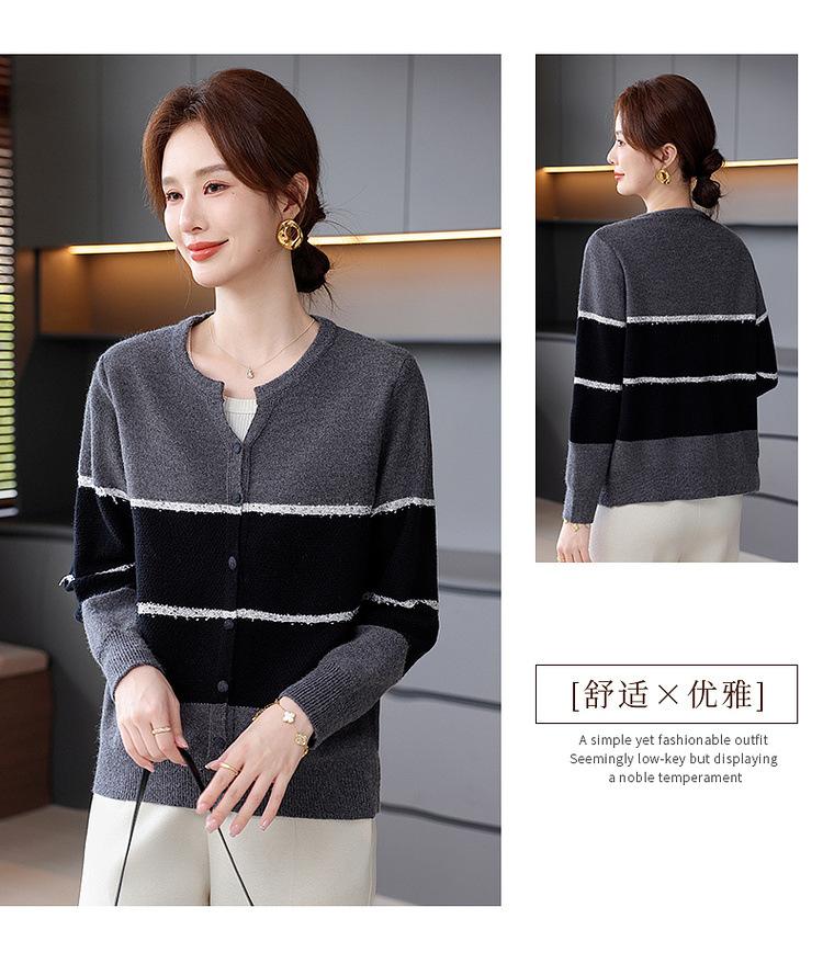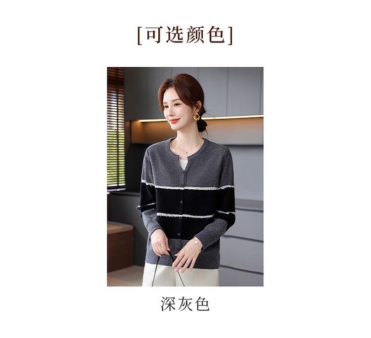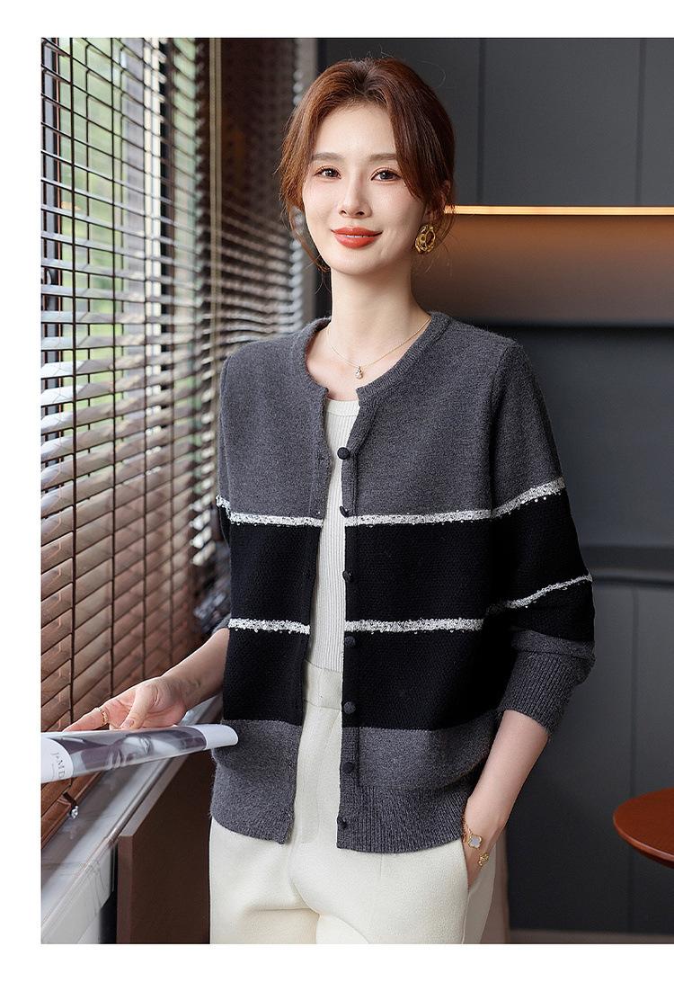 Cárdigan de punto elegante con bloques de color para temperamento, ropa de mamá 2025 otoño e invierno, nuevo, holgado, casual, para mujeres de mediana edad y mayores, top de tendencia
