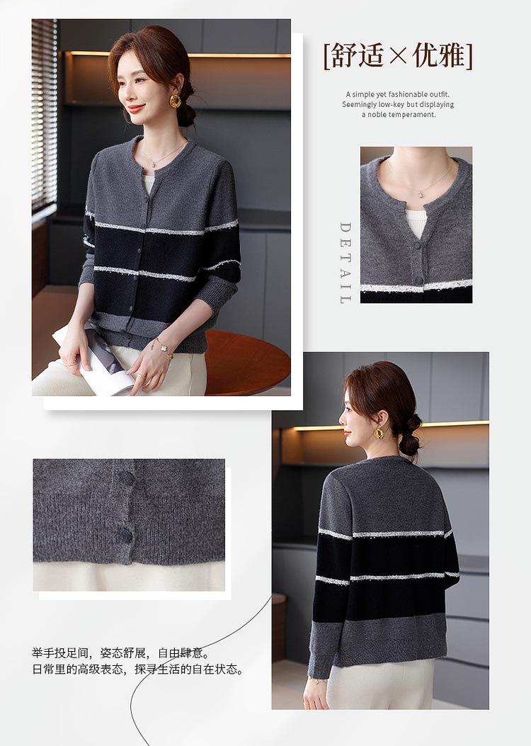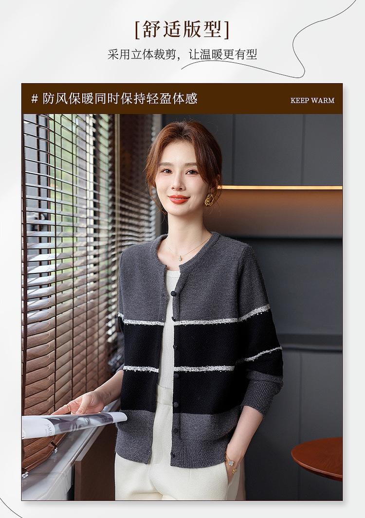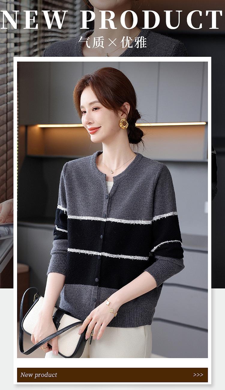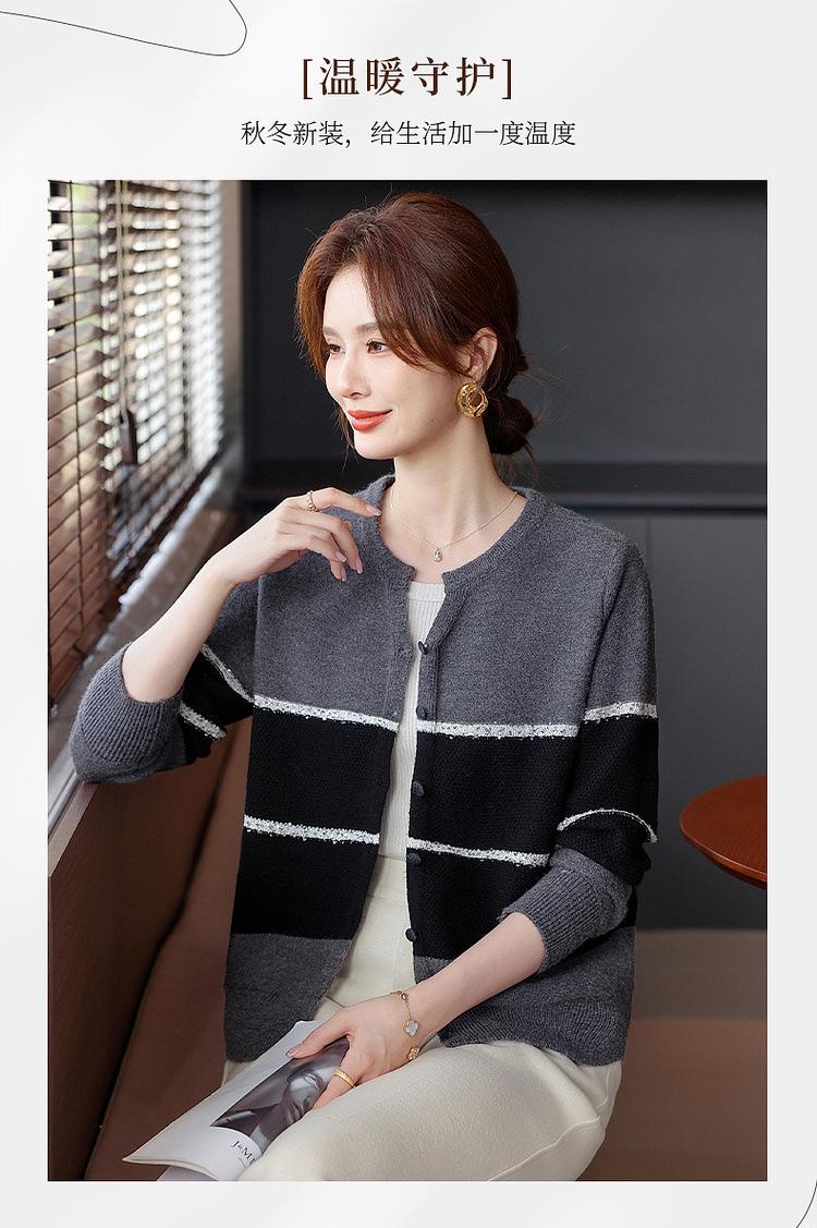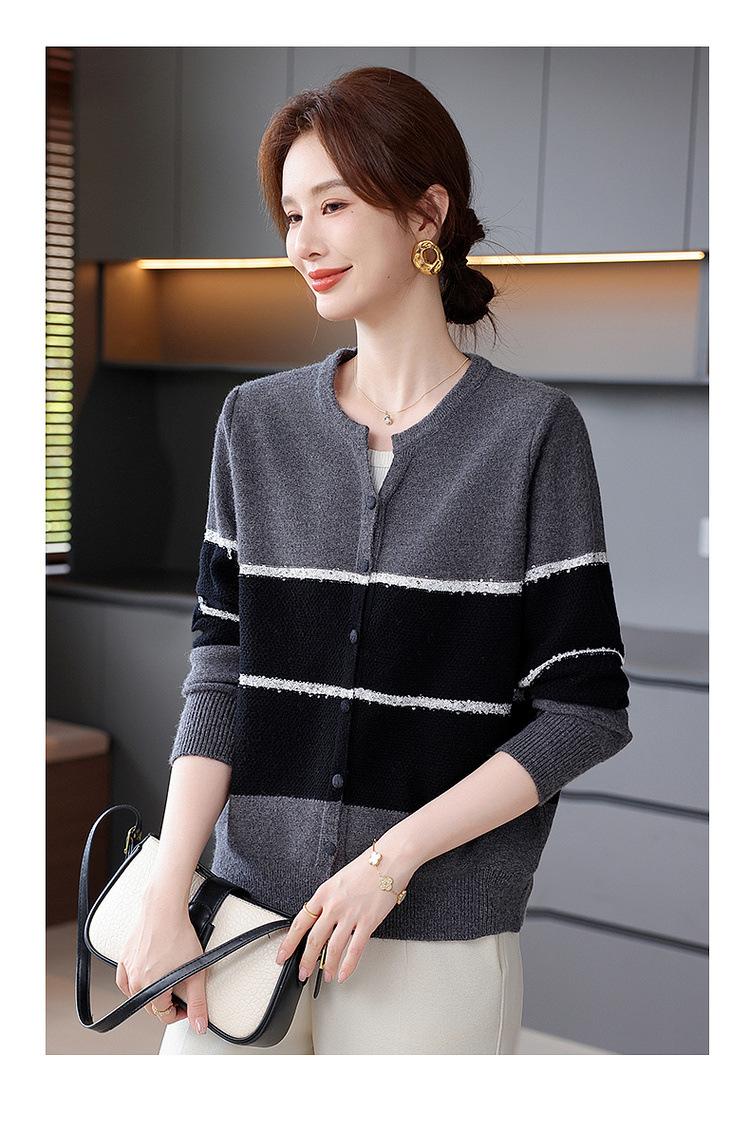 Cárdigan de punto elegante con bloques de color para temperamento, ropa de mamá 2025 otoño e invierno, nuevo, holgado, casual, para mujeres de mediana edad y mayores, top de tendencia