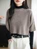 2025 Nuevo Suéter de Punto de Lana Peinada Versátil Simple de Cuello Redondo de Manga Corta para Mujer Casual Holgado Chal