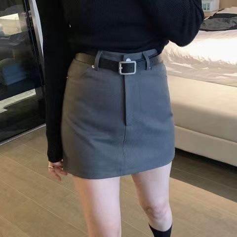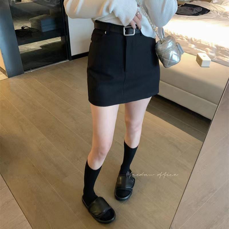 Falda Midi Versátil Mujer 2023 Otoño Nueva Talla Pequeña Traje Ajustado Falda Corta Cintura Alta Adelgazante Moda Falda Línea A